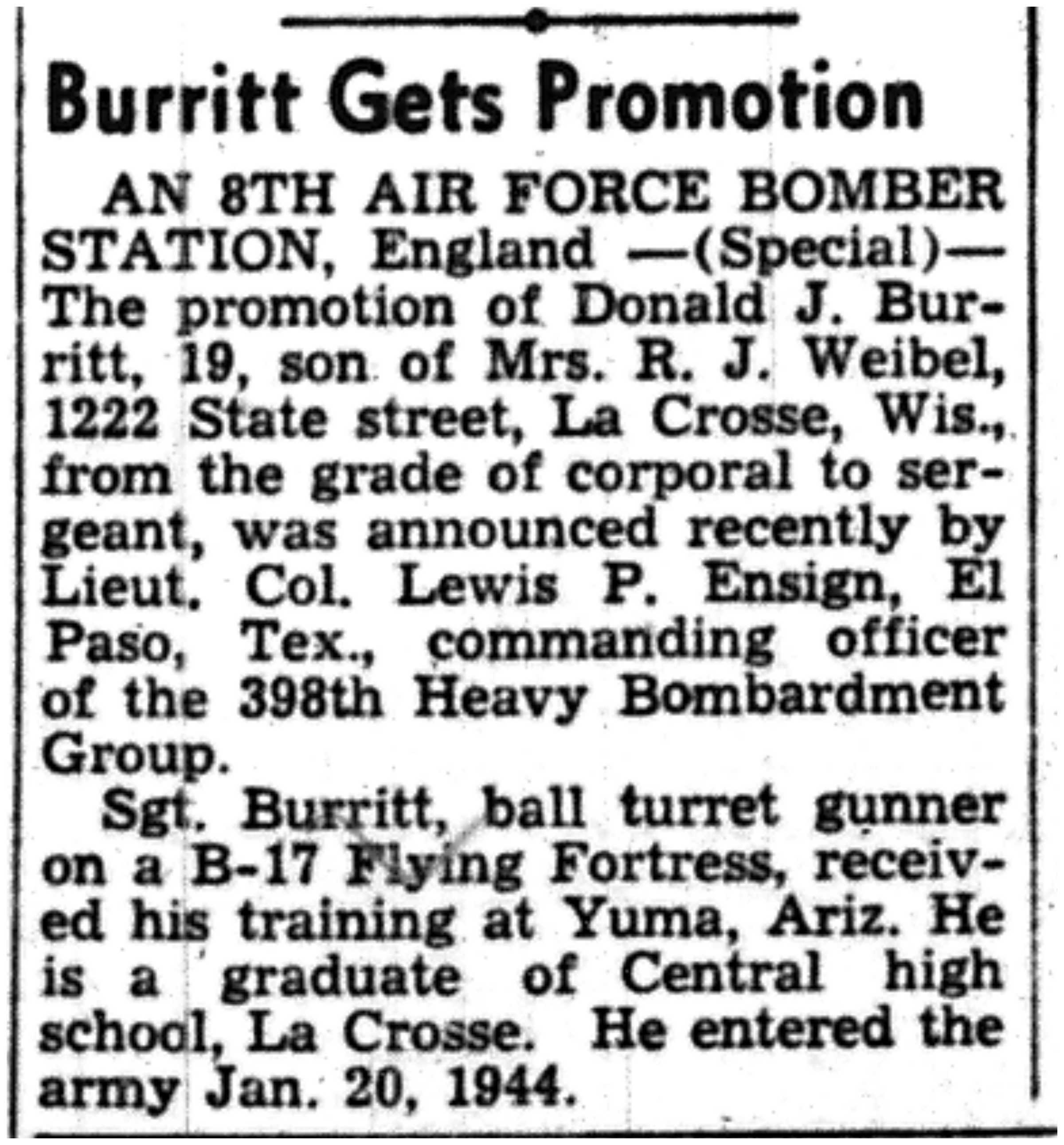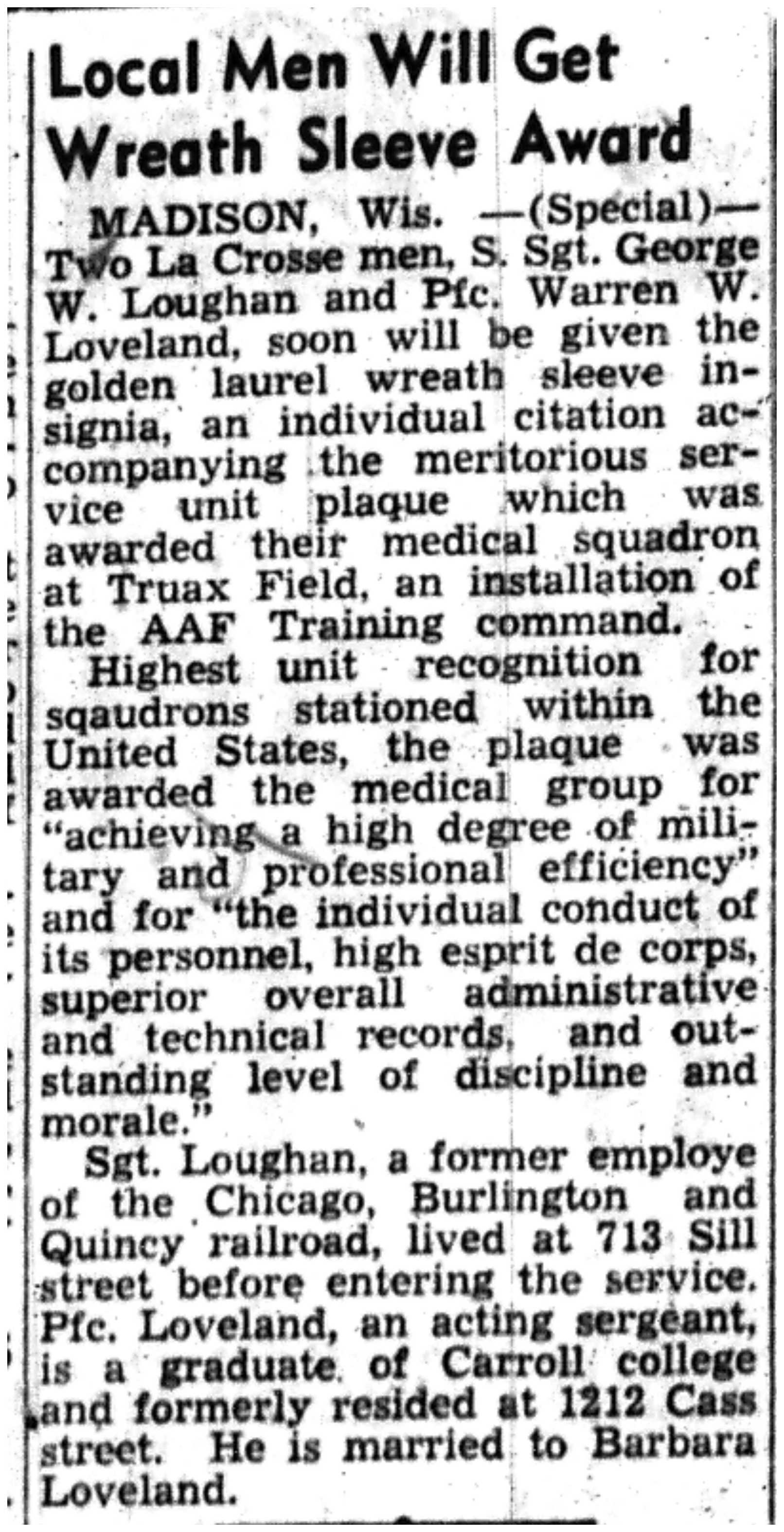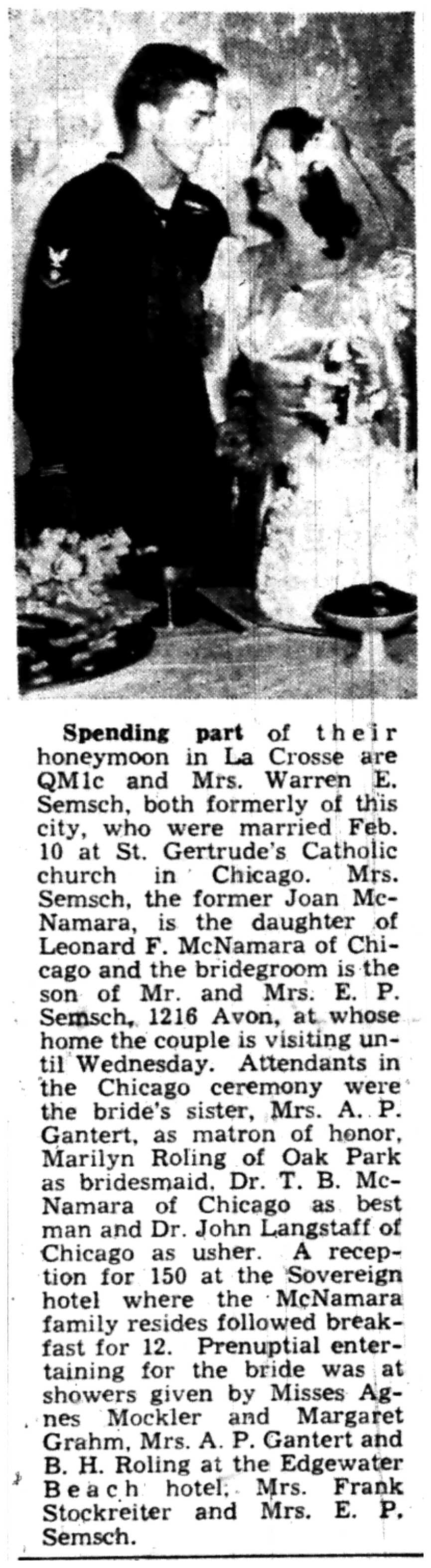 | 1945-2-8 | La Crosse Tribune p12 | |