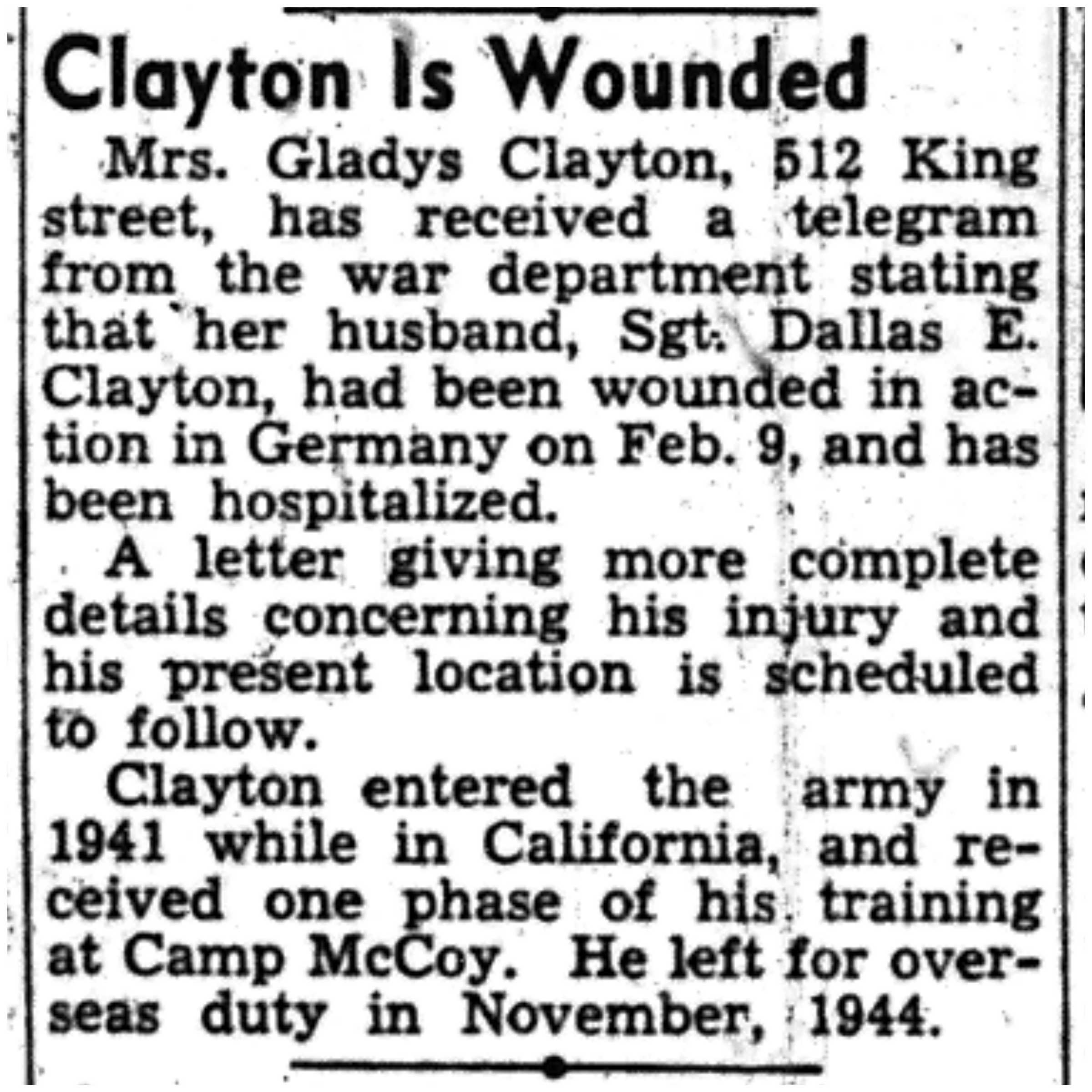 | 1945-2-2 | La Crosse Tribune p2 | |