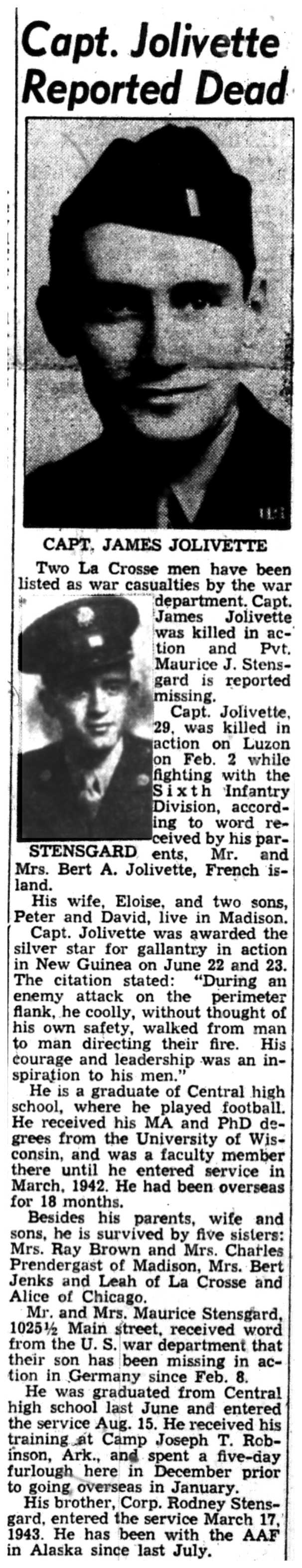 | 1945-2-5 | La Crosse Tribune p3 | |