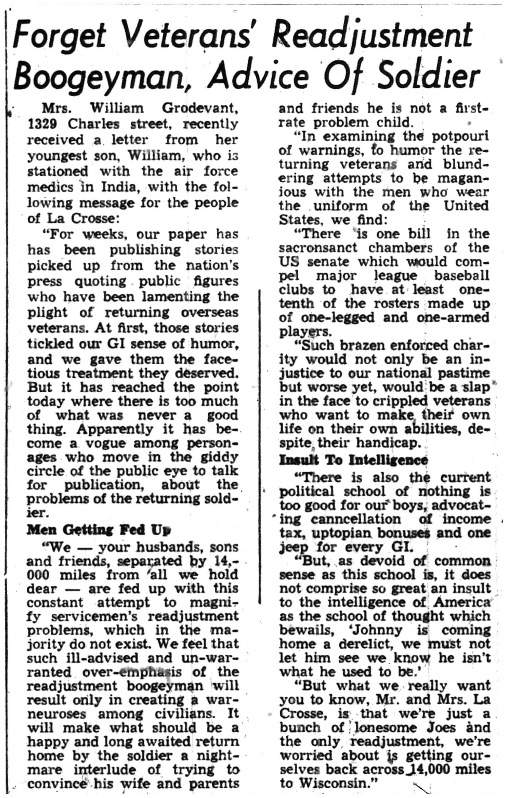 | 1945-7-29 | La Crosse Tribune p14 | |