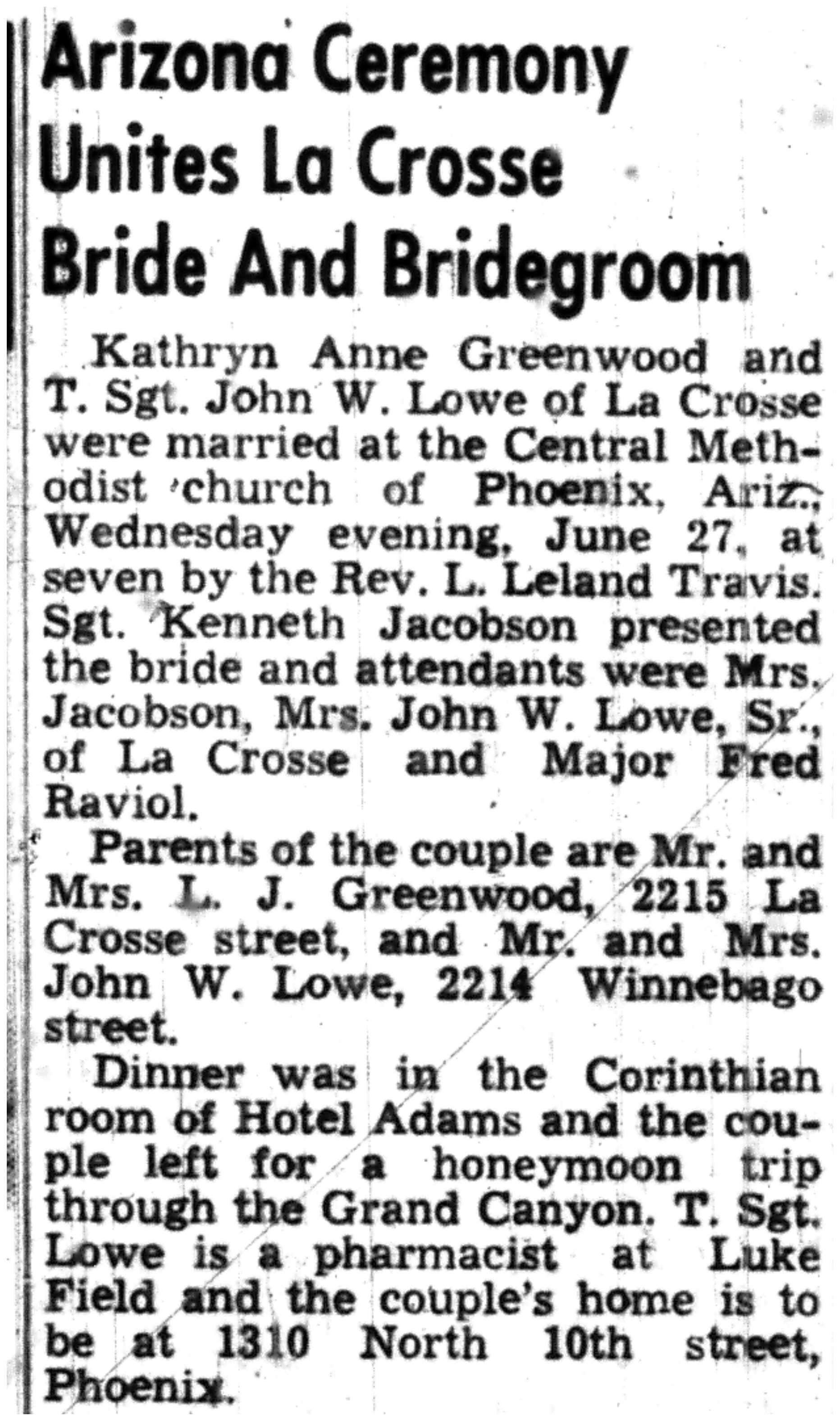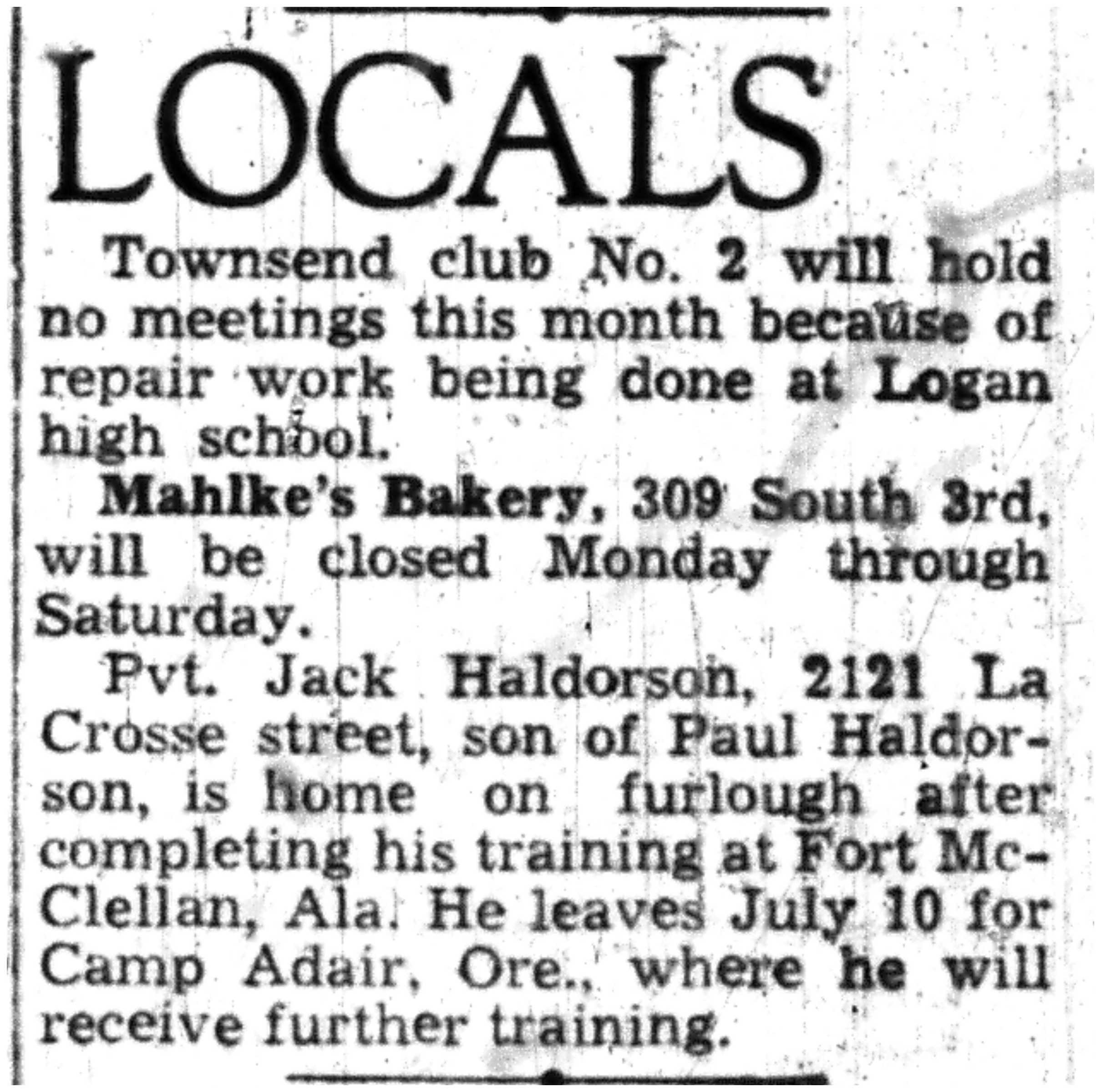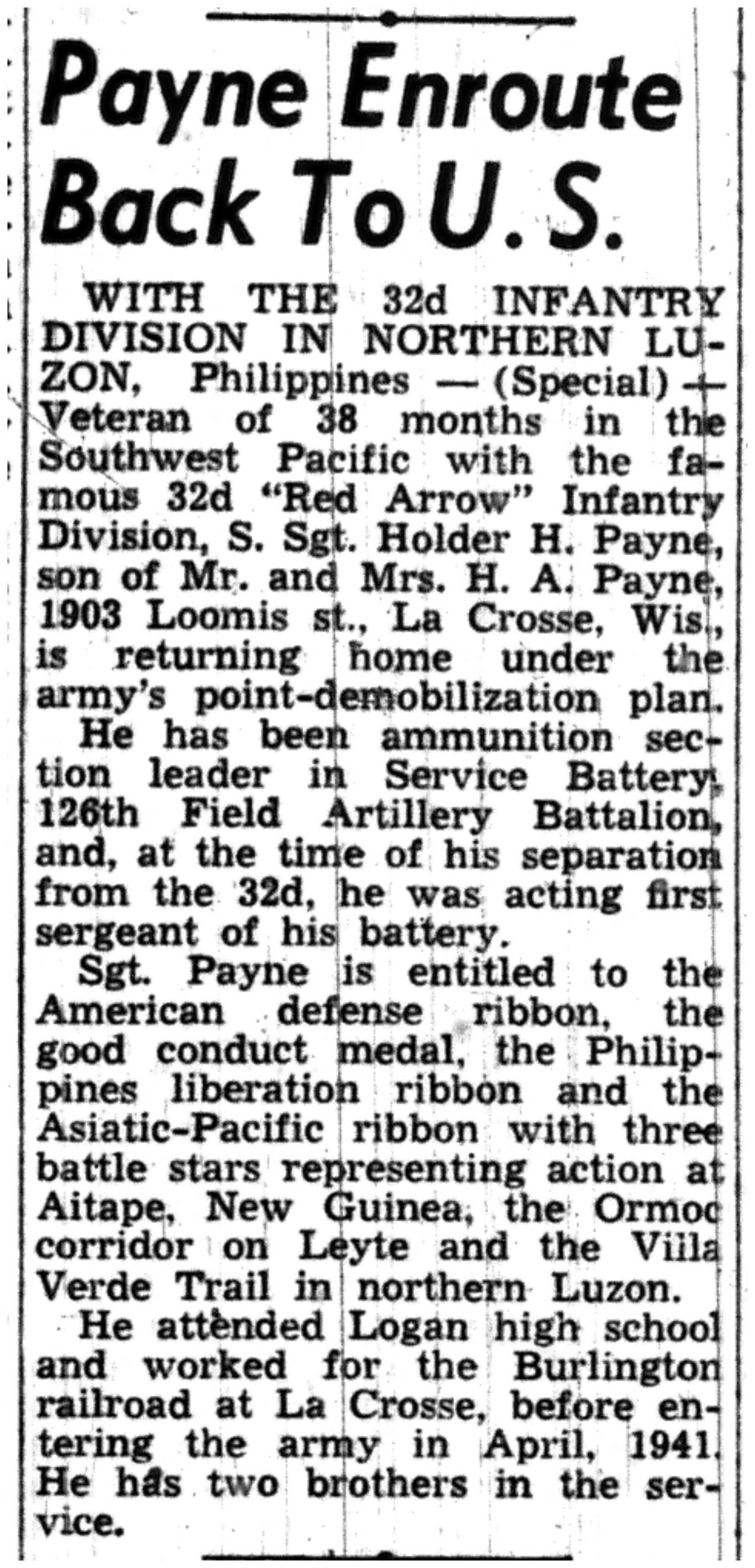 | 1945-7-1 | La Crosse Tribune p4 | |
