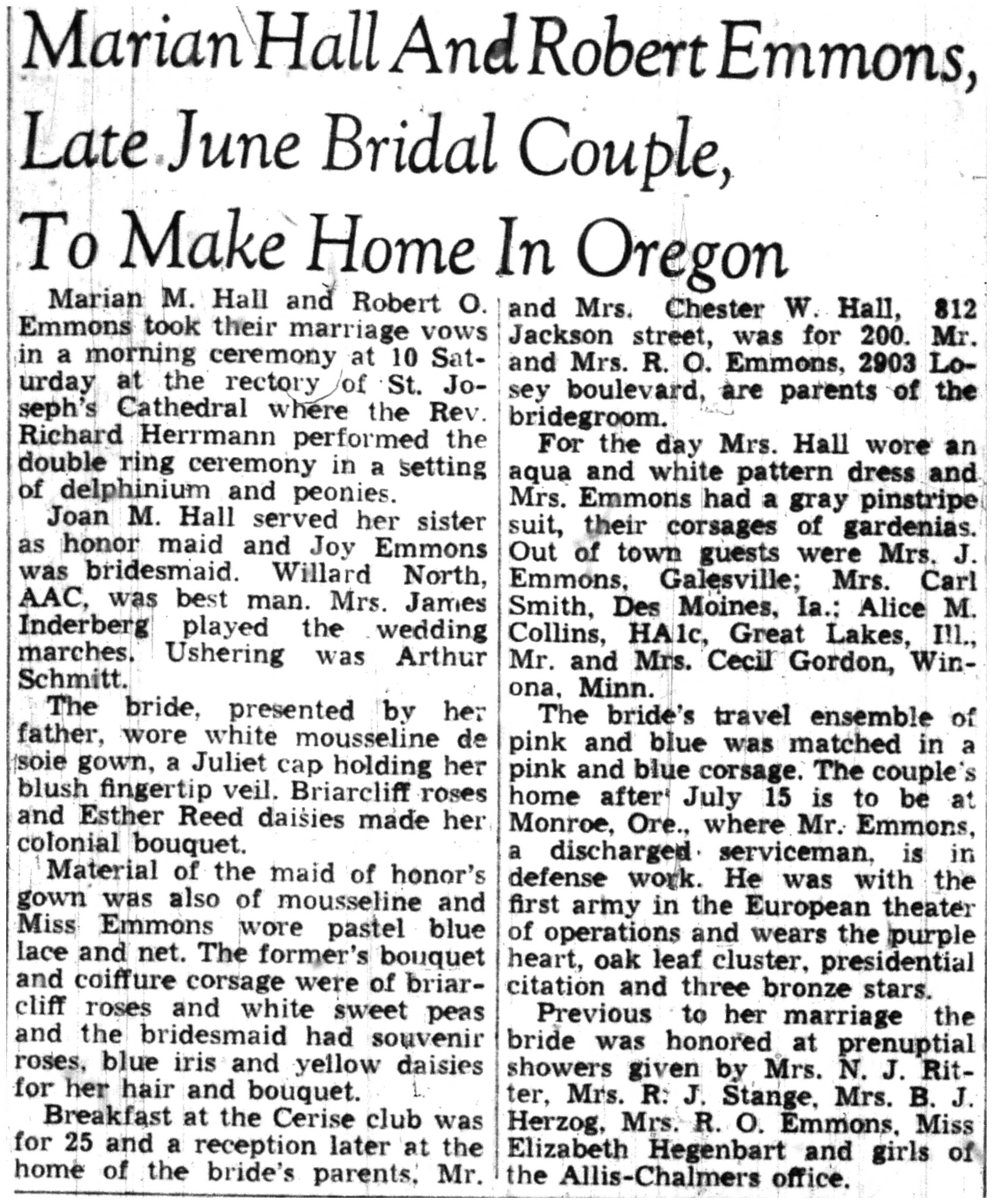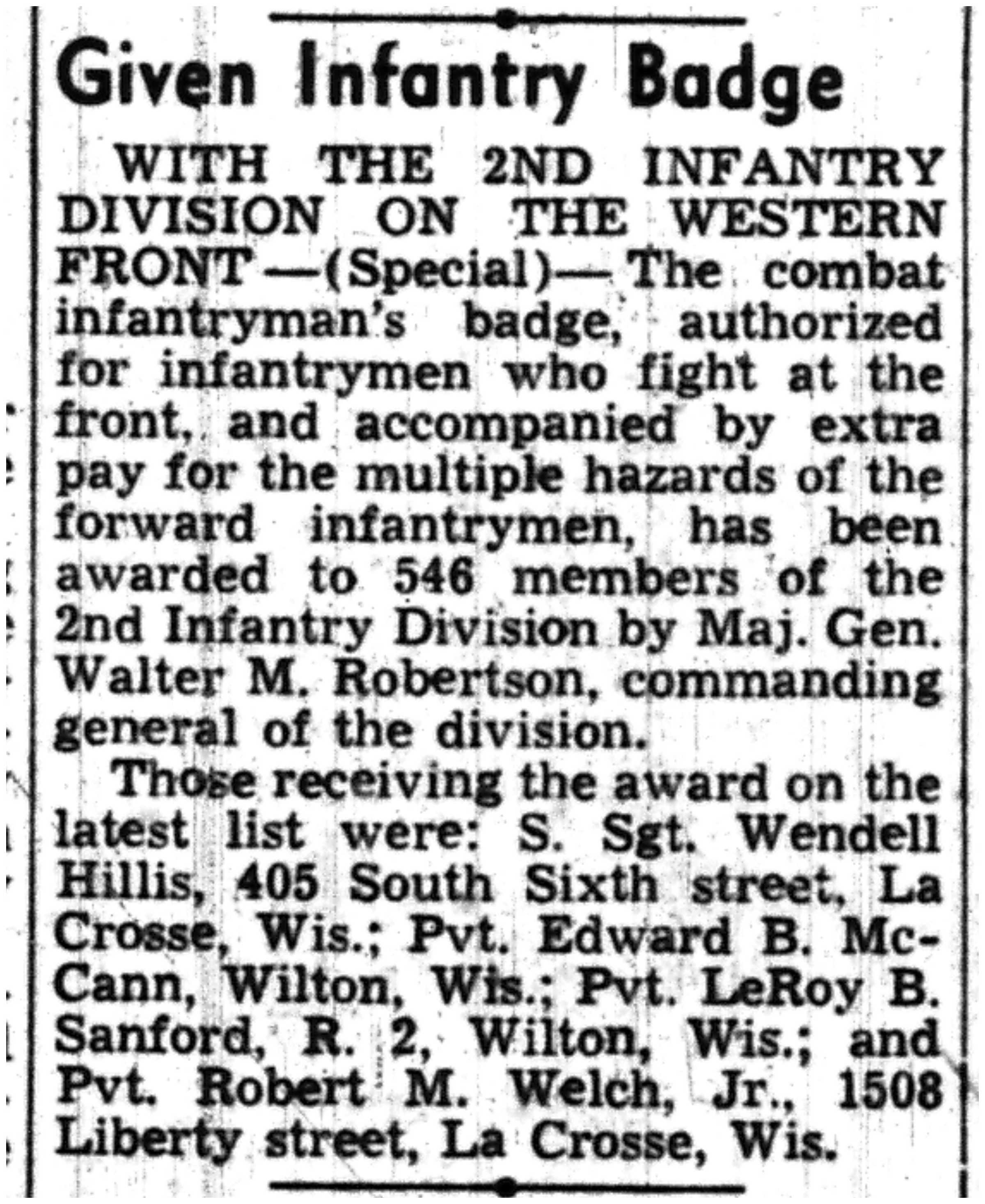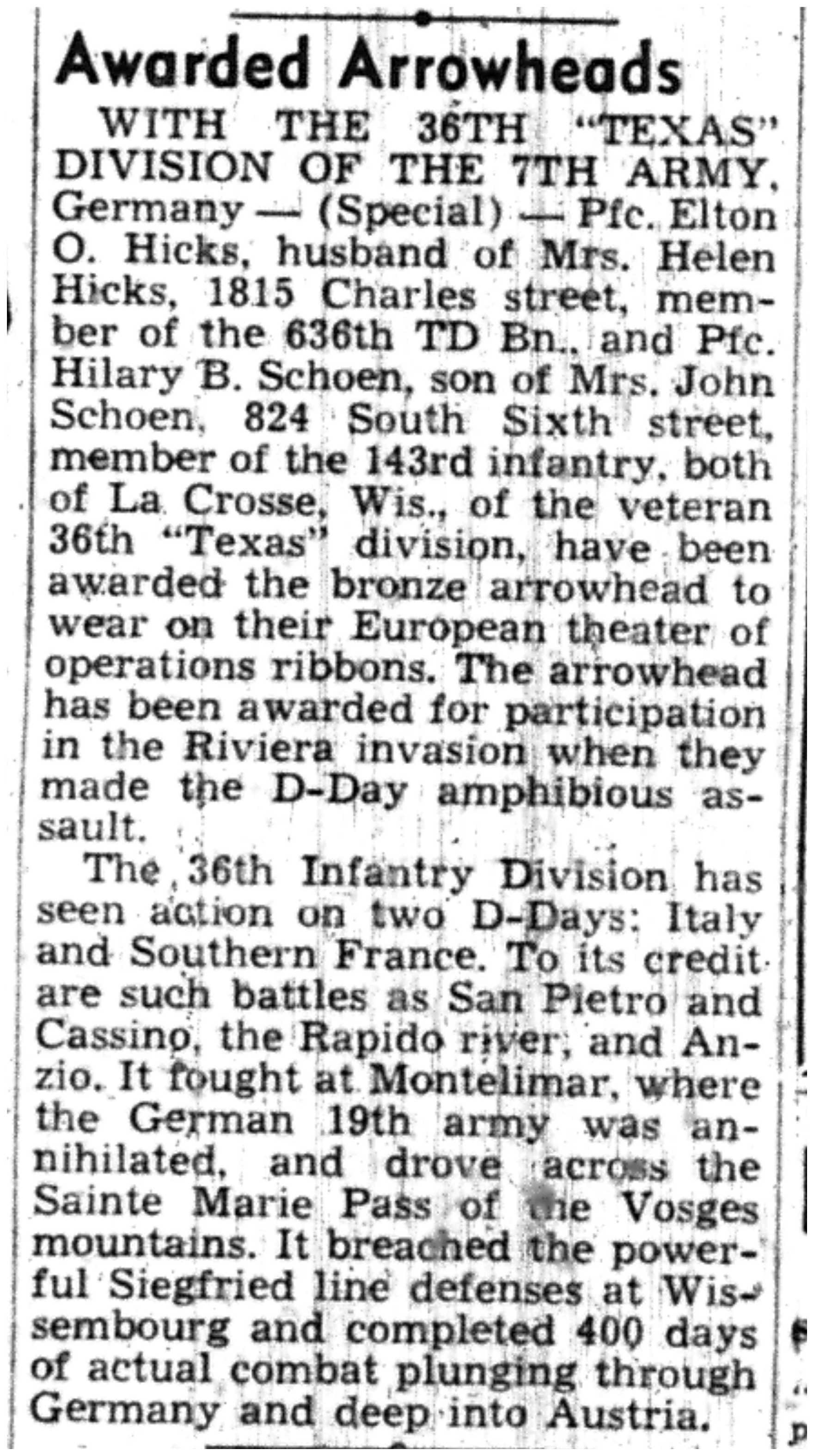 | 1945-7-1 | La Crosse Tribune p4 | |