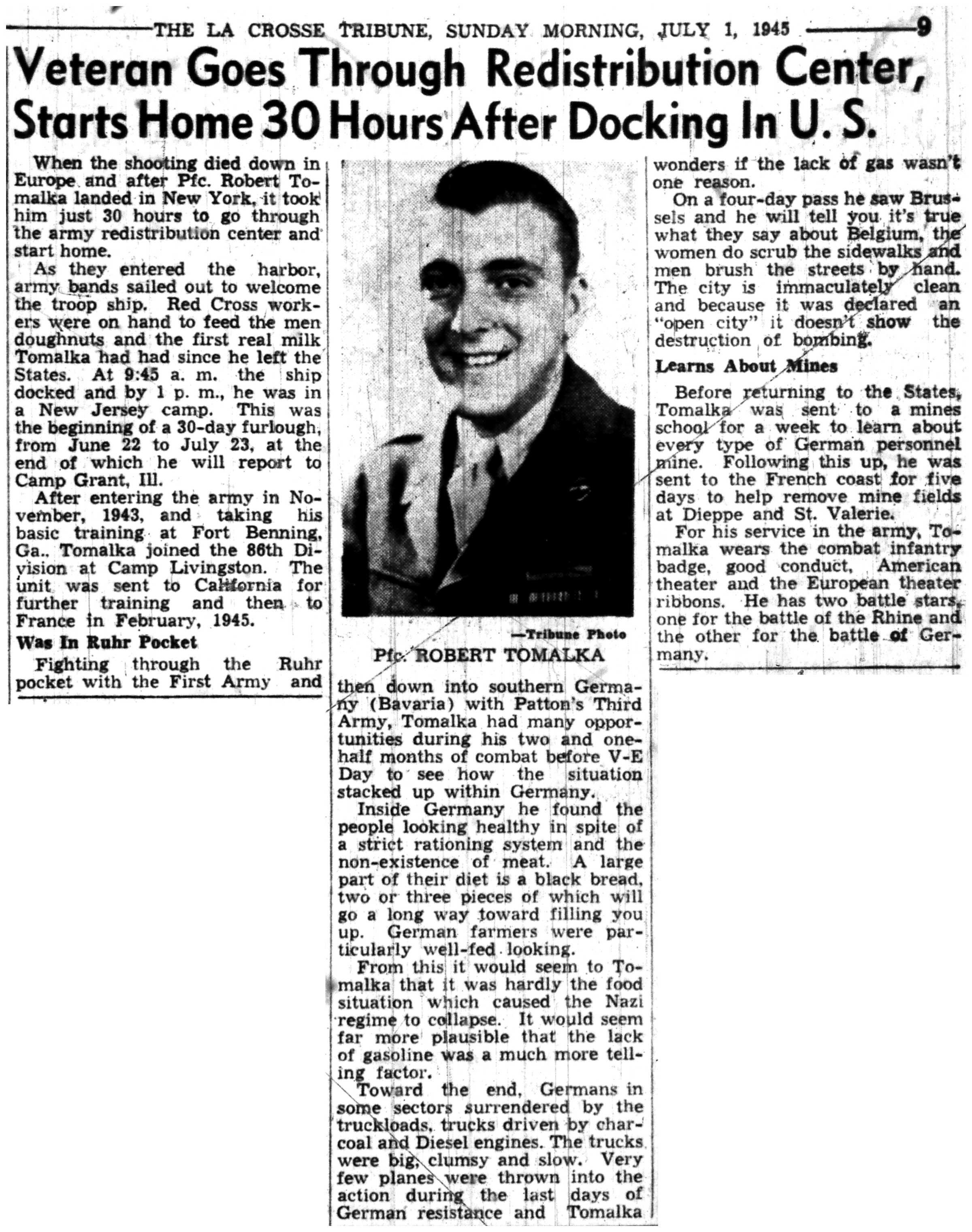 | 1945-7-1 | La Crosse Tribune p9 | |