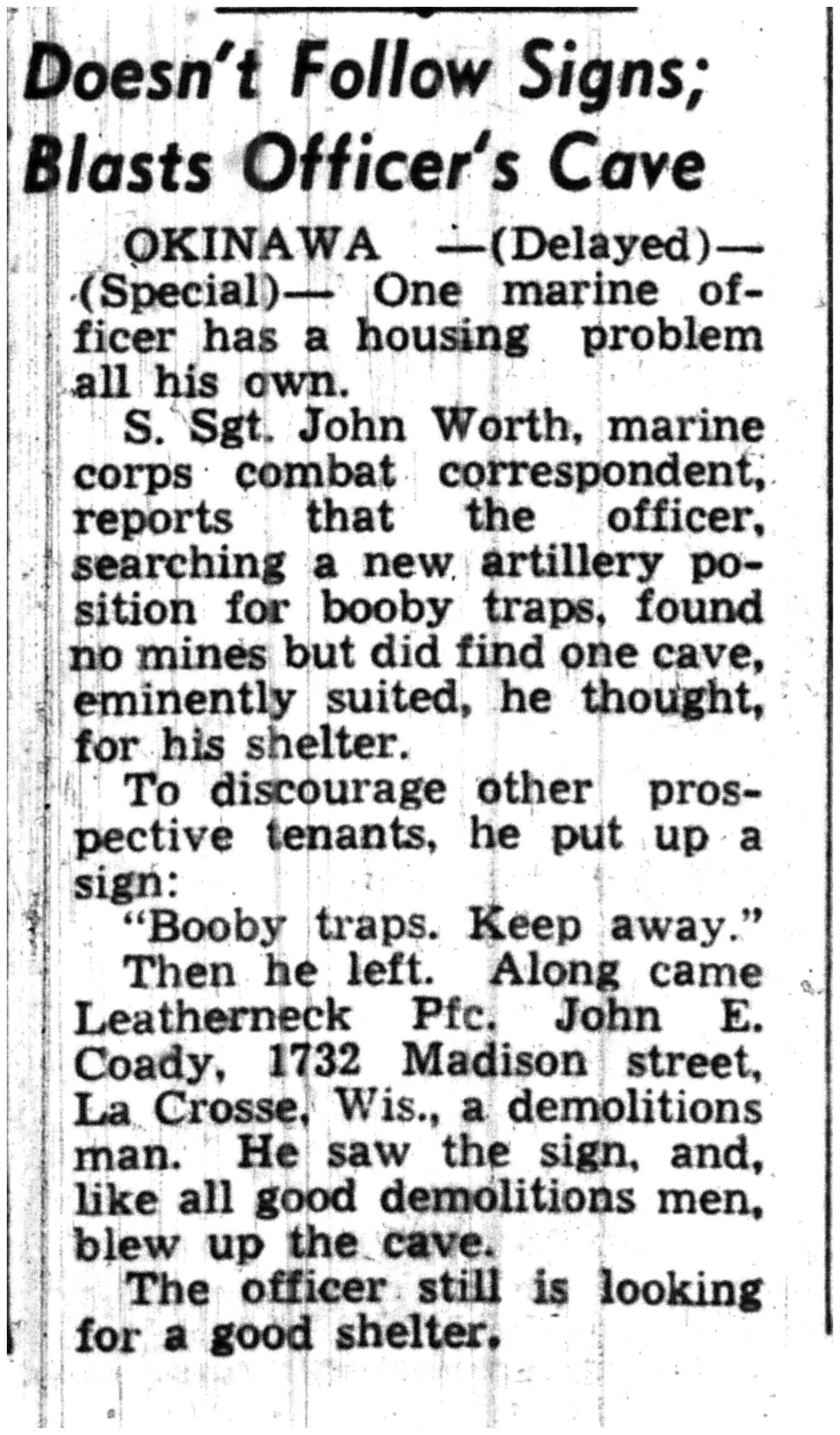 | 1945-7-29 | La Crosse Tribune p14 | |