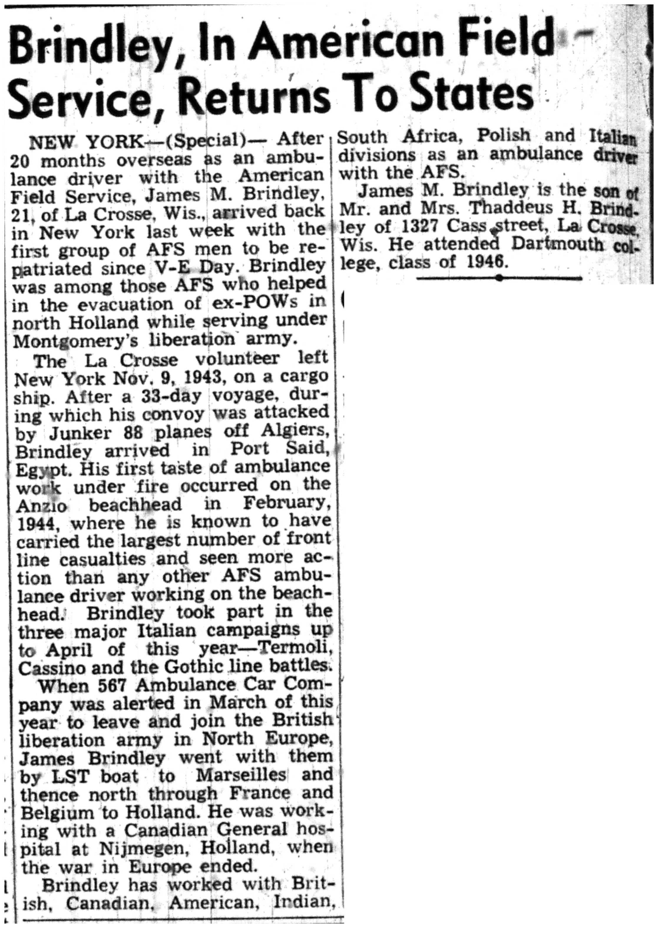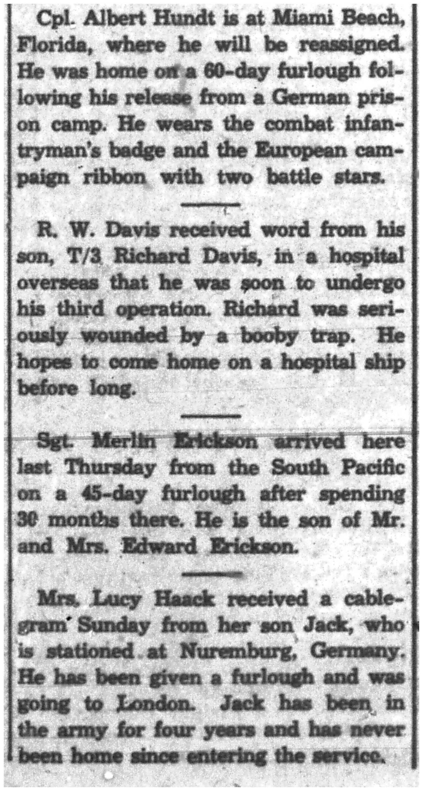 | 1945-7-25 | La Crosse Tribune p4 | |