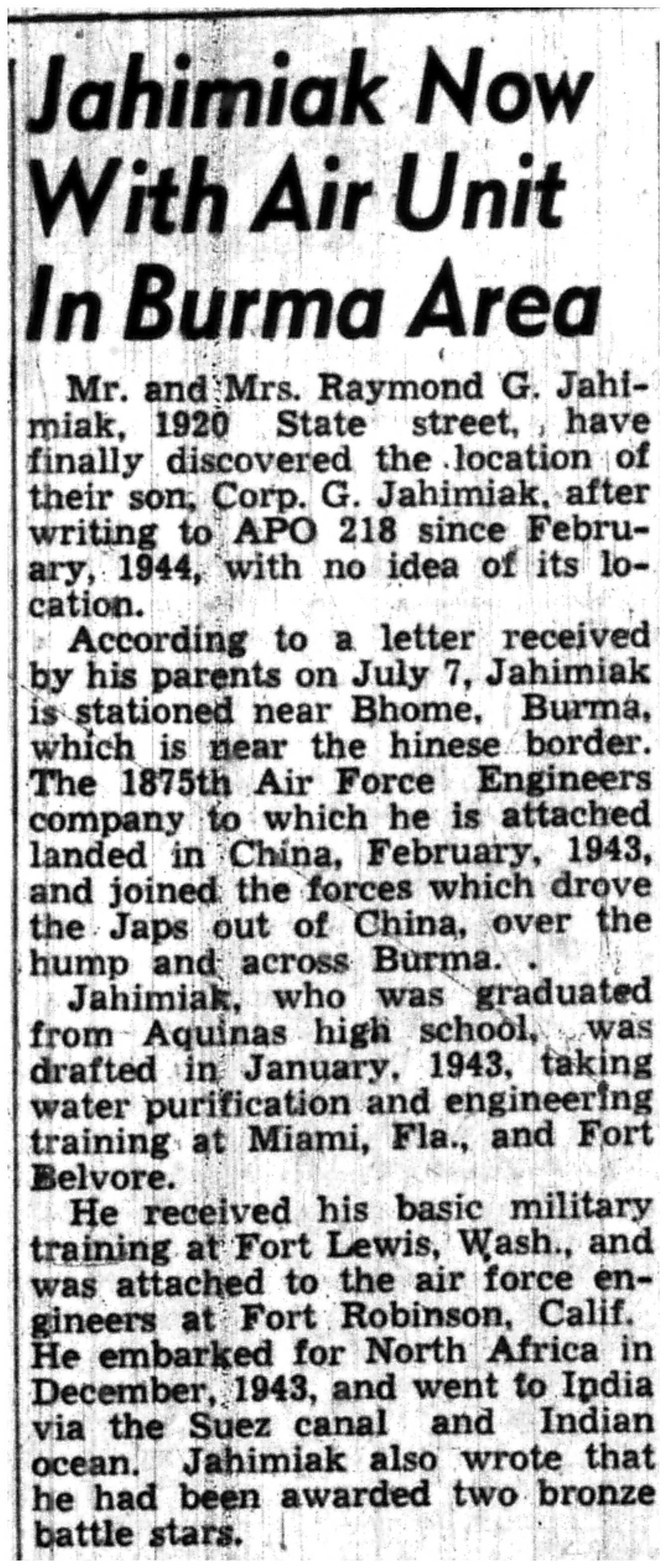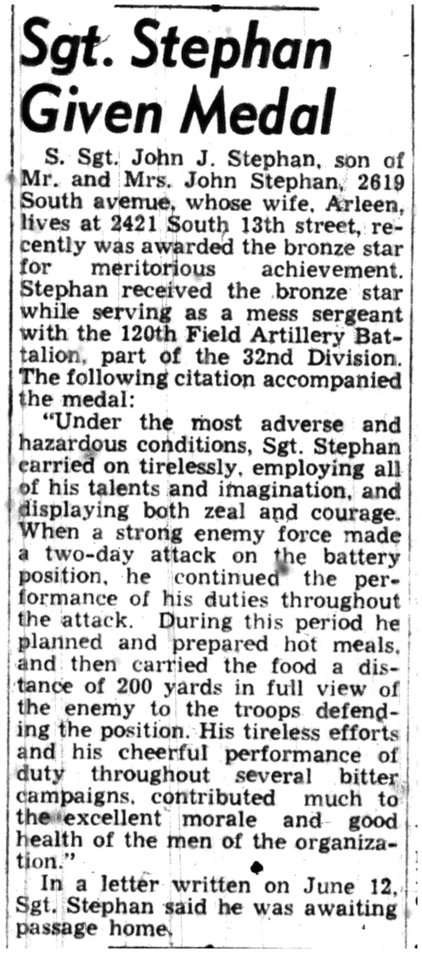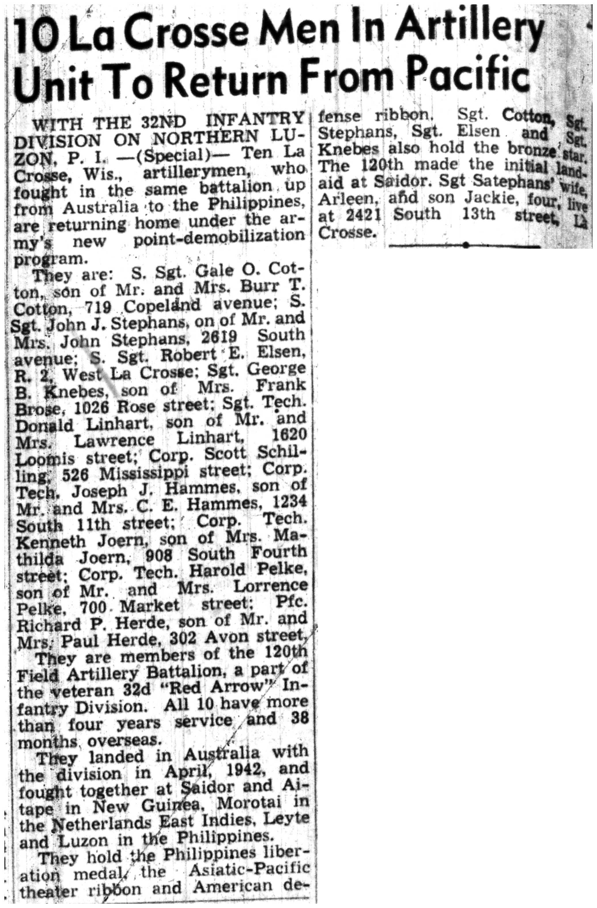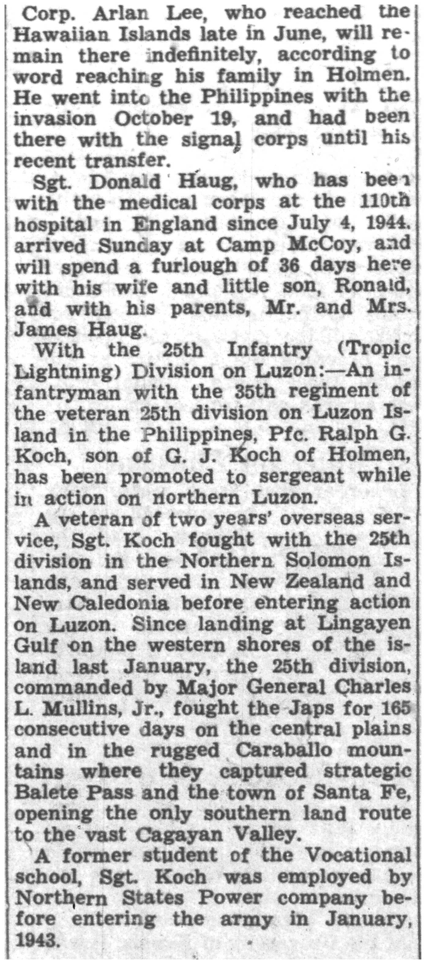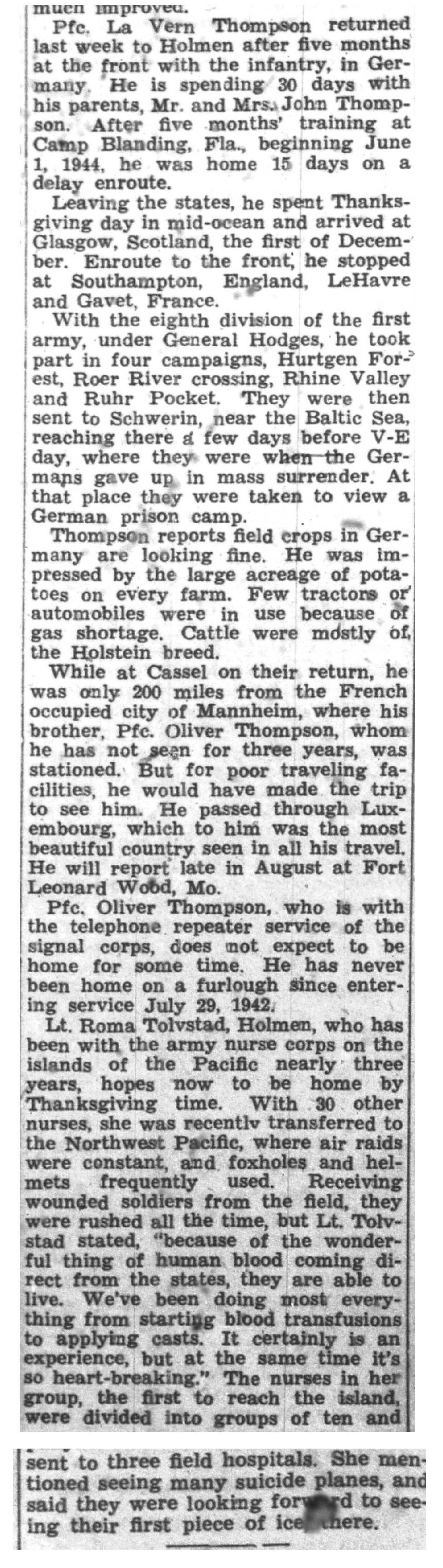 | 1945-7-25 | La Crosse Tribune p10 | |