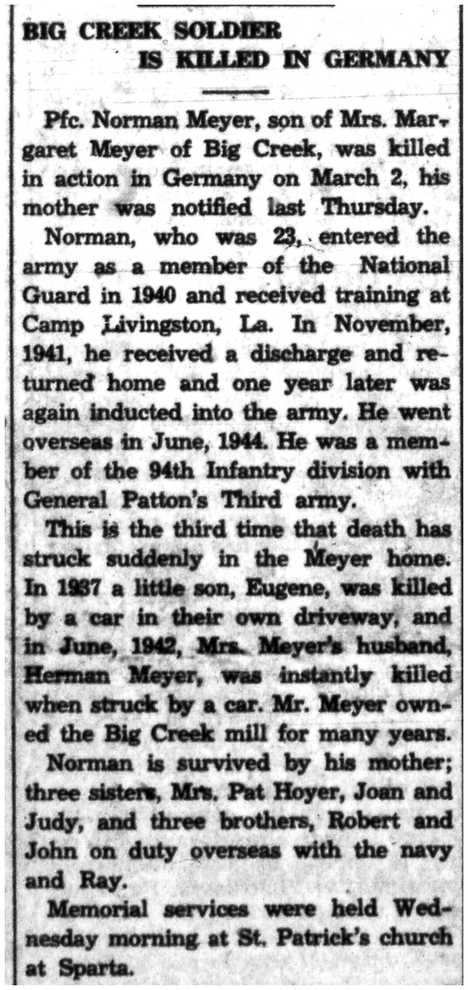 | 1945-7-12 | Non-Pareil Journal p4 | |