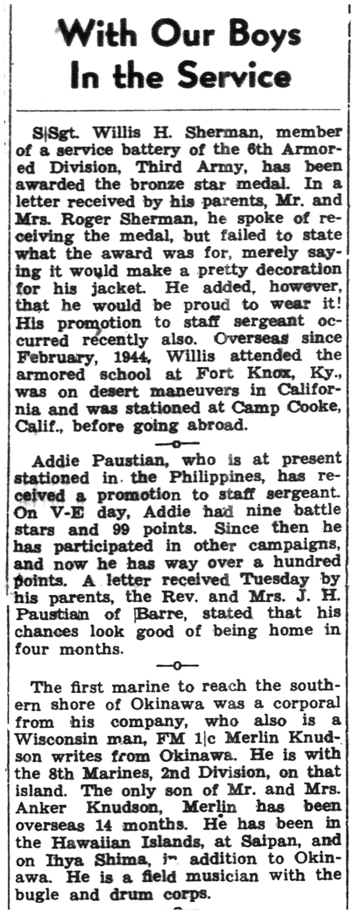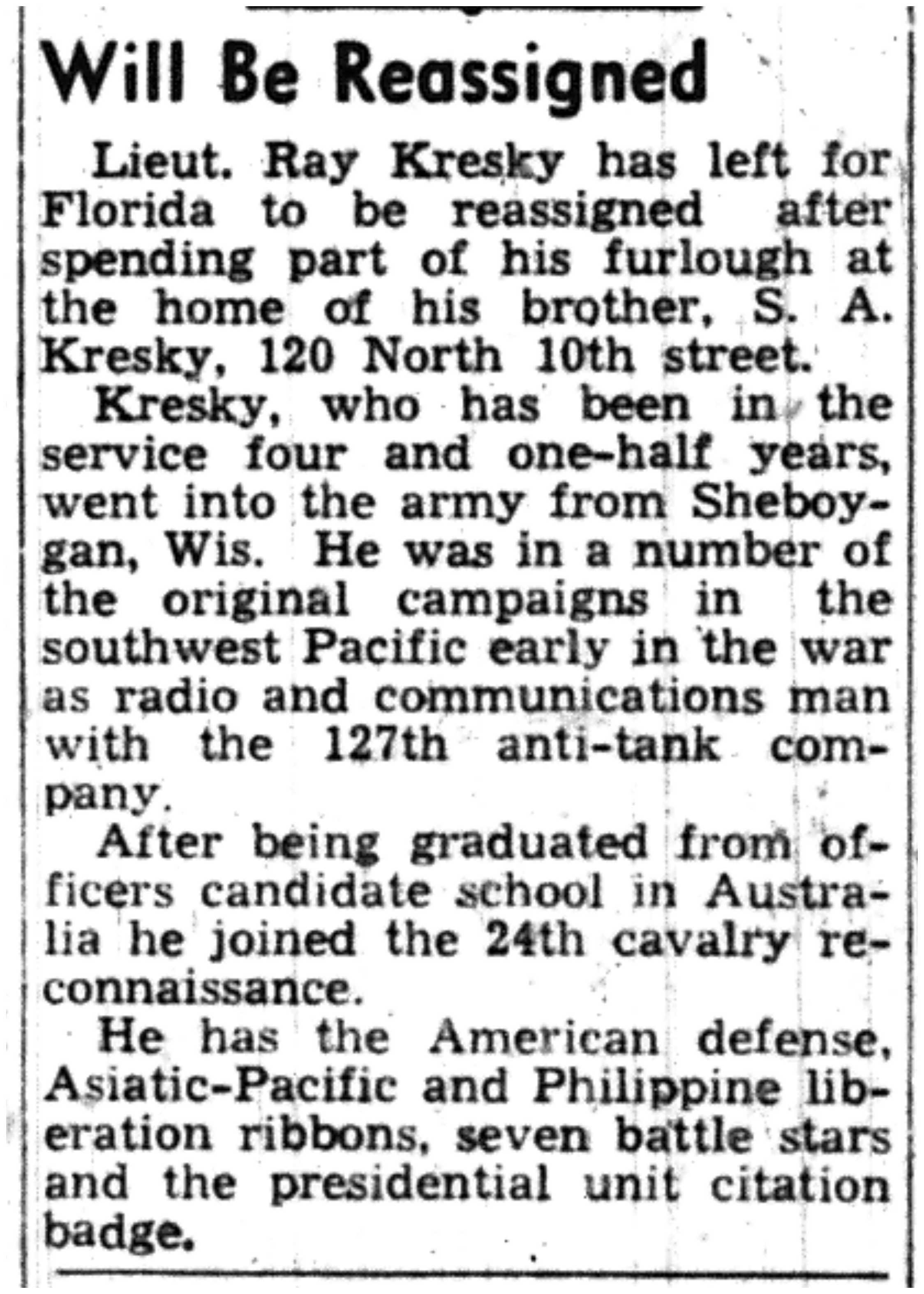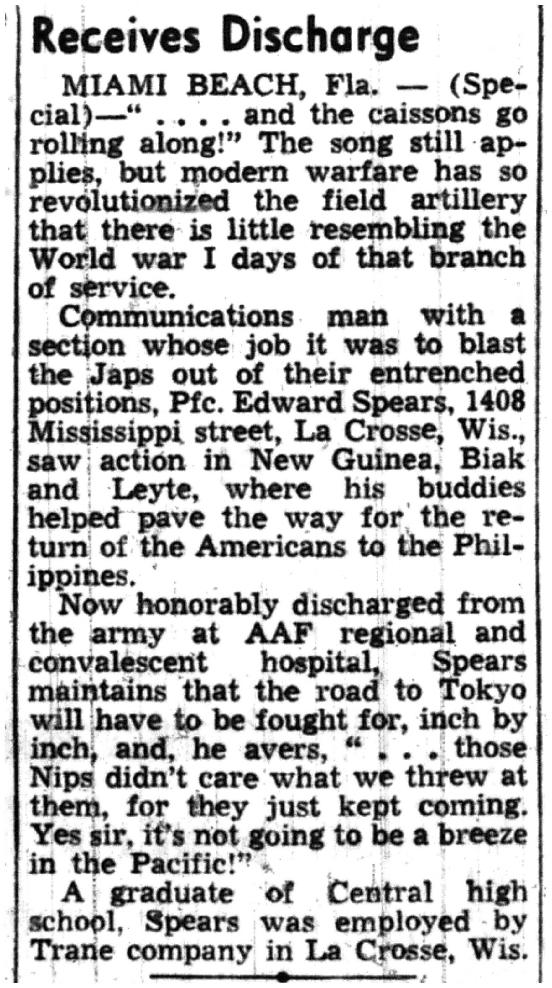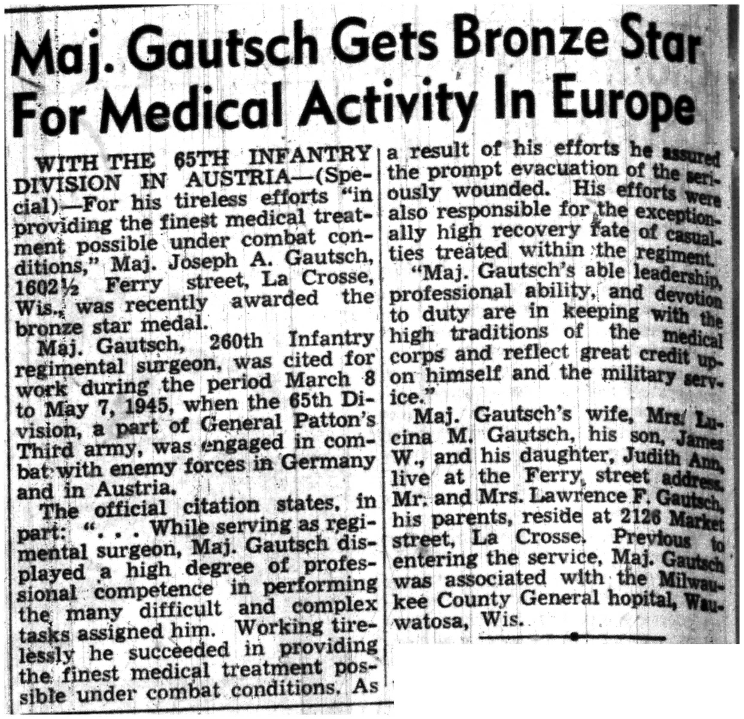 | 1945-7-3 | La Crosse Tribune p5 | |