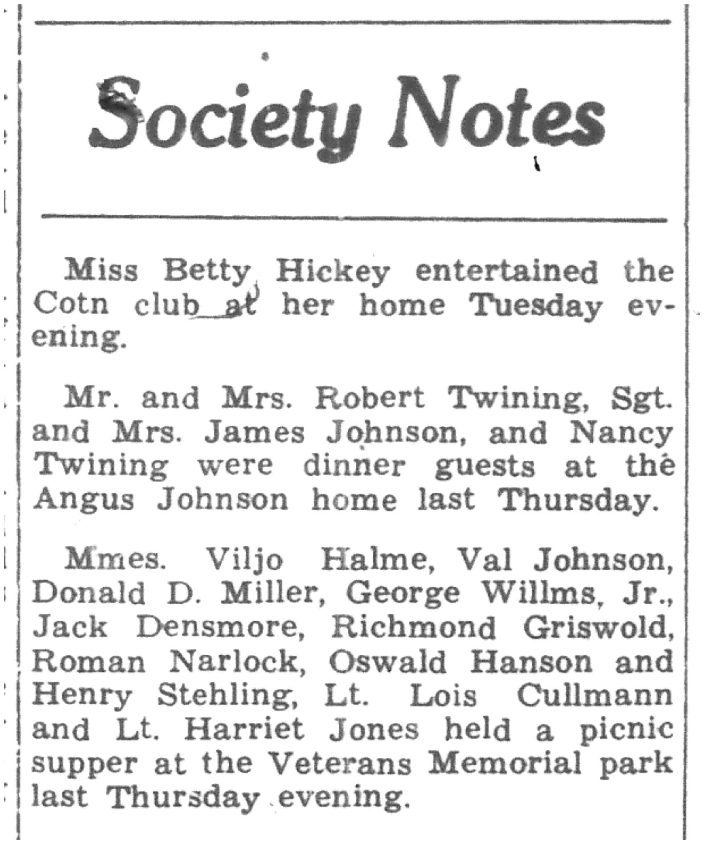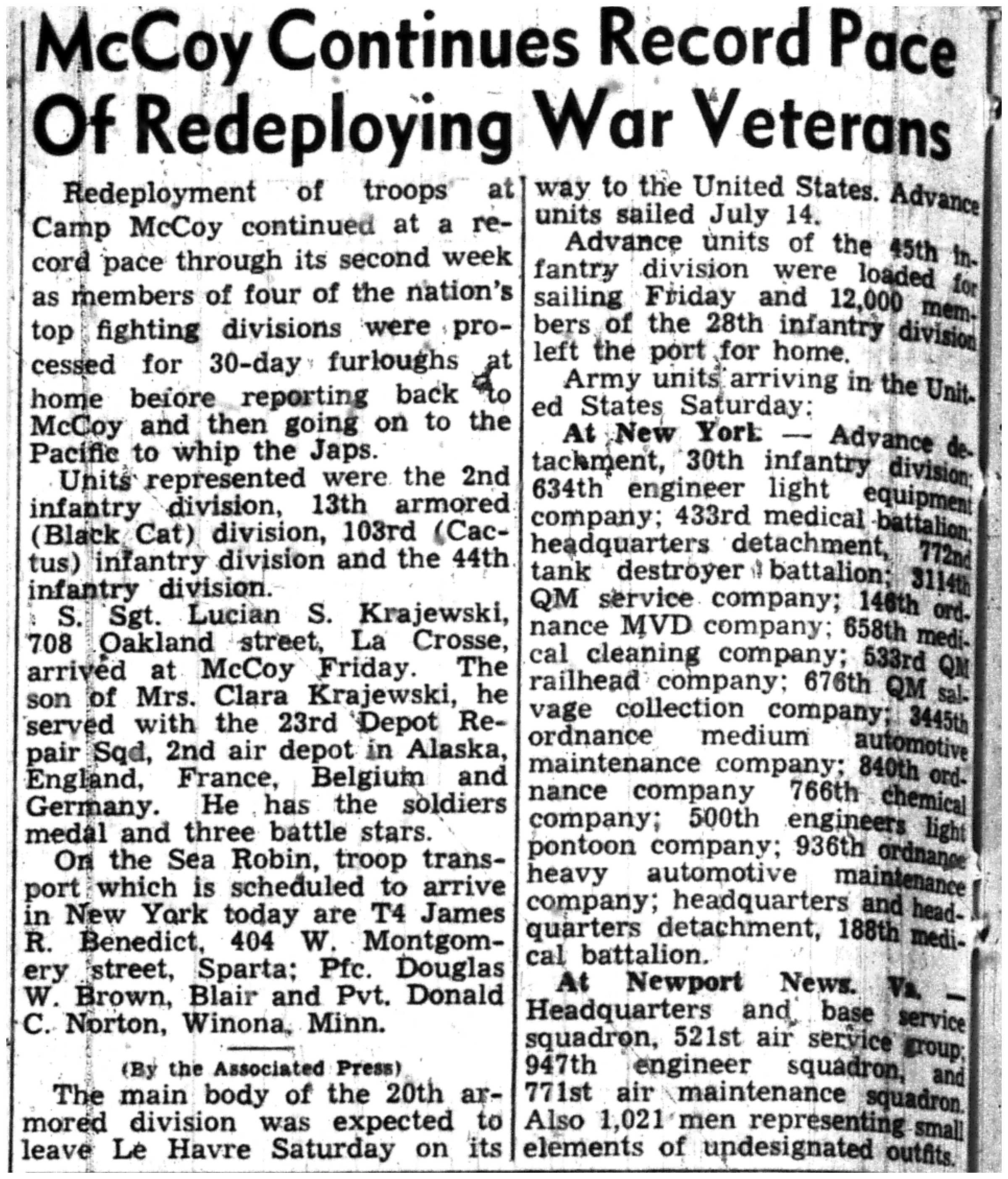 | 1945-7-12 | La Crosse Tribune p10 | |