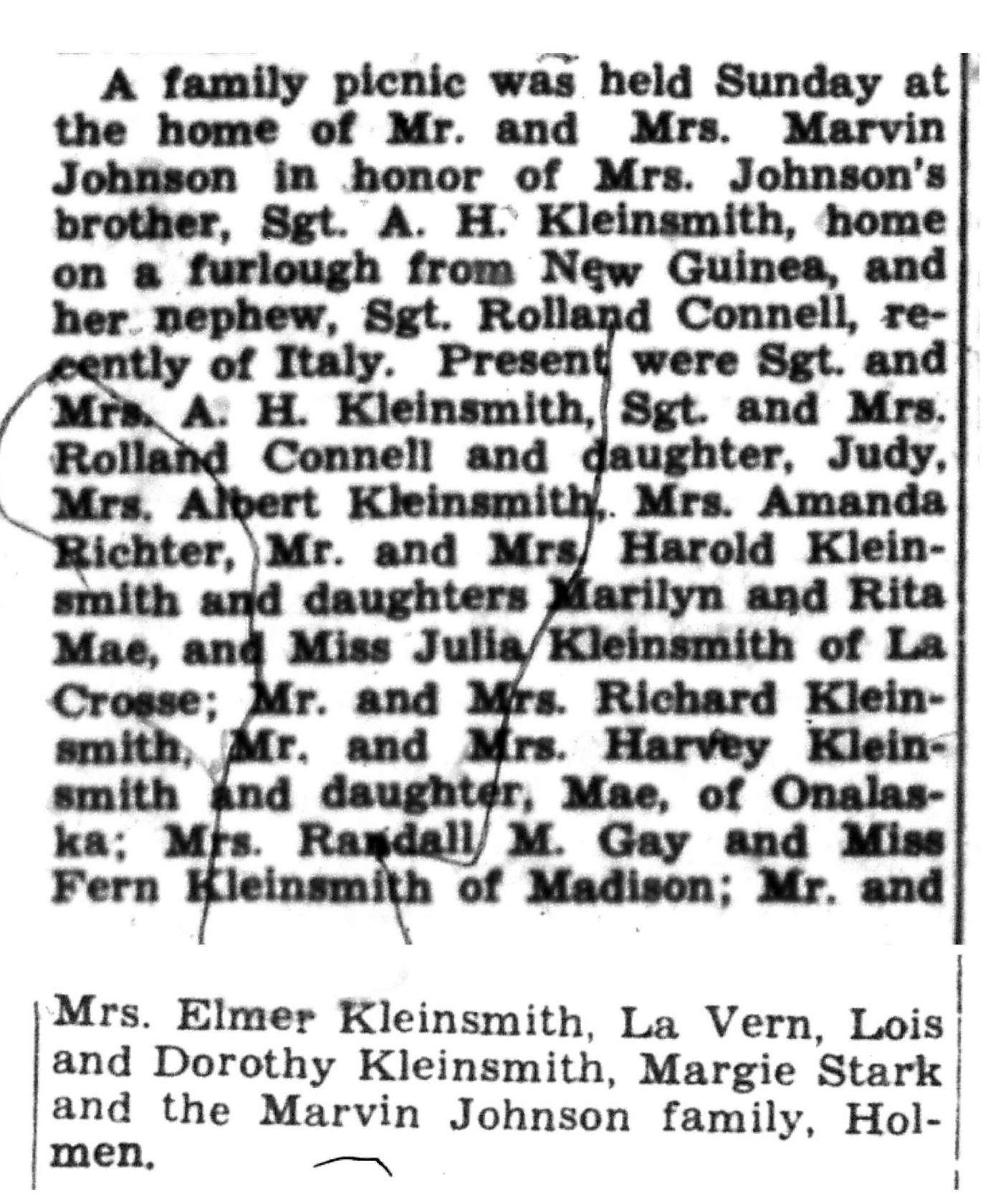| 1945-7-26 | La Crosse County Record p8 | |