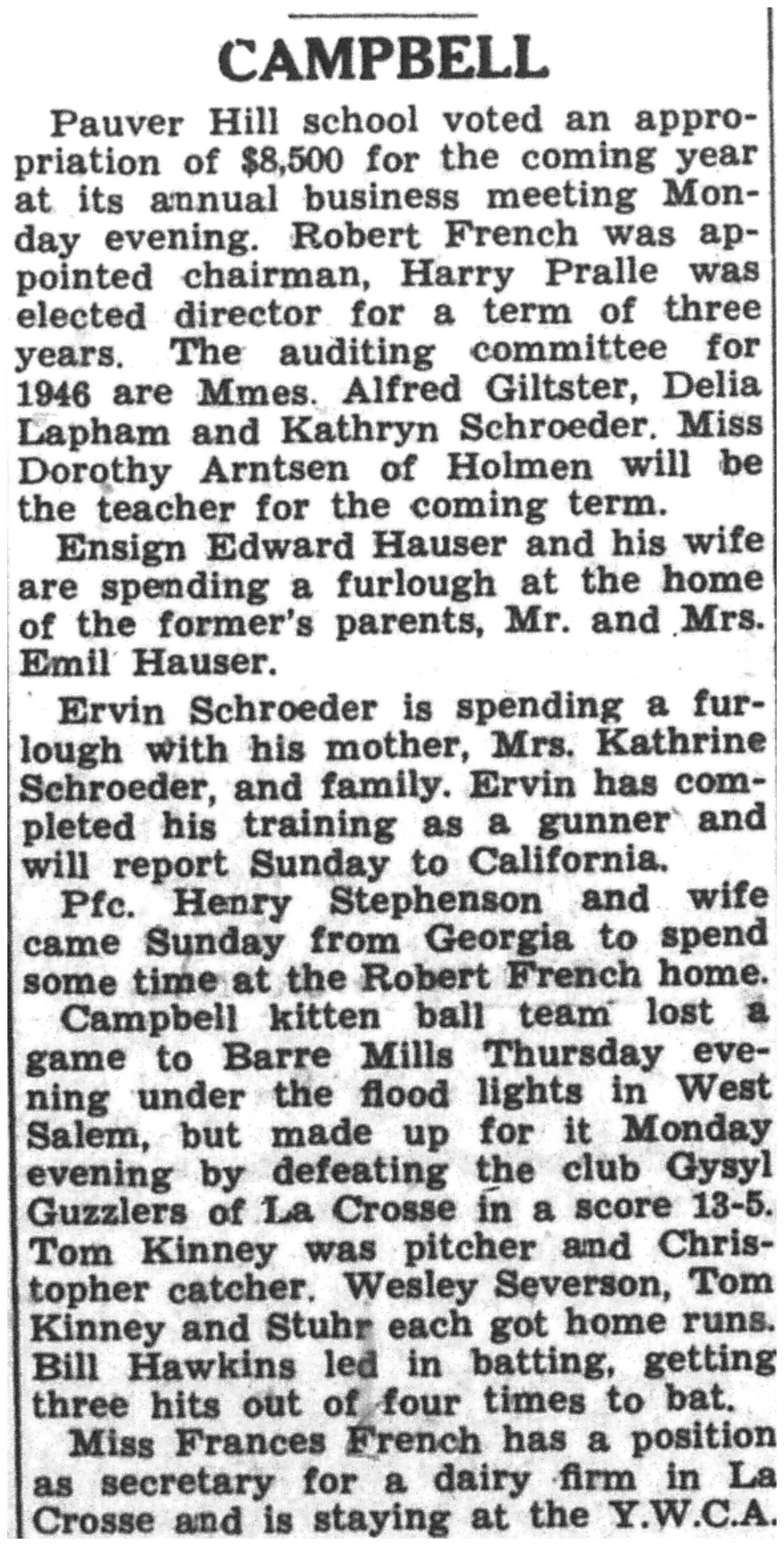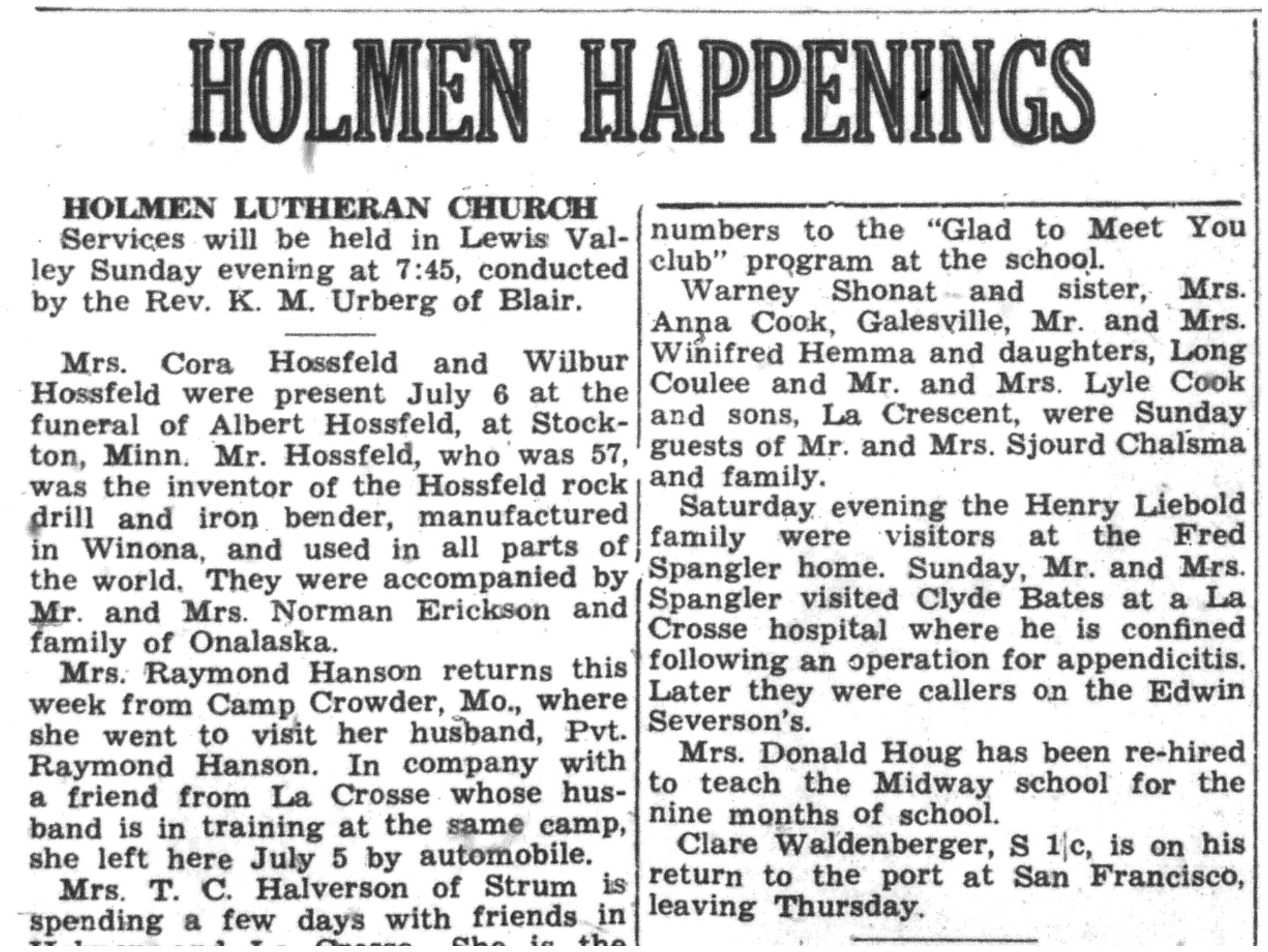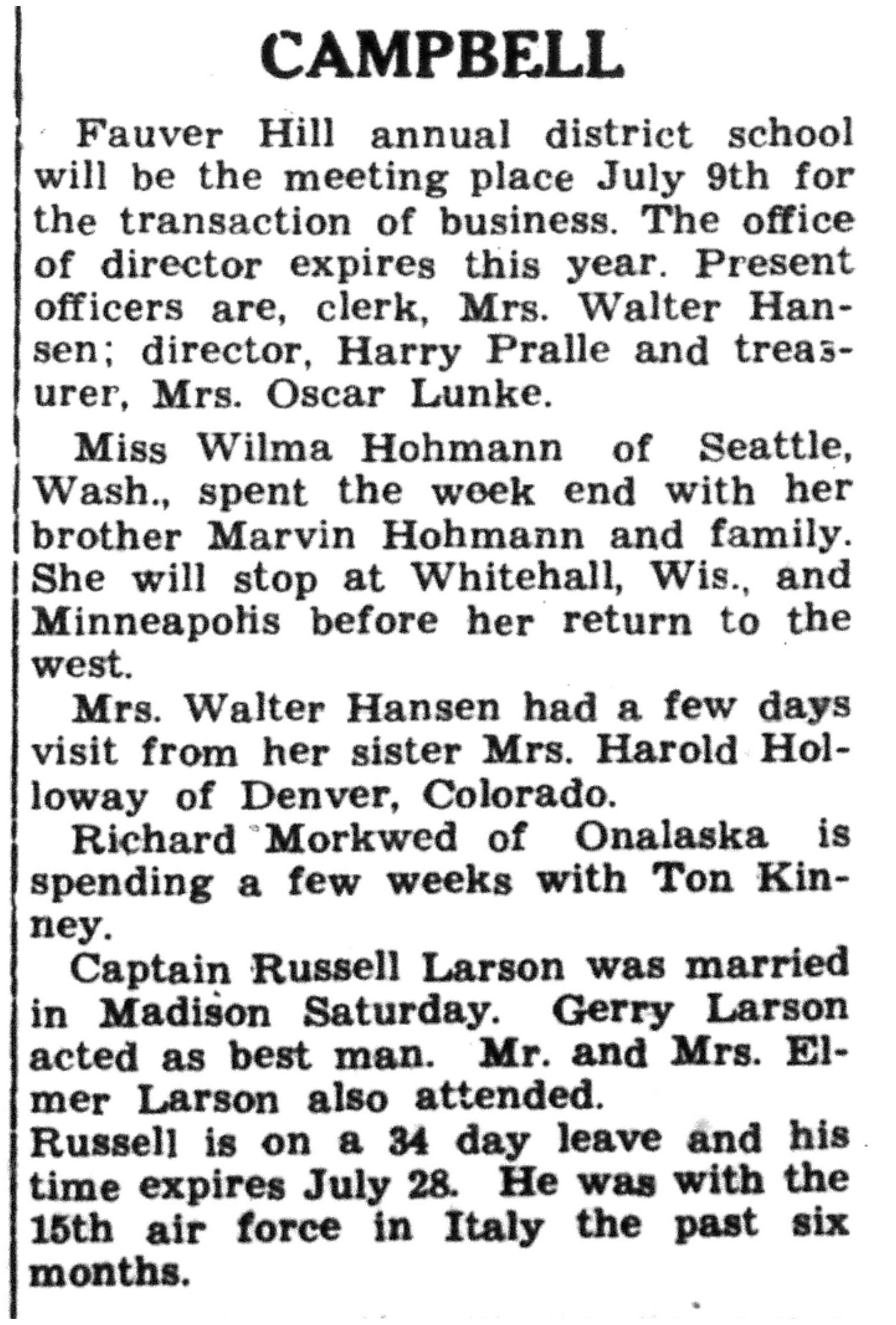 | 1945-7-12 | La Crosse County Record p5 | |