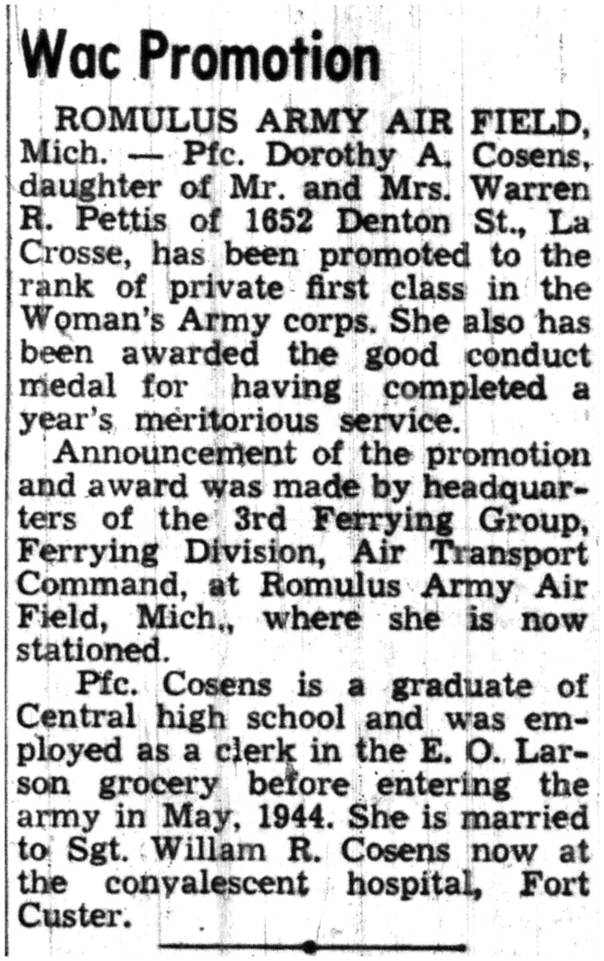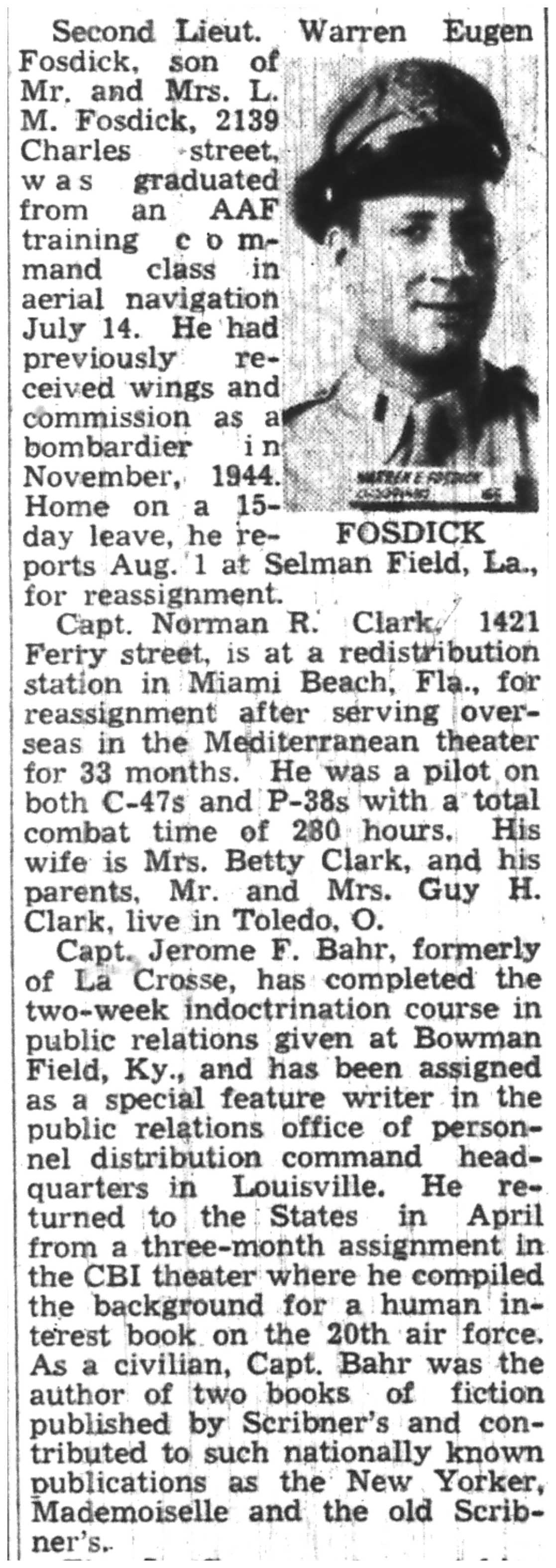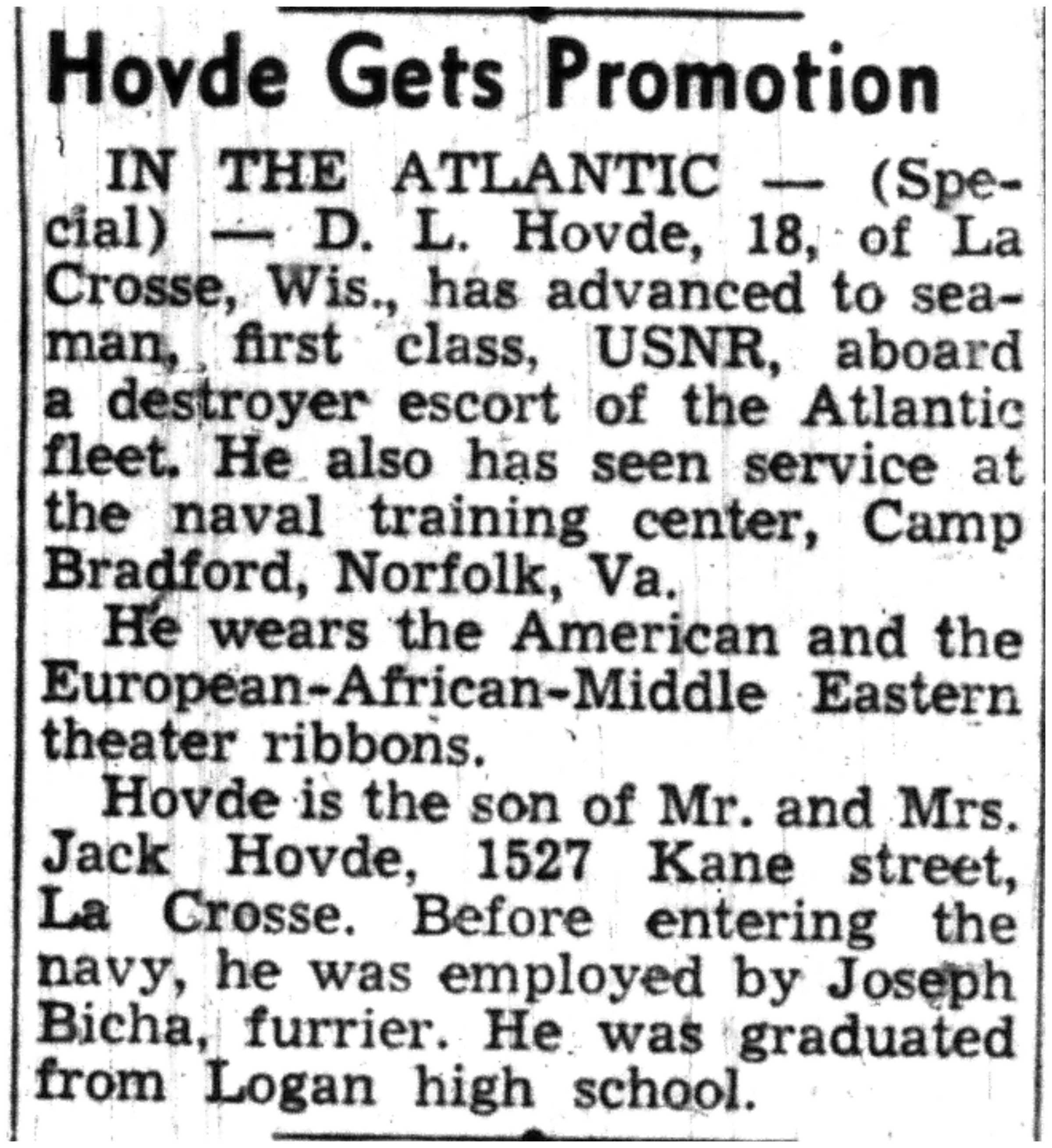 | 1945-7-1 | La Crosse Tribune p10 | |