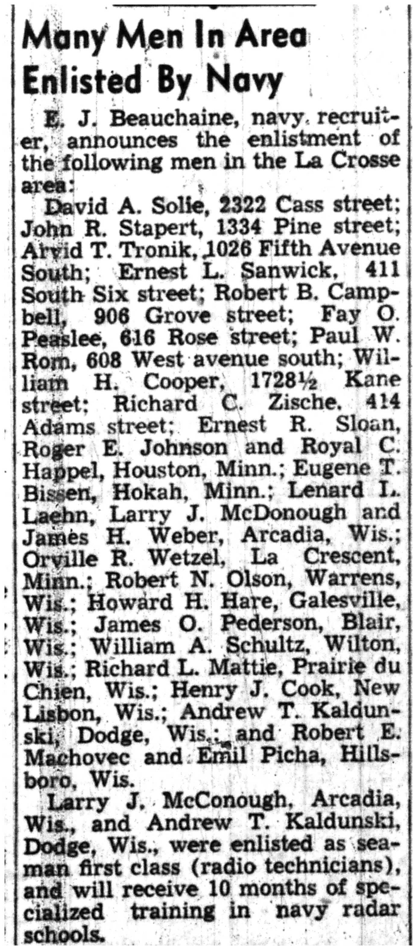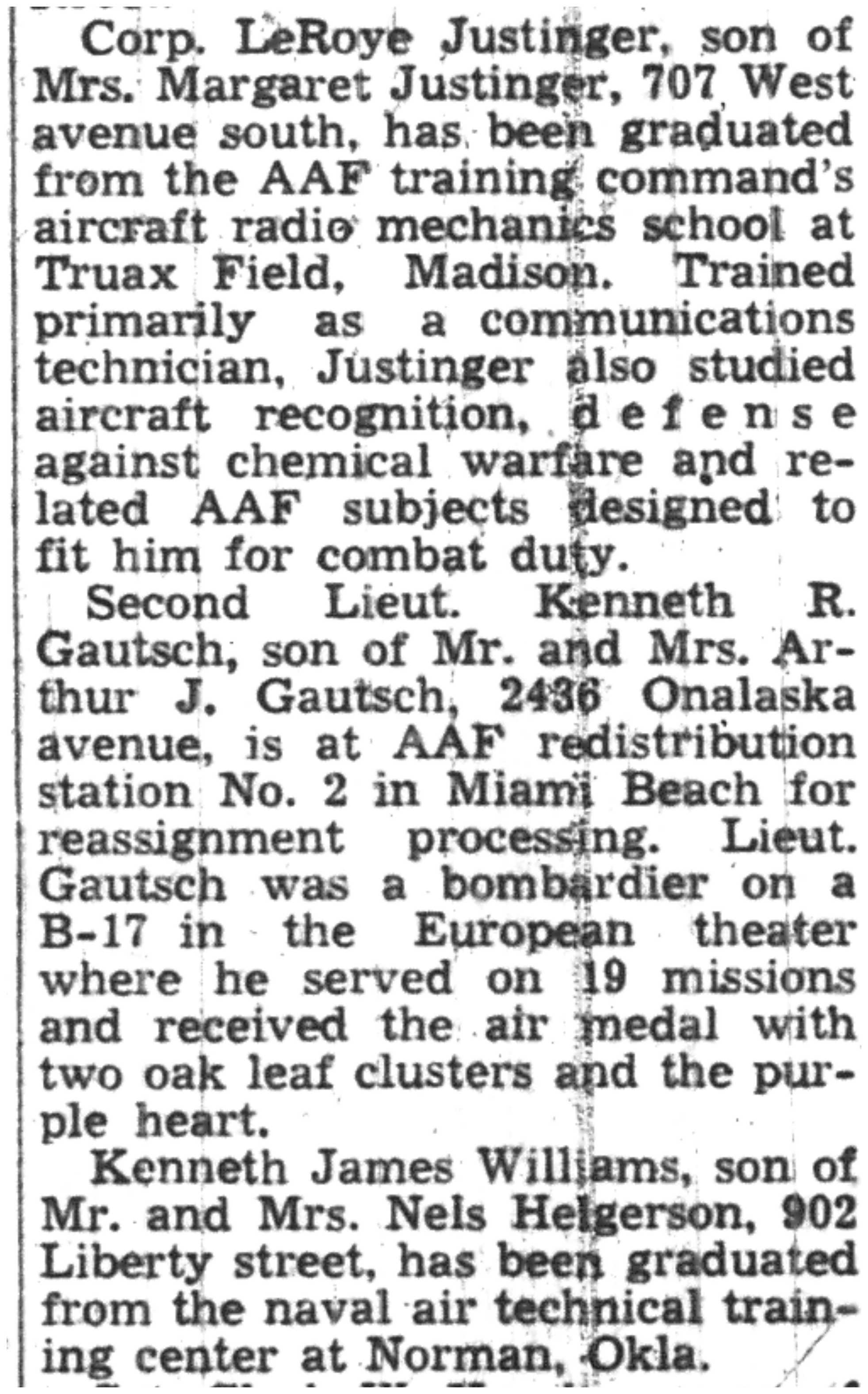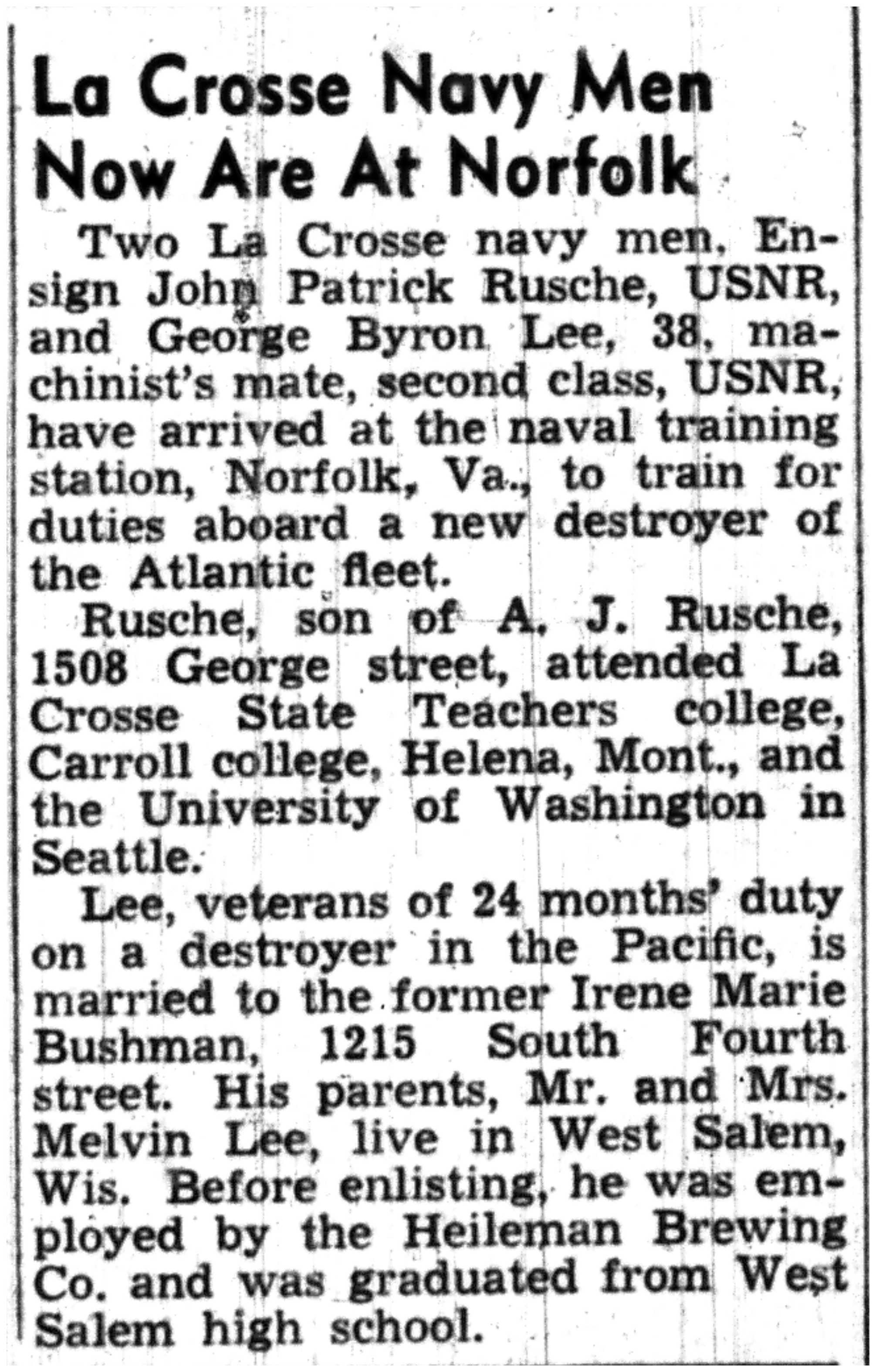 | 1945-7-31 | La Crosse Tribune p10 |