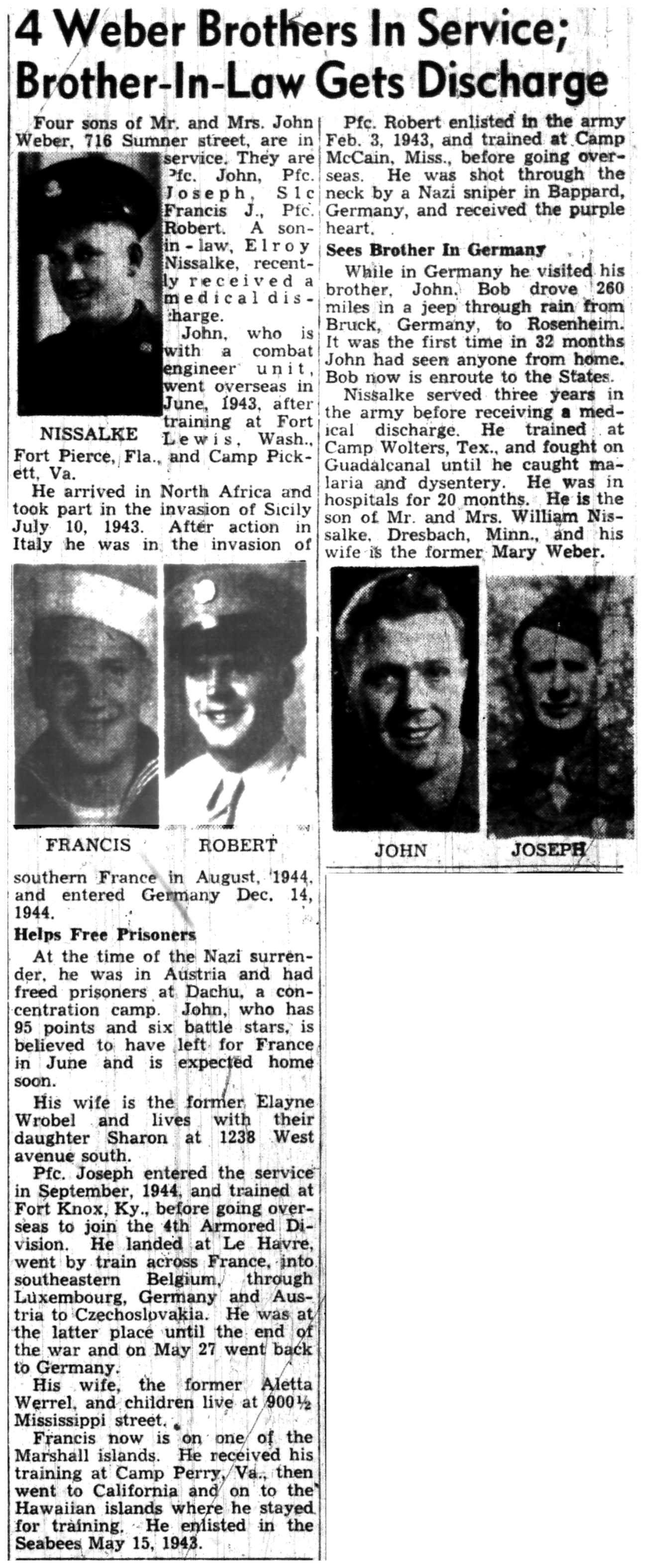 Elroy Nissalke, Francis Weber, Robert Weber, John Weber, Joseph Weber |