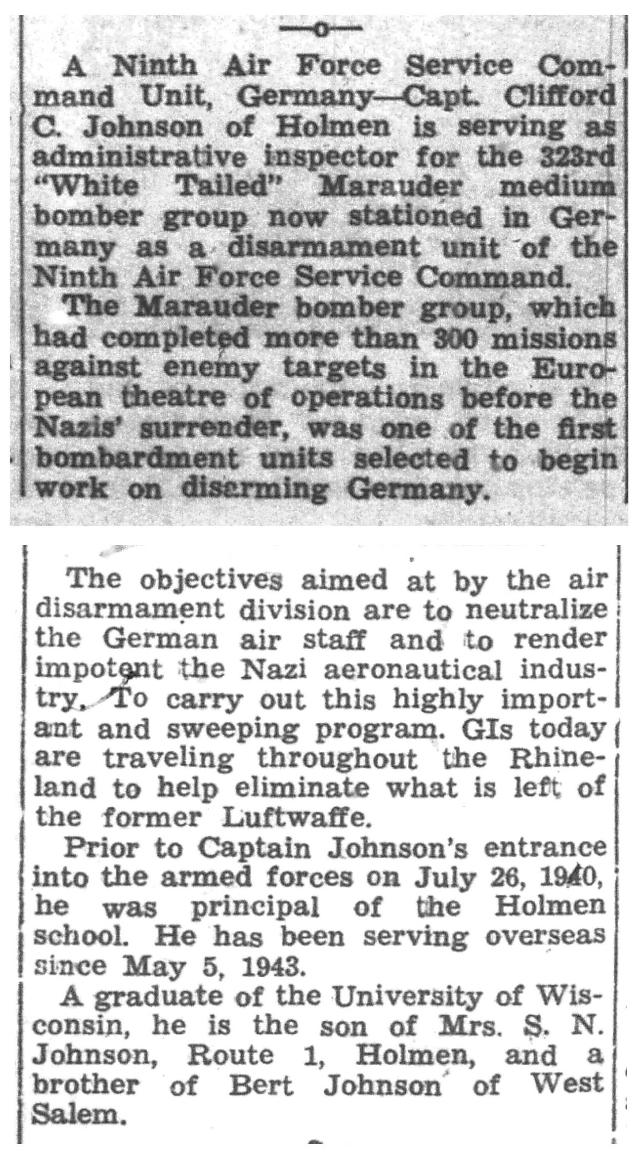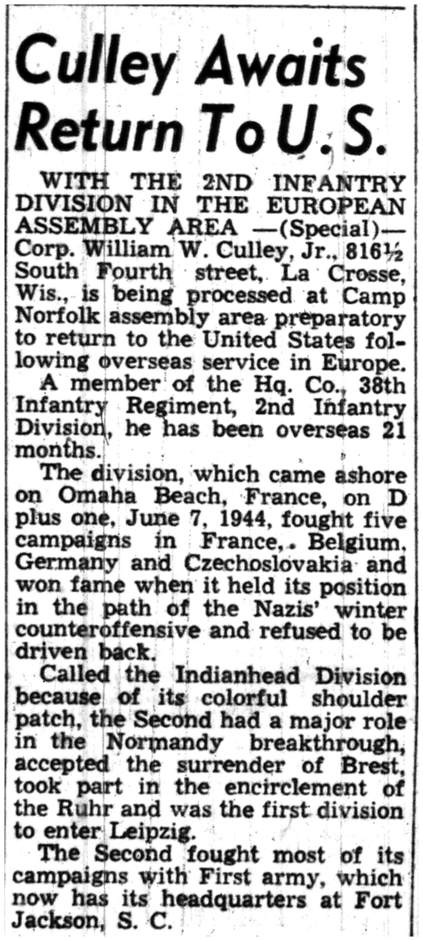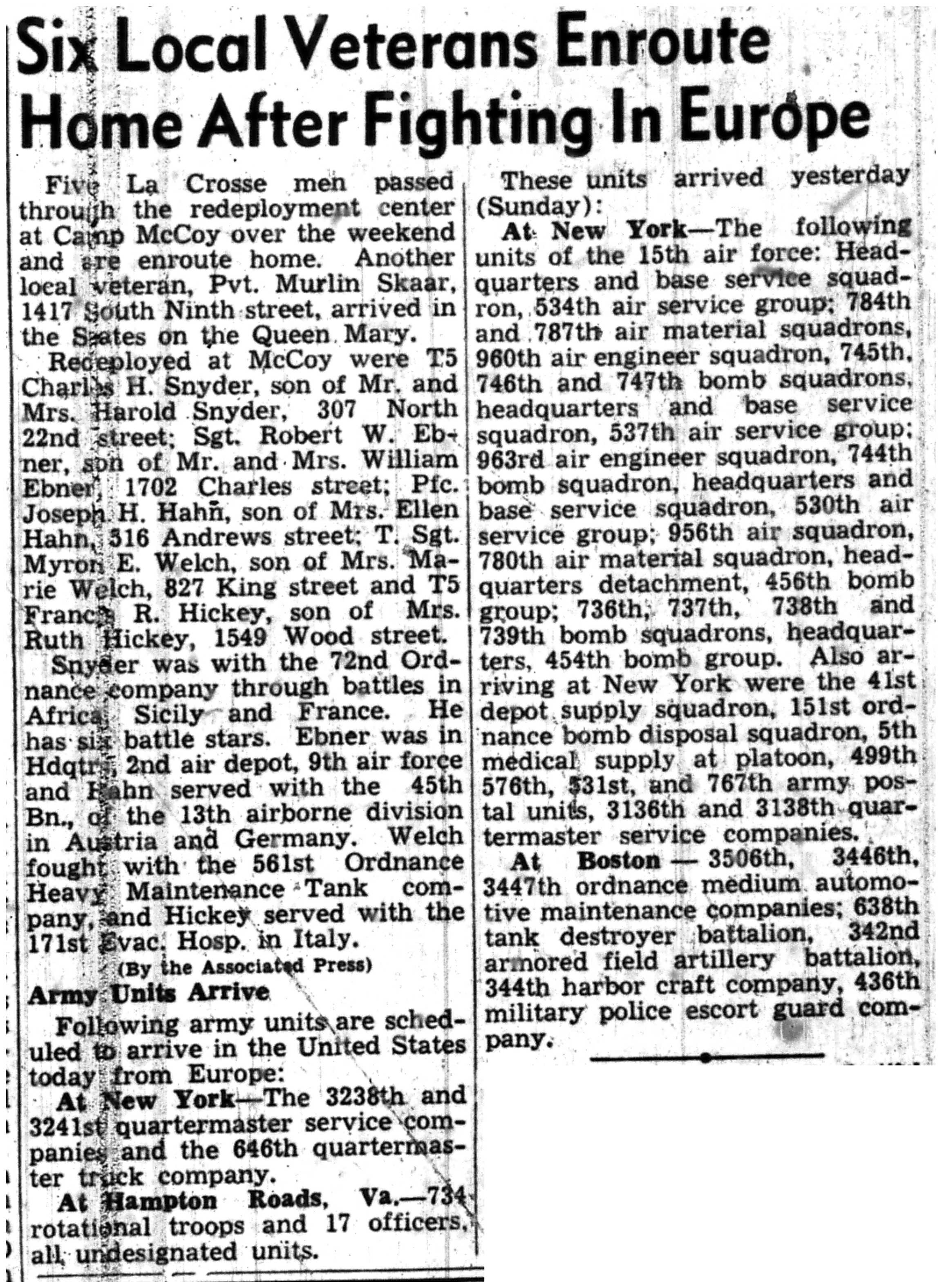 | 1945-7-2 | La Crosse Tribune p6 | |