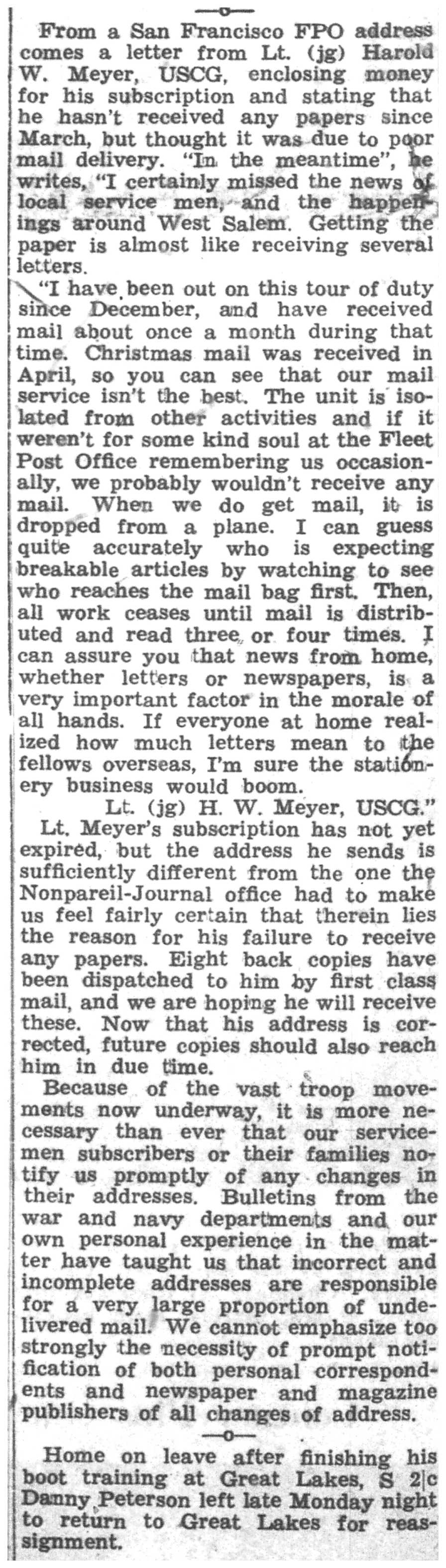 | 1945-7-19 | Non-Pareil Journal p8 |