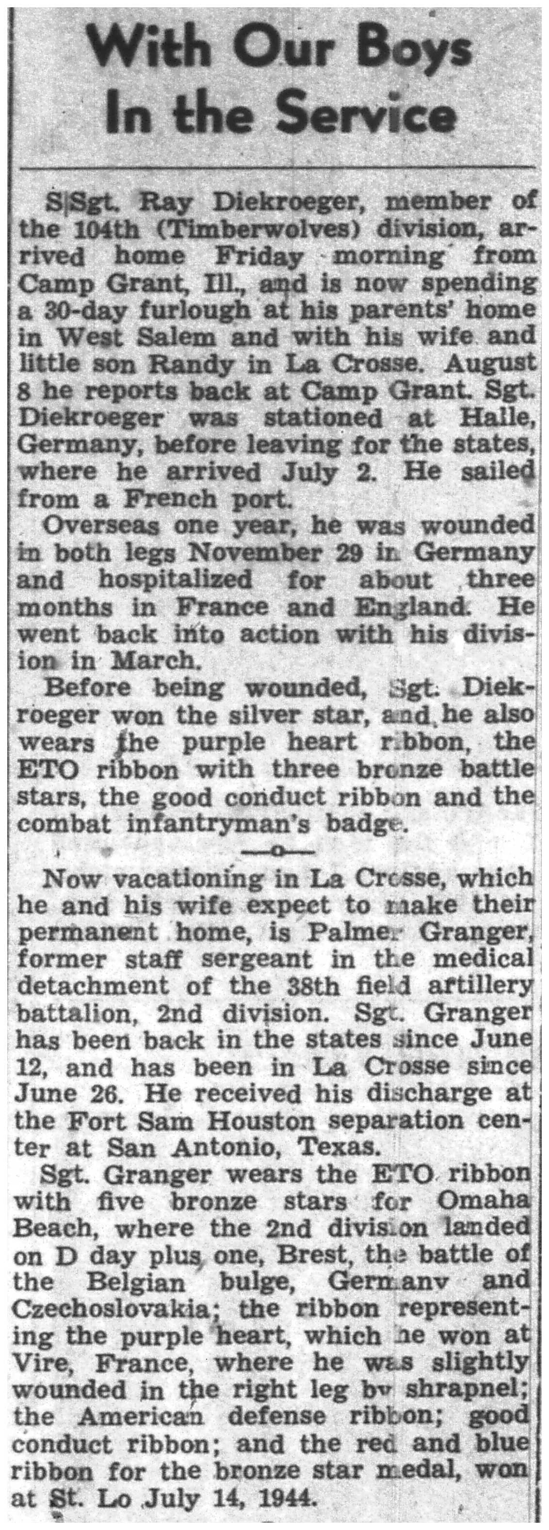 | 1945-7-2 | La Crosse Tribune p5 | |