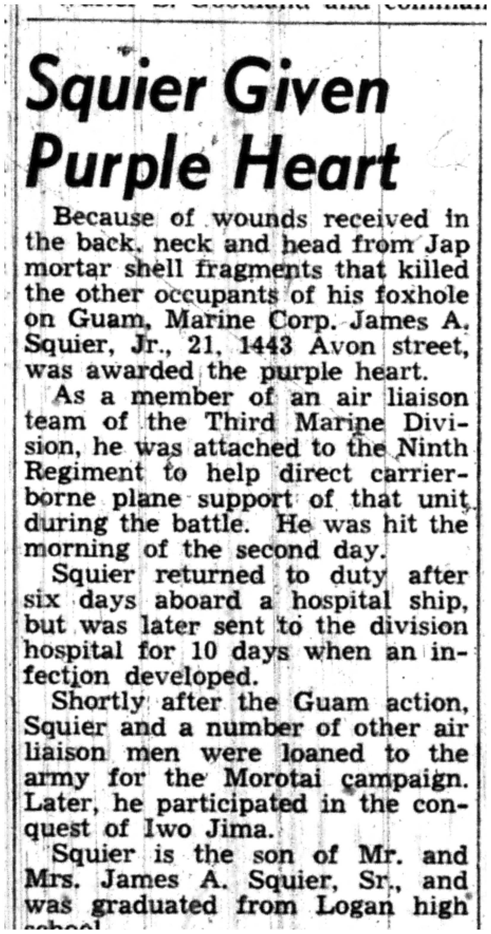 | 1945-7-19 | Non-Pareil Journal p8 | |
