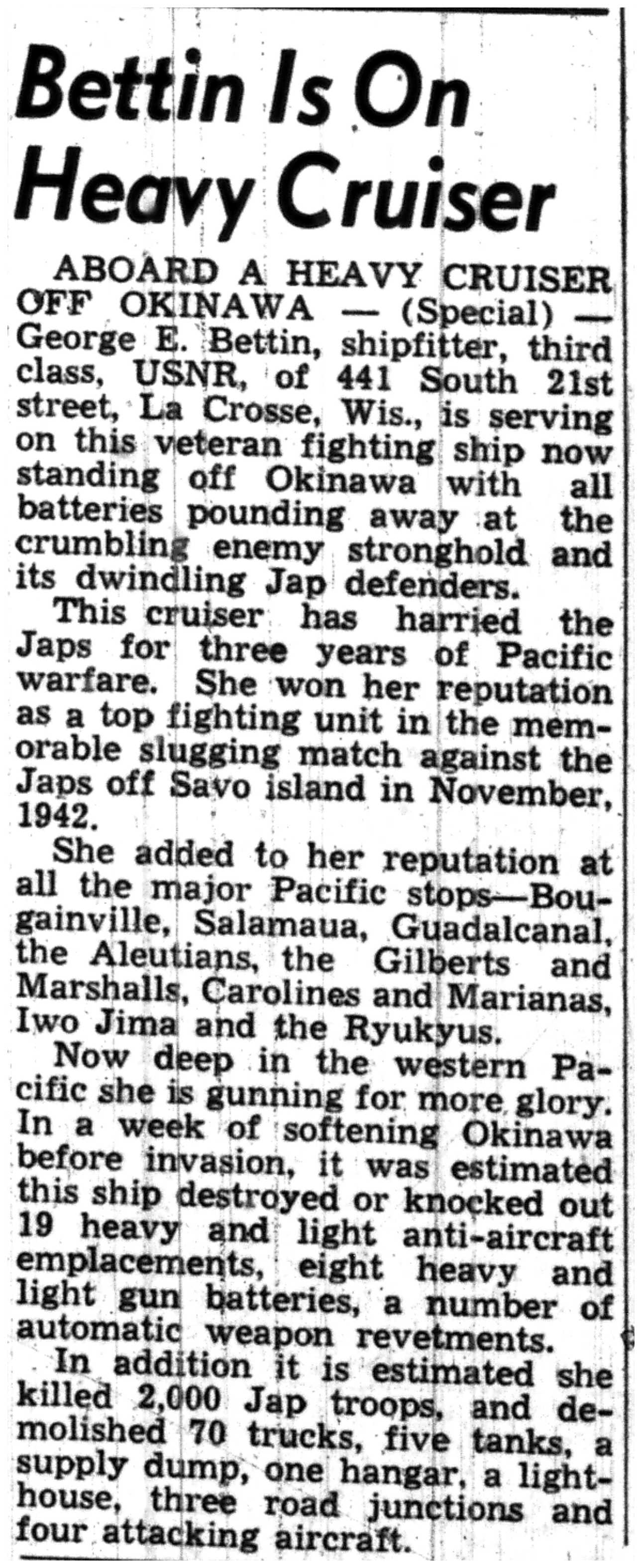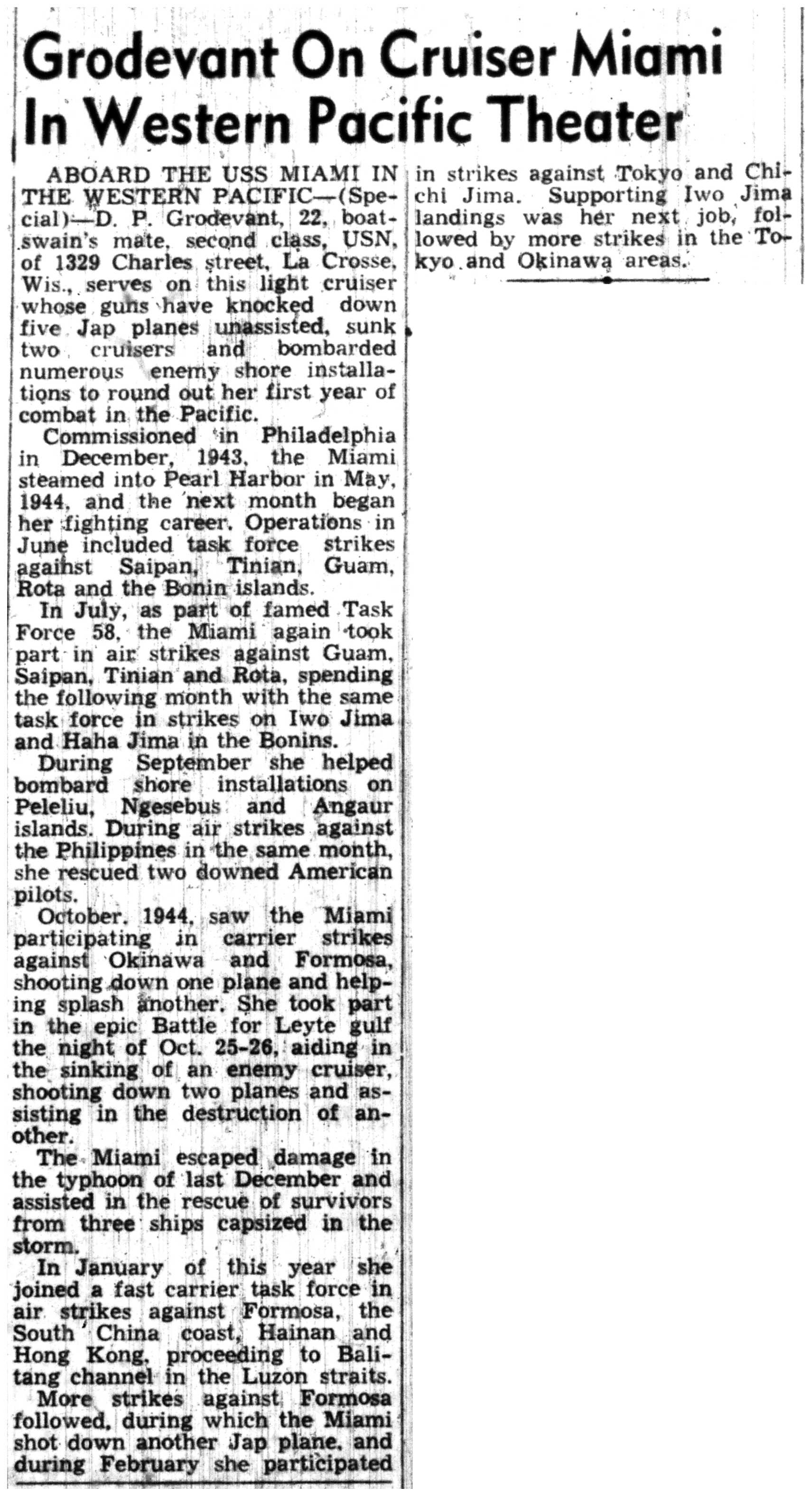 | 1945-7-2 | La Crosse Tribune p7 | |