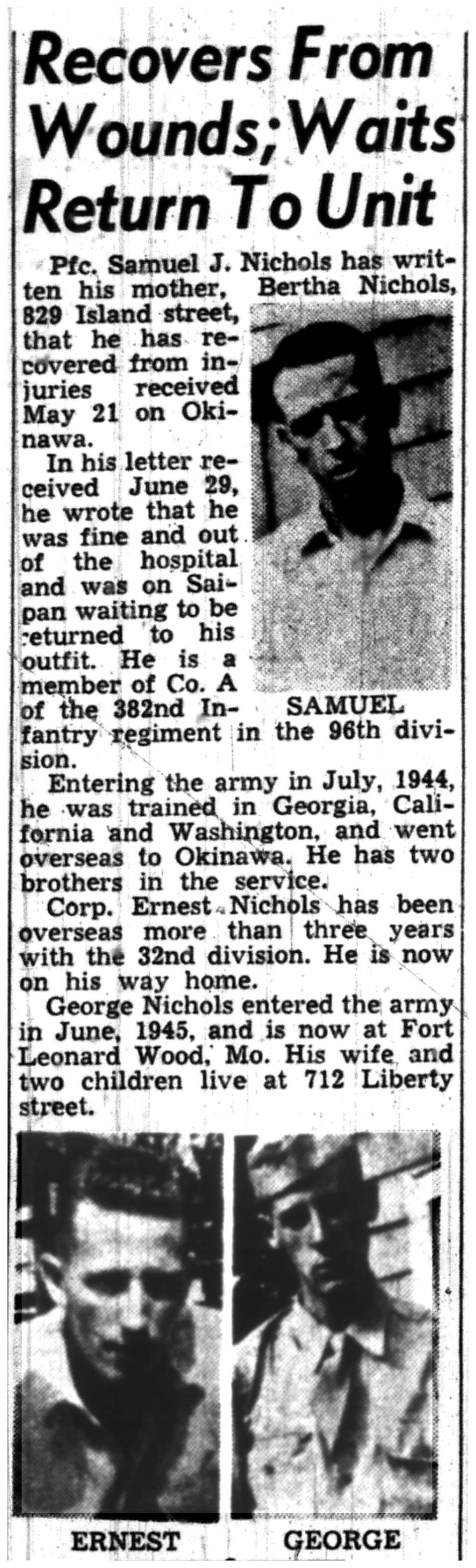 | 1945-7-12 | Non-Pareil Journal p5 | |