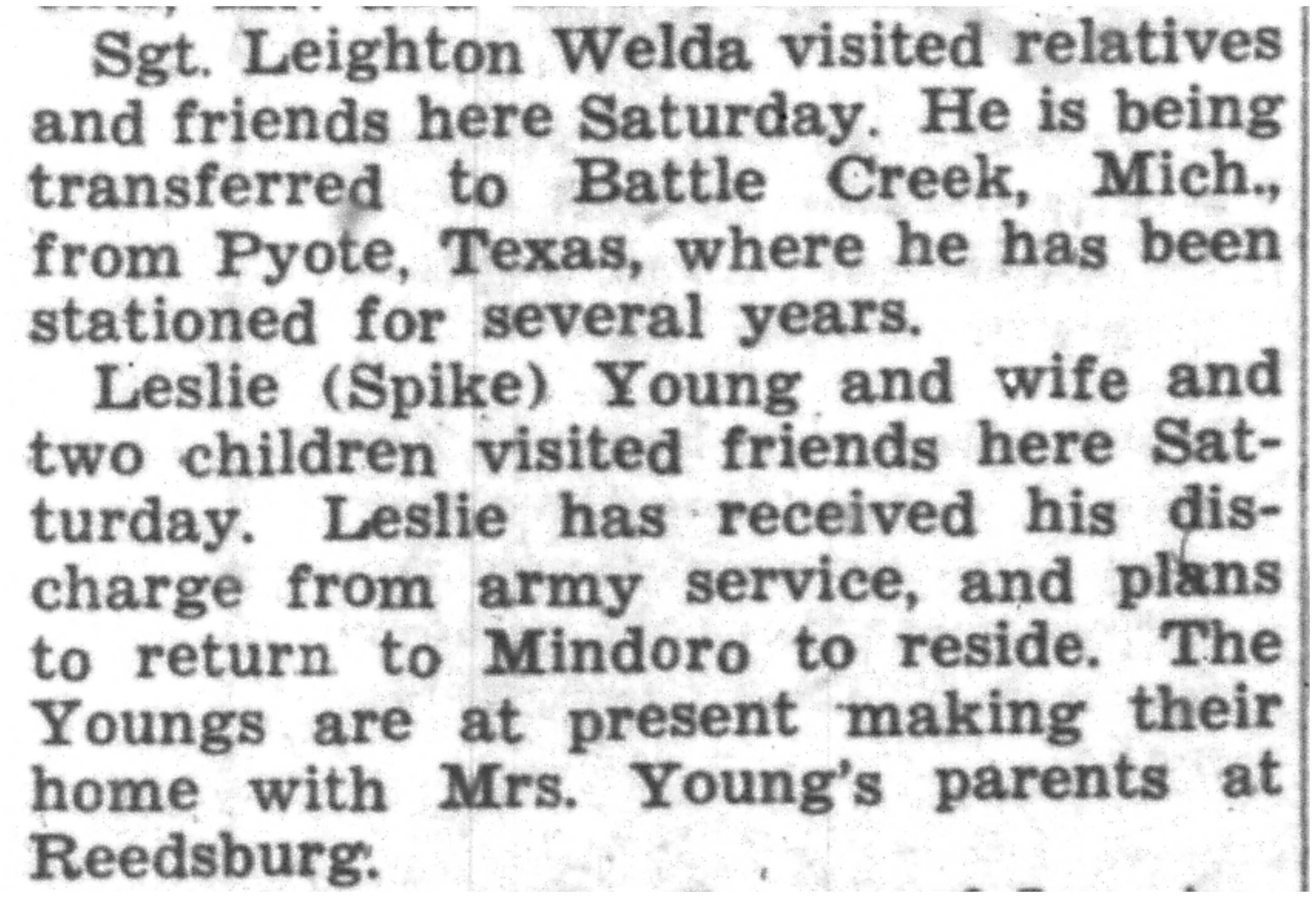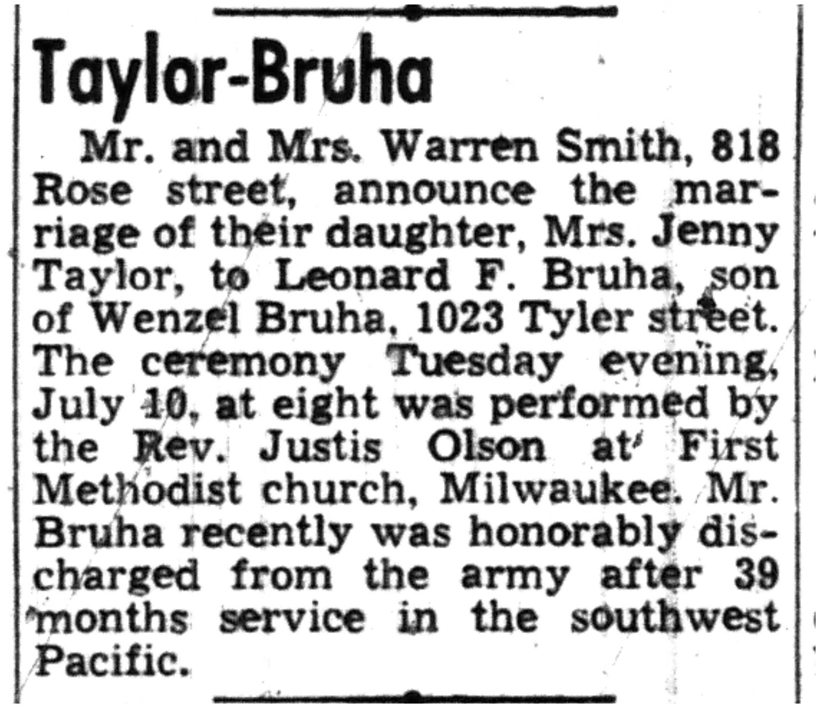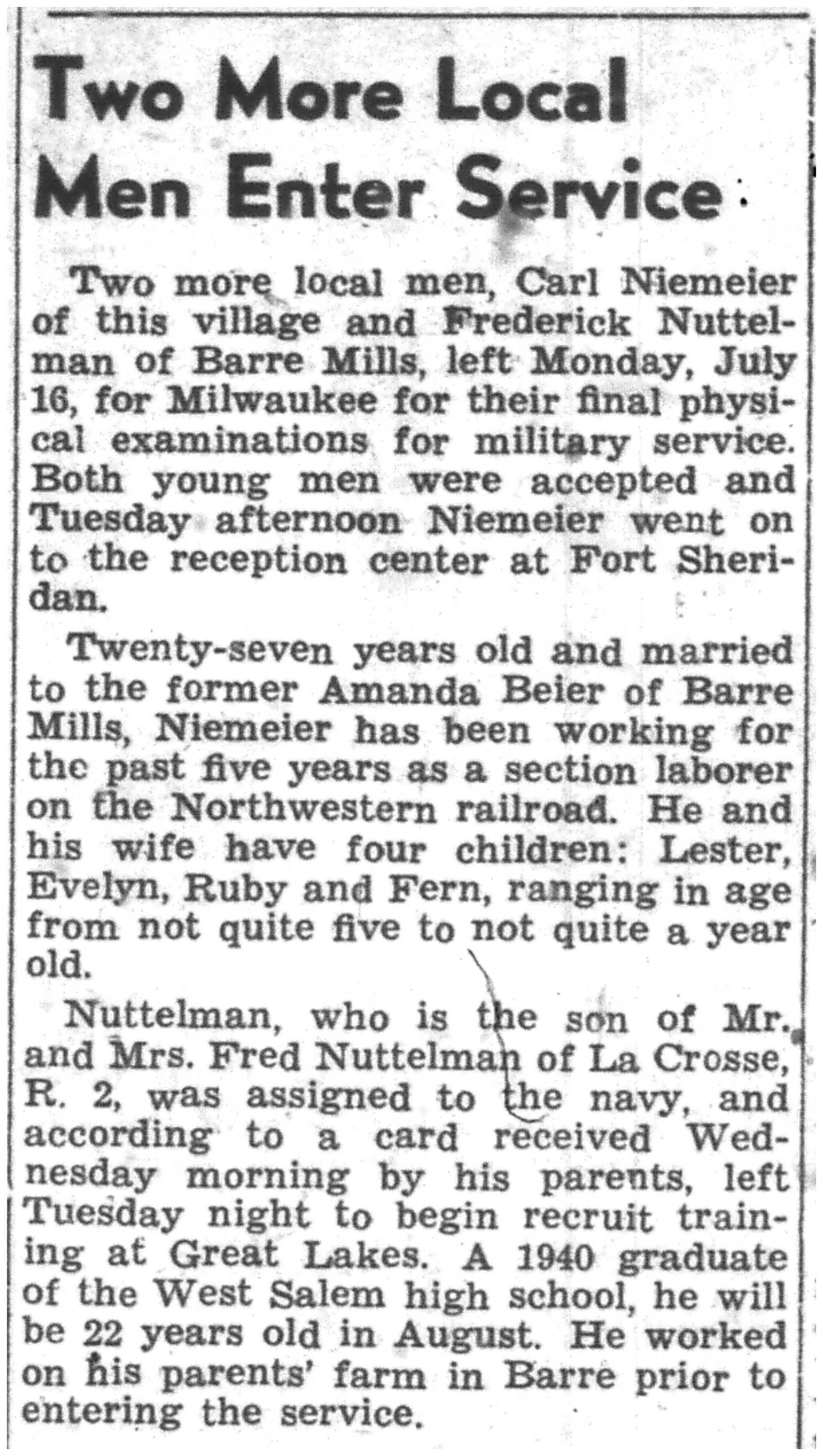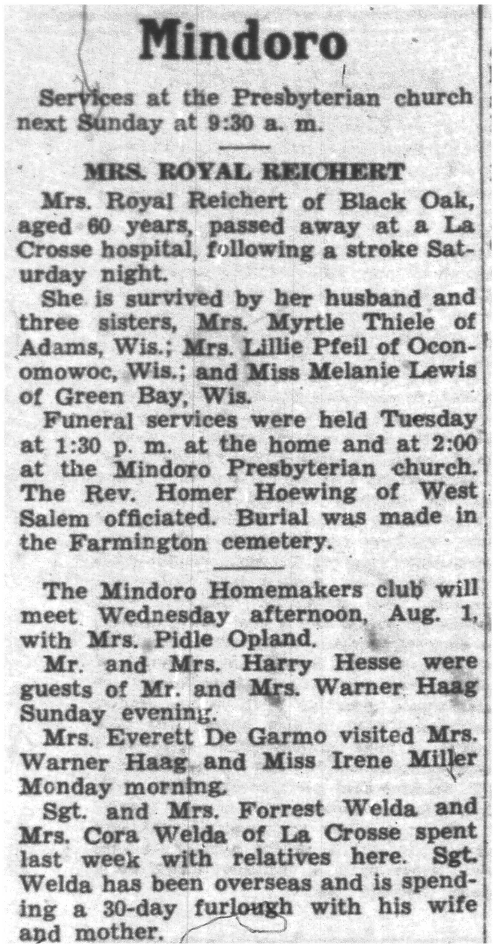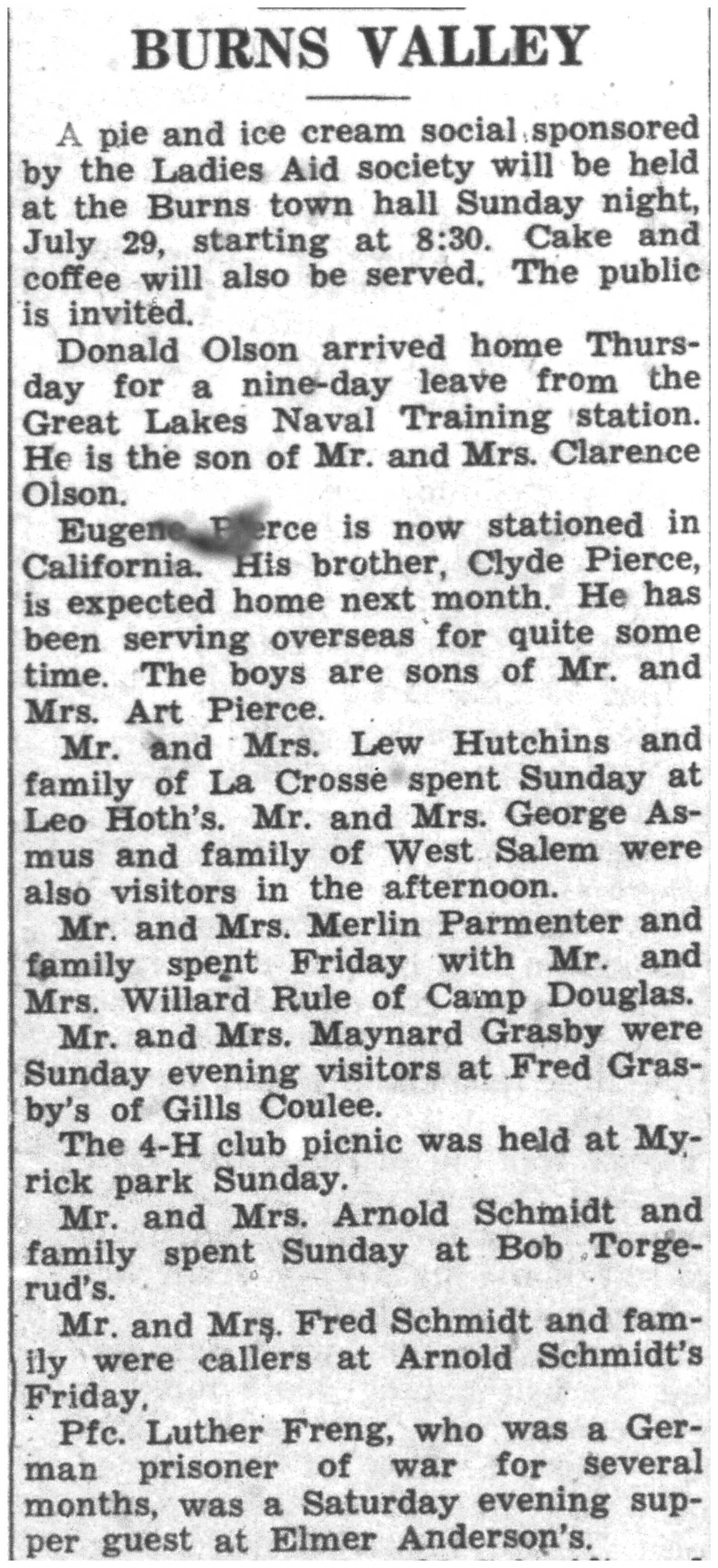 | 1945-7-26 | La Crosse County Record p5 | |