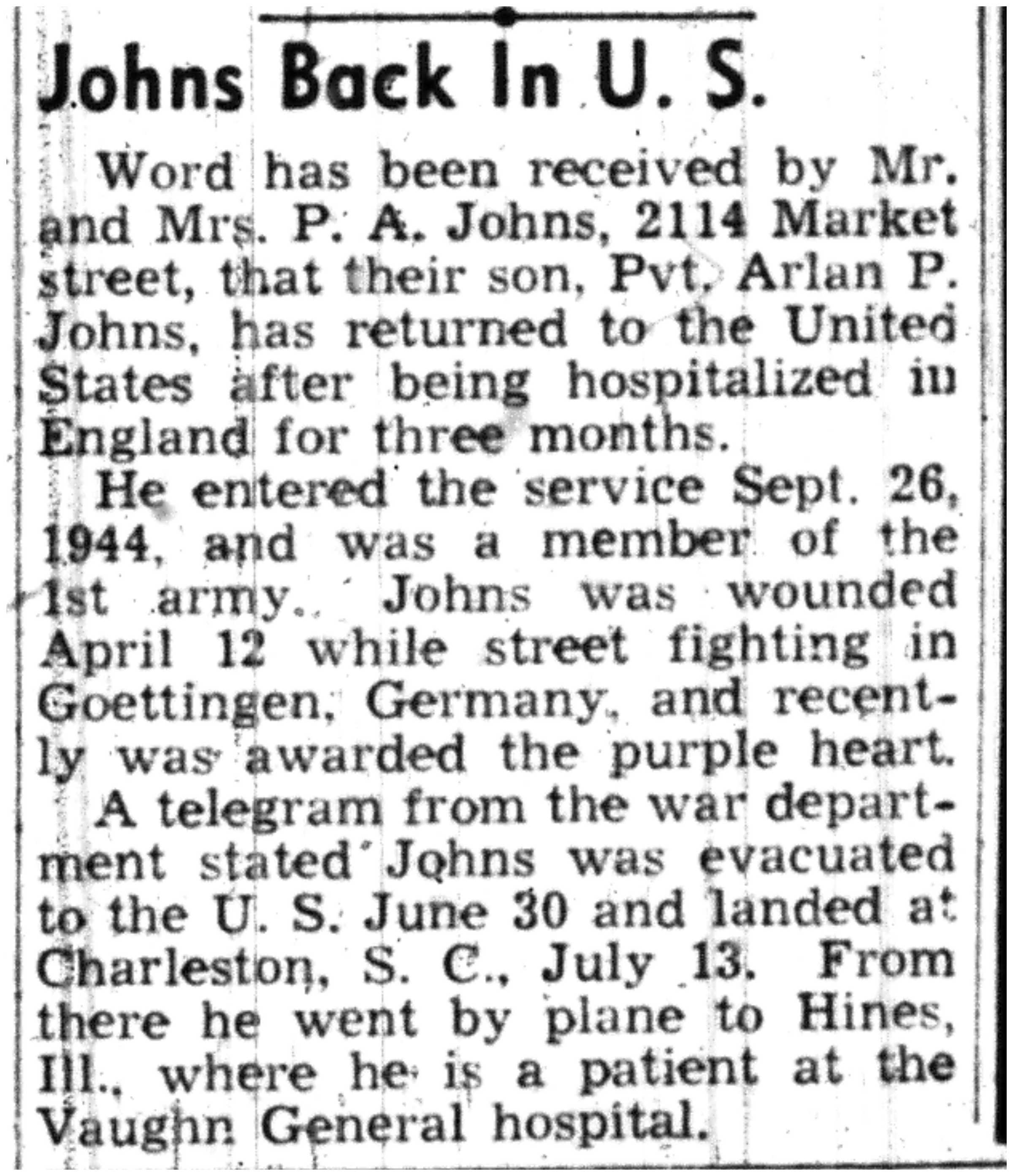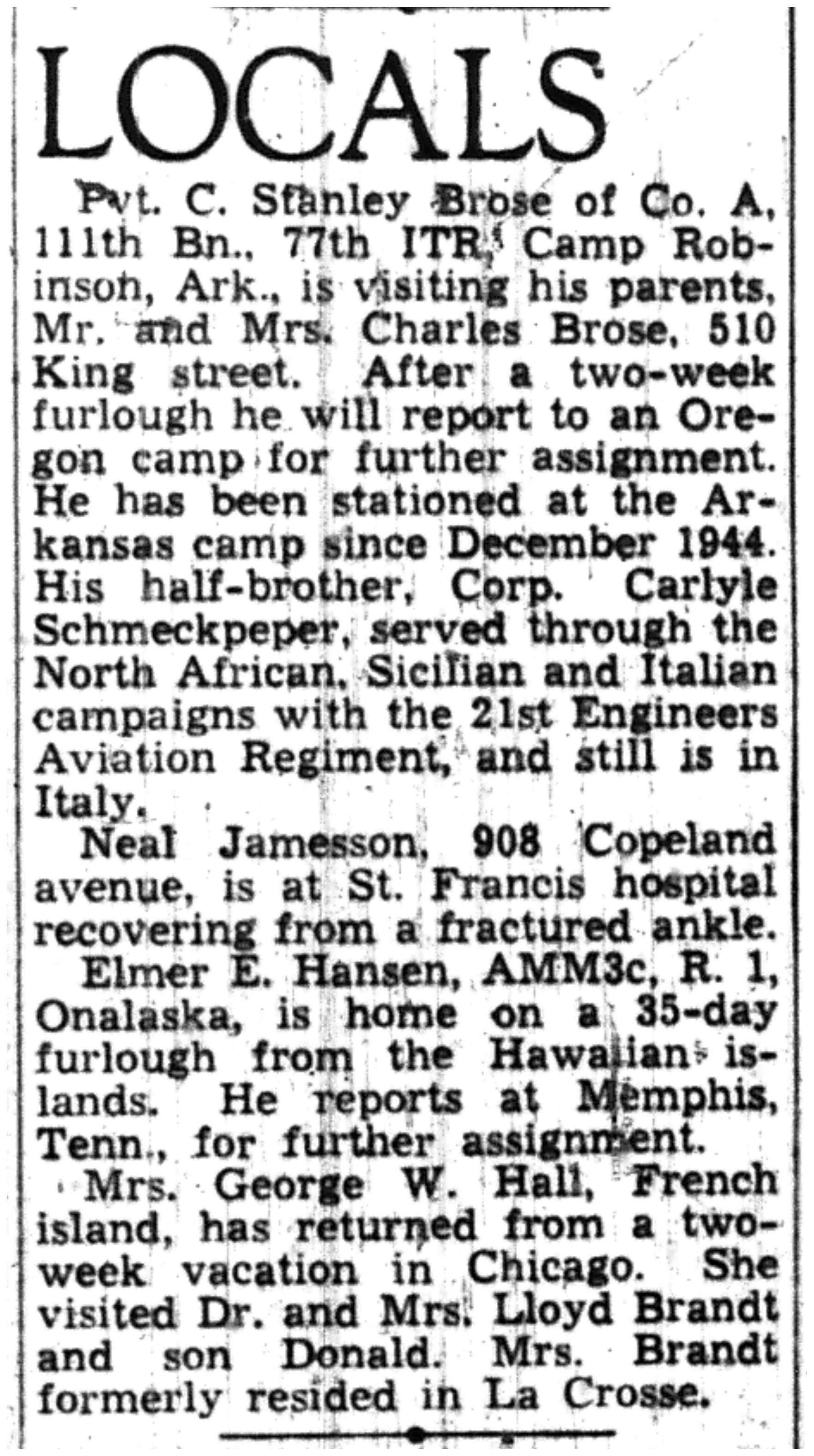 | 1945-7-5 | La Crosse Tribune p8 | |