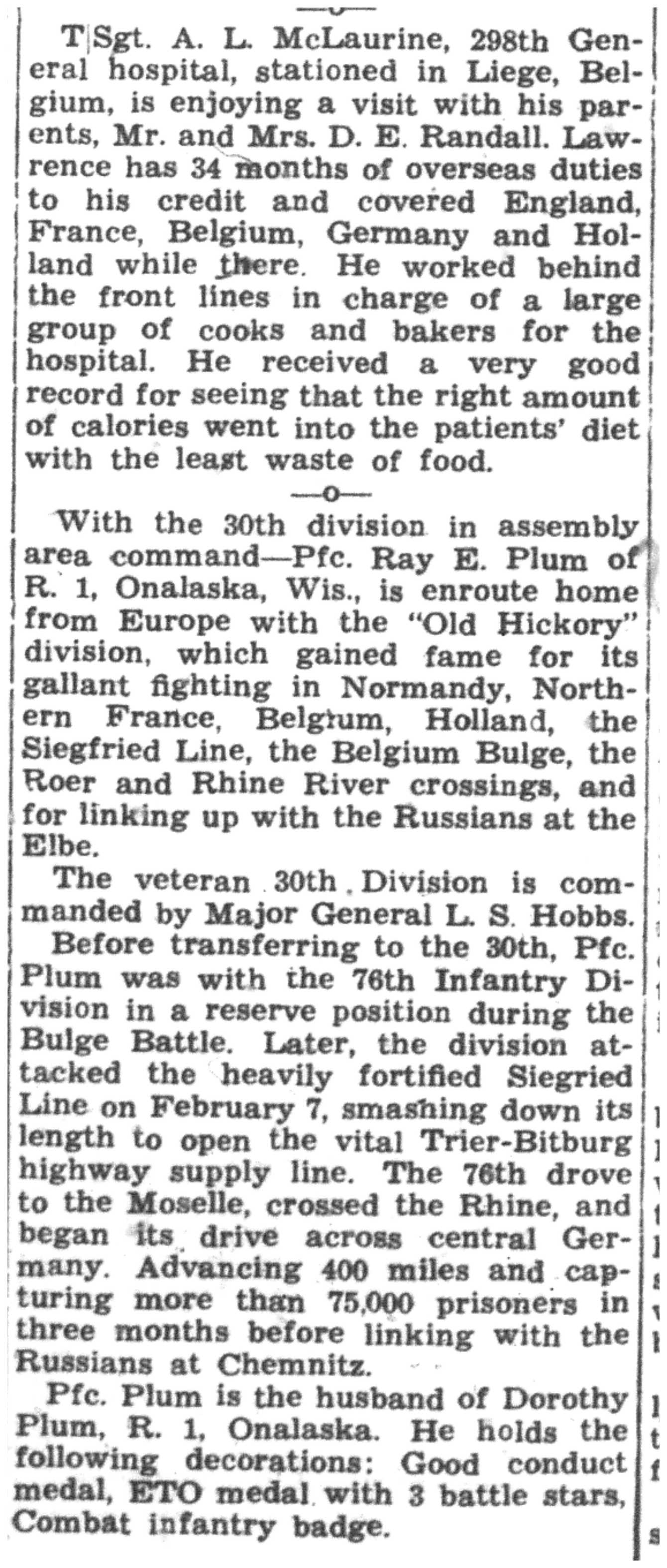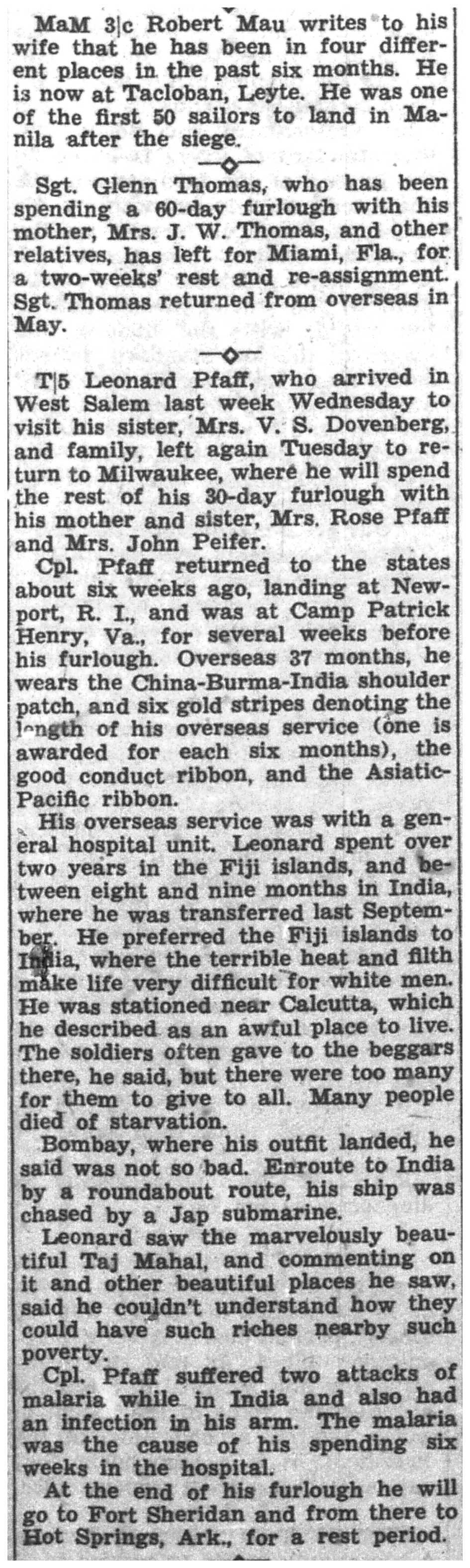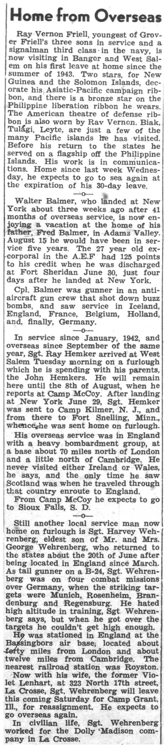 | 1945-7-30 | La Crosse Tribune p3 |