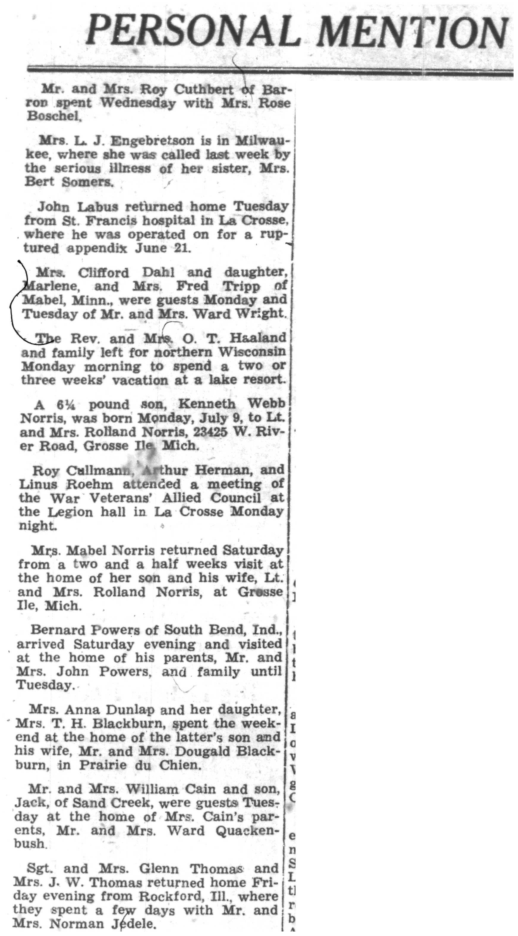 | 1945-7-10 | La Crosse Tribune p5 | |