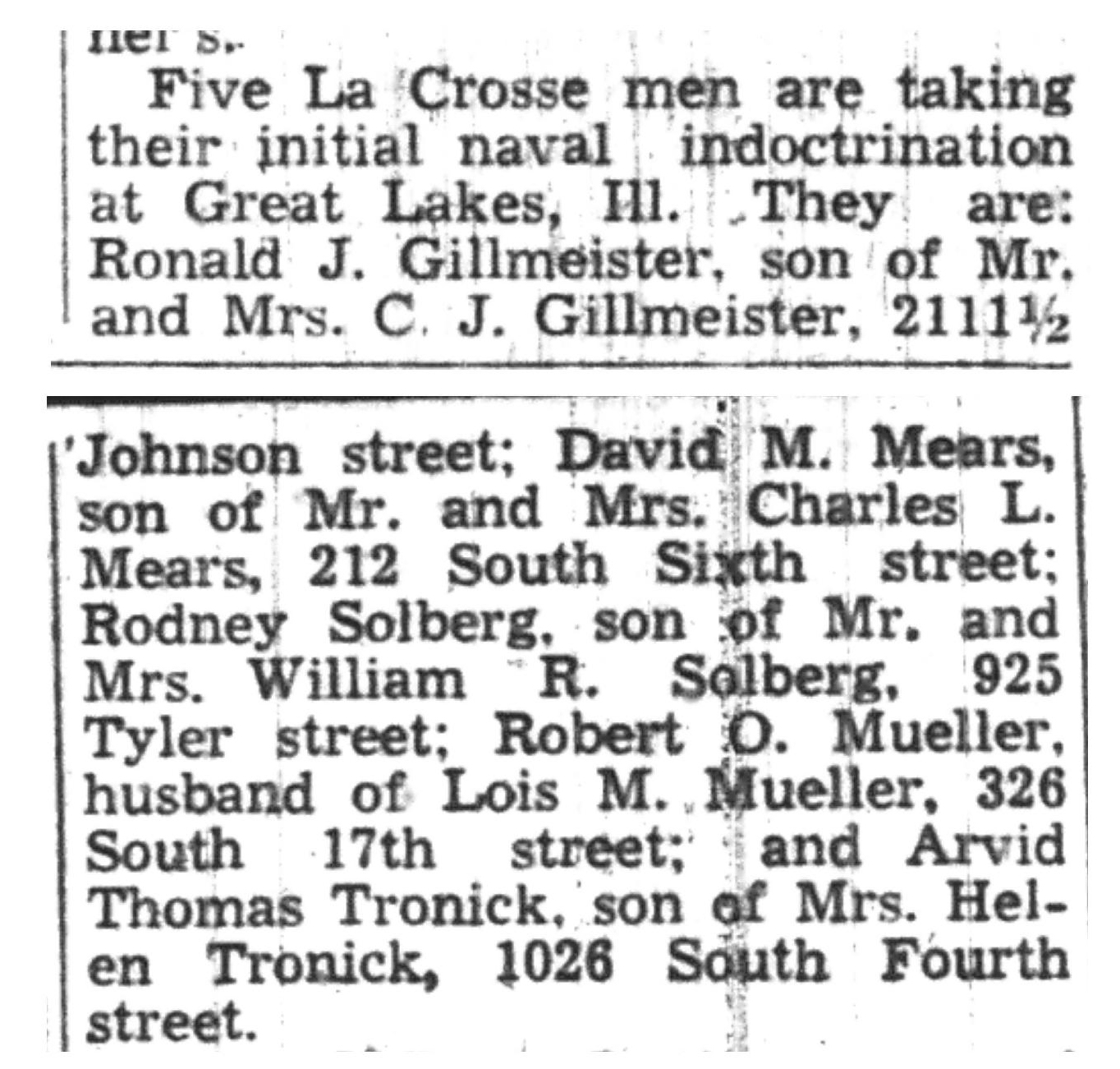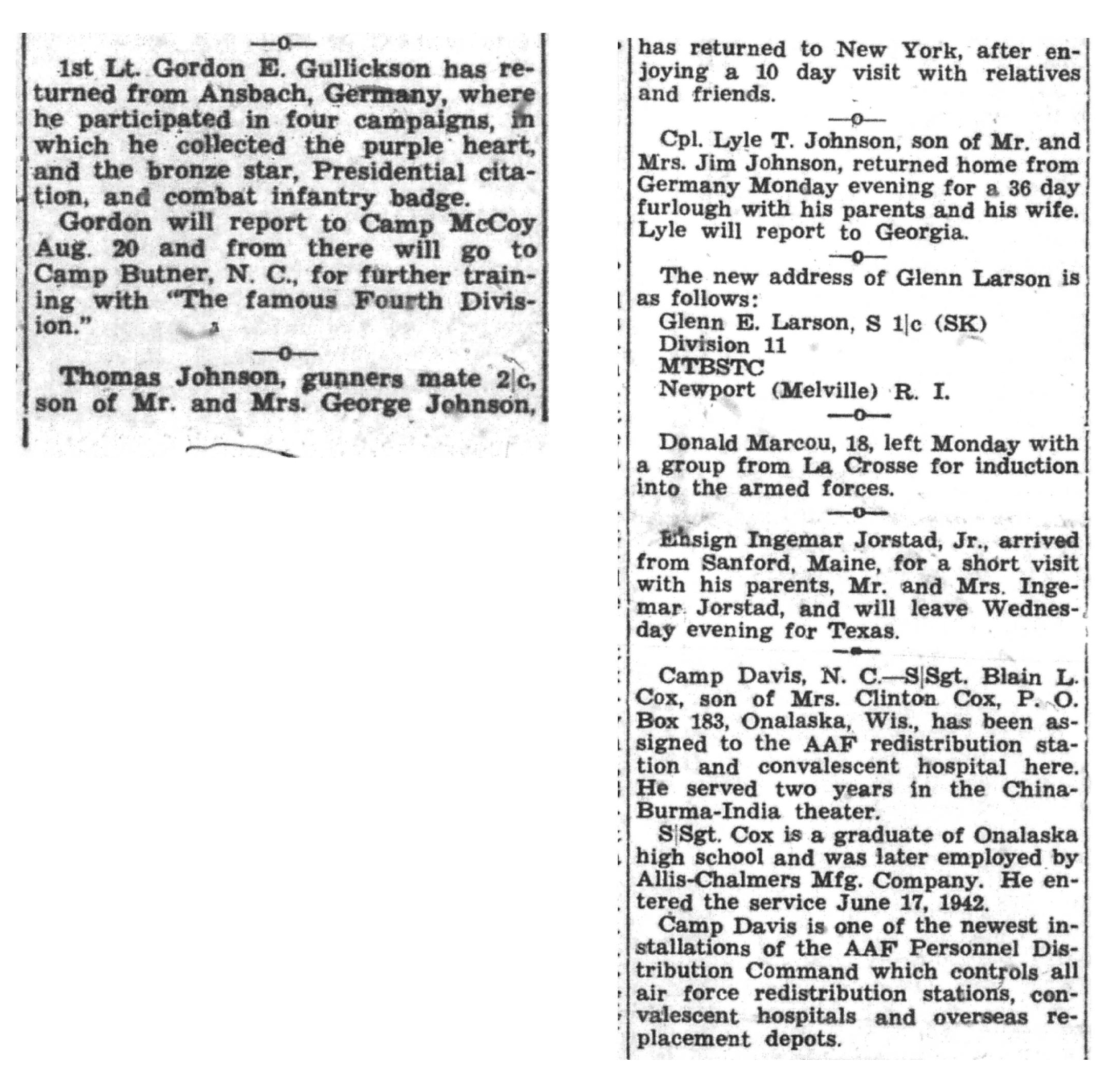 | 1945-7-29 | La Crosse Tribune p5 |
