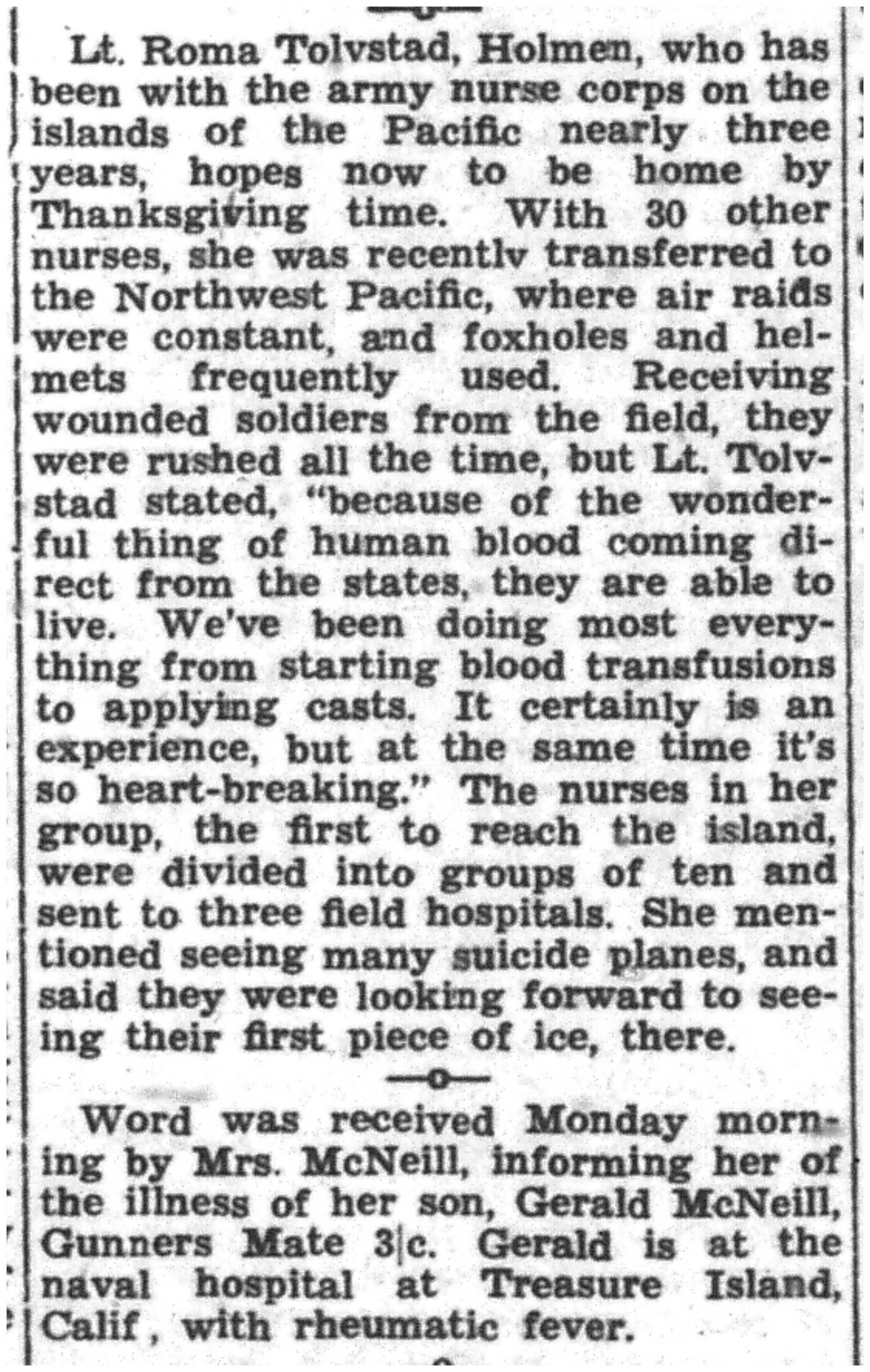 | 1945-7-9 | La Crosse Tribune p5 | |