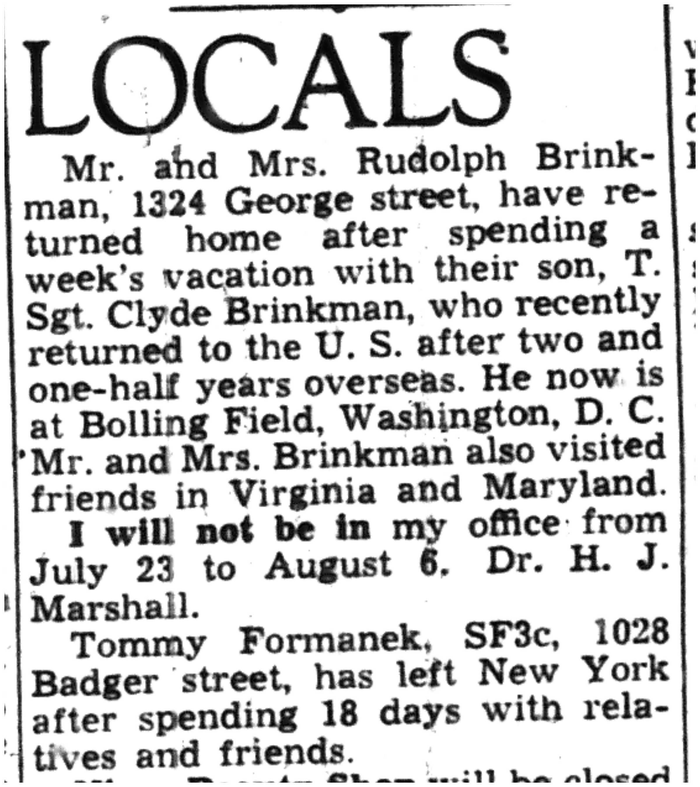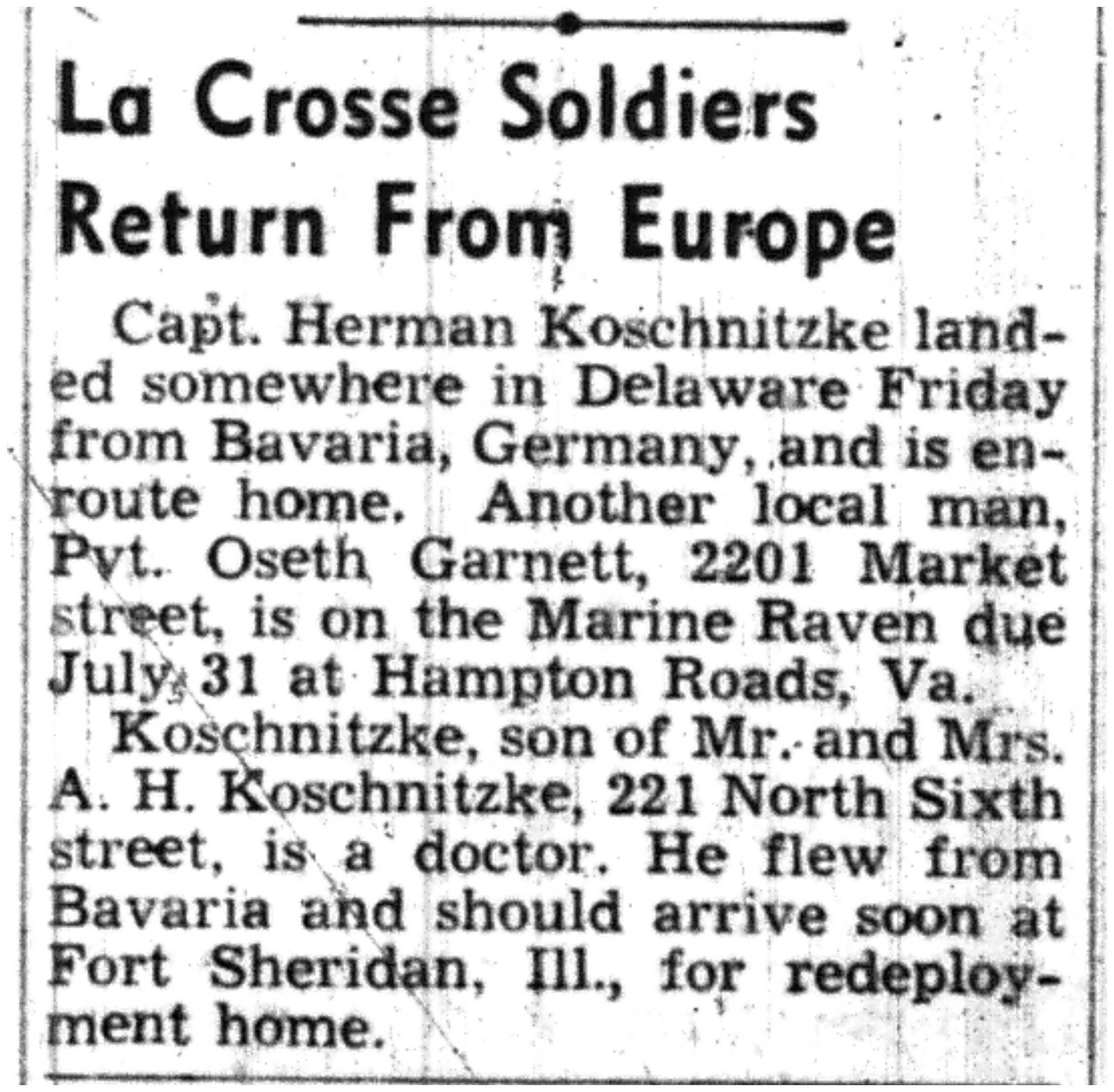 | 1945-7-22 | La Crosse Tribune p10 | |