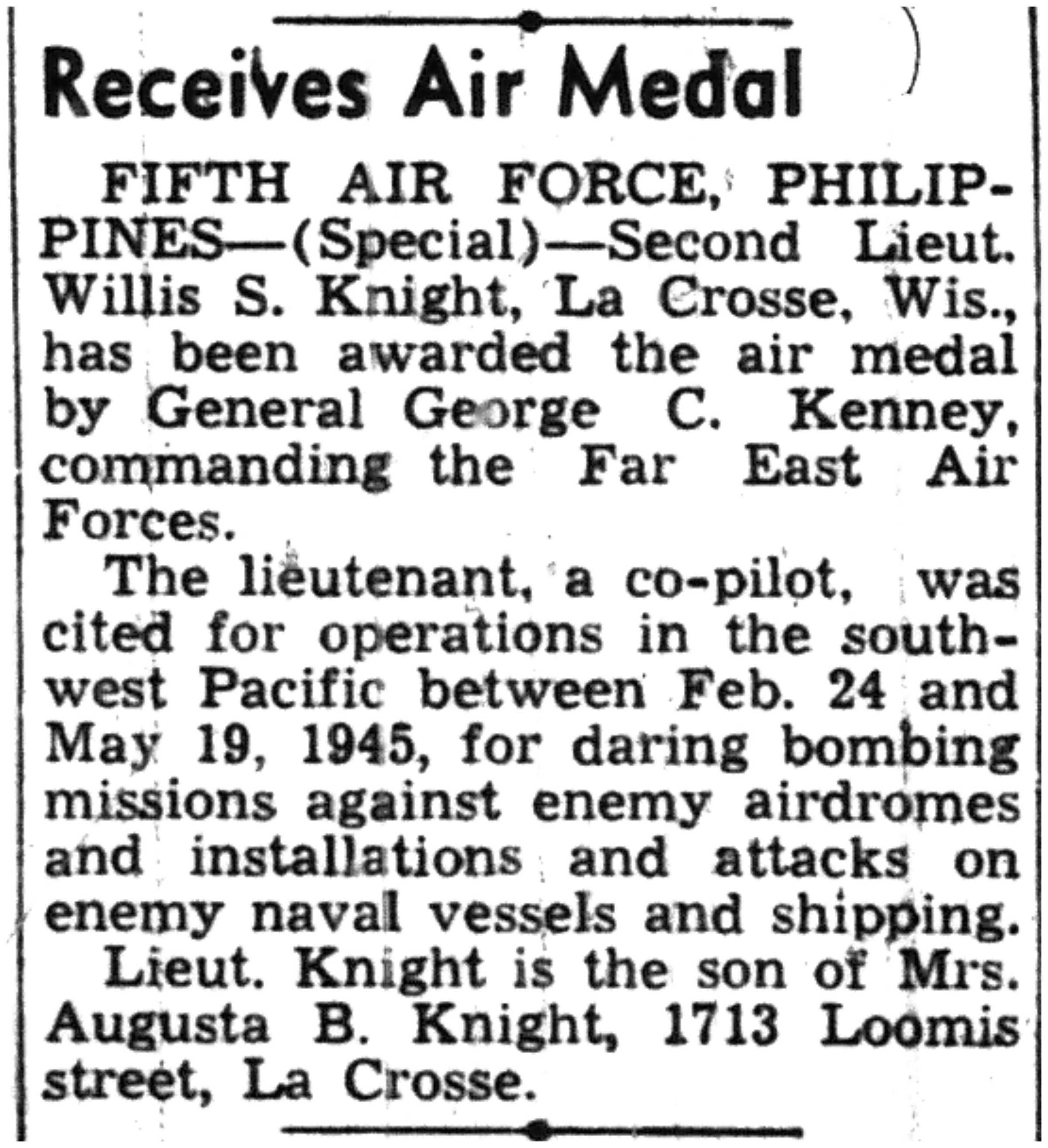 | 1945-7-29 | La Crosse Tribune p9 |