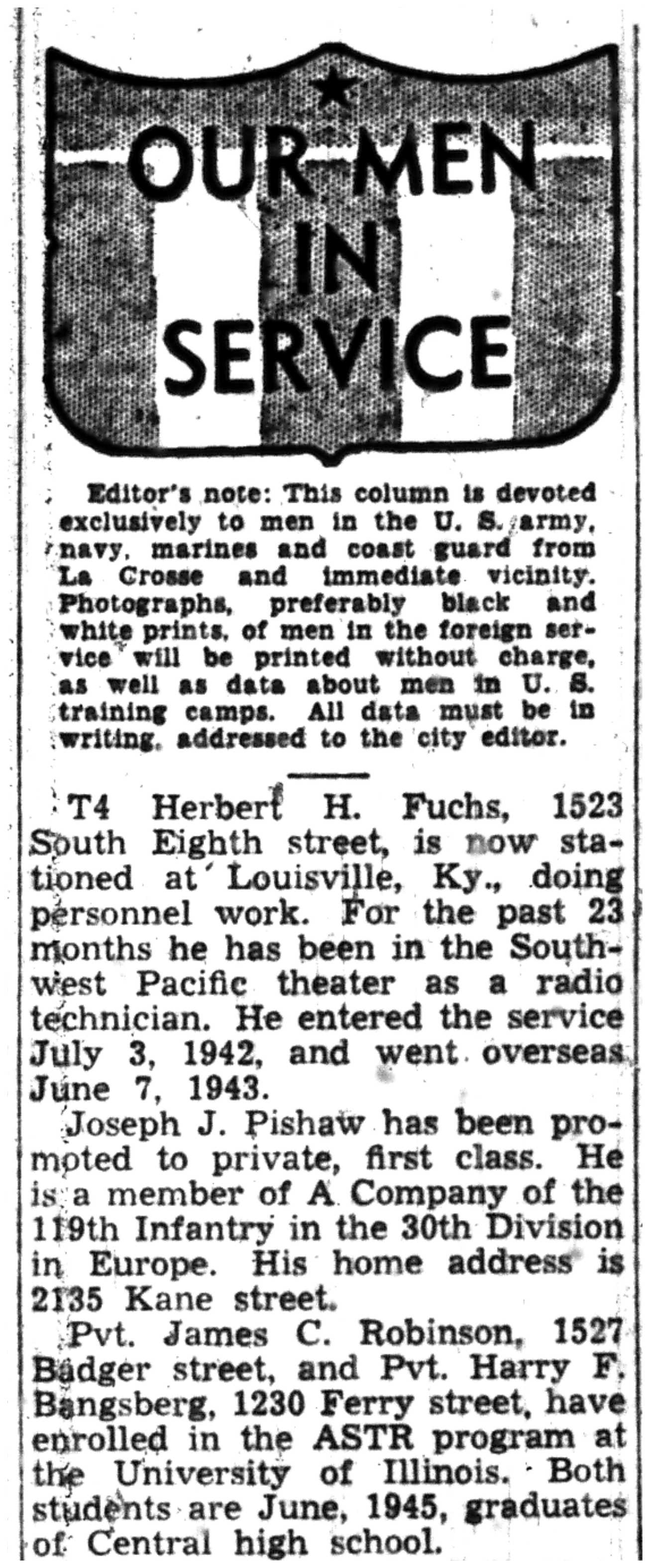 | 1945-7-1 | La Crosse Tribune p5 | |