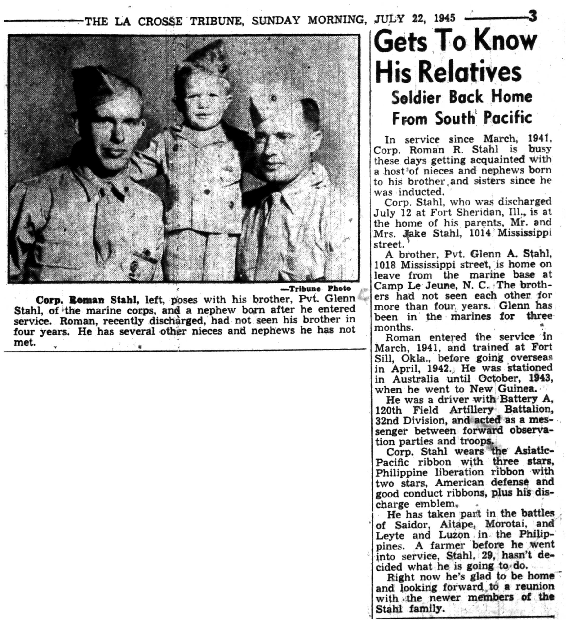 | 1945-7-25 | La Crosse Tribune p3 | |