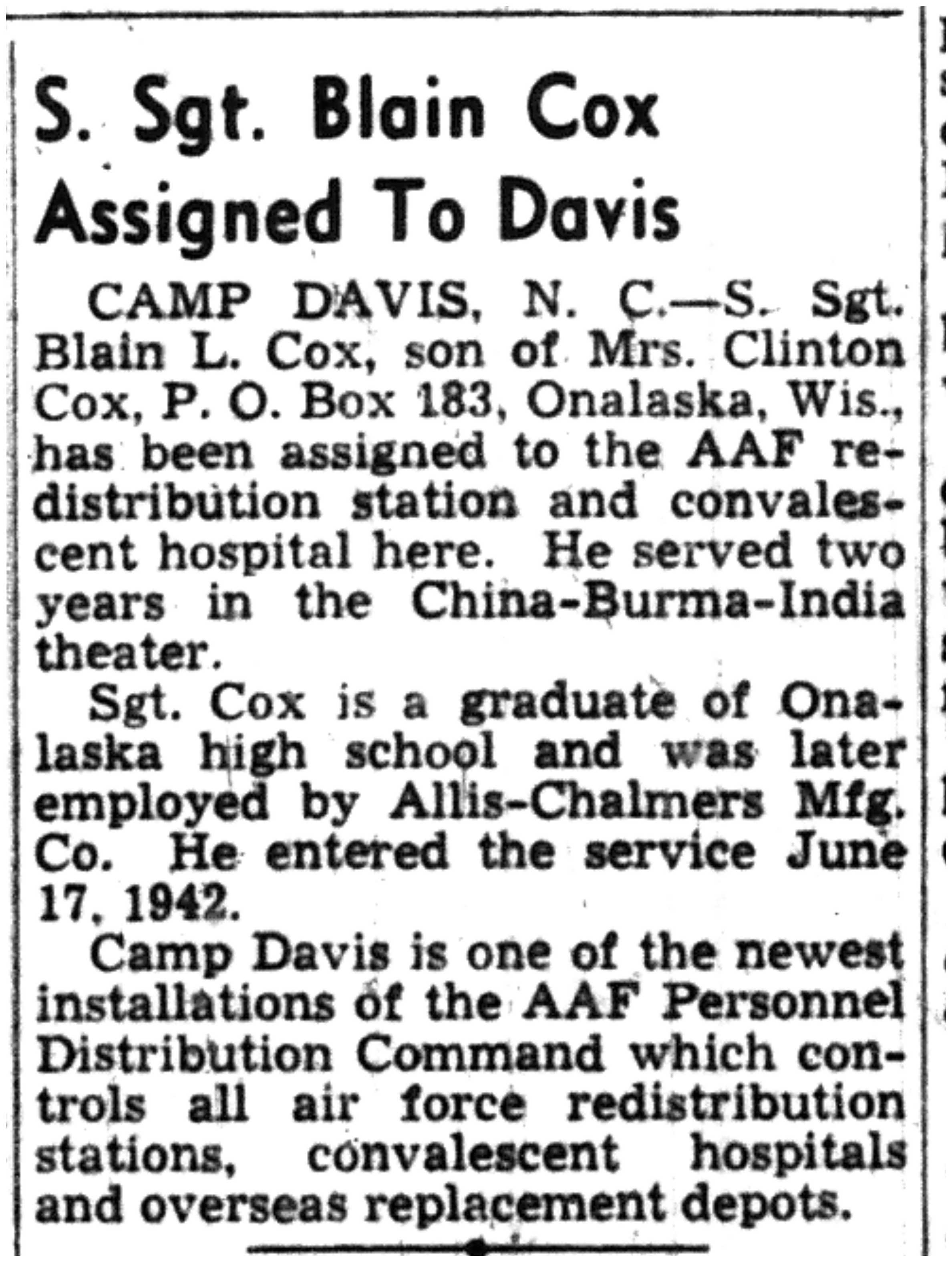 | 1945-7-22 | La Crosse Tribune p12 | |