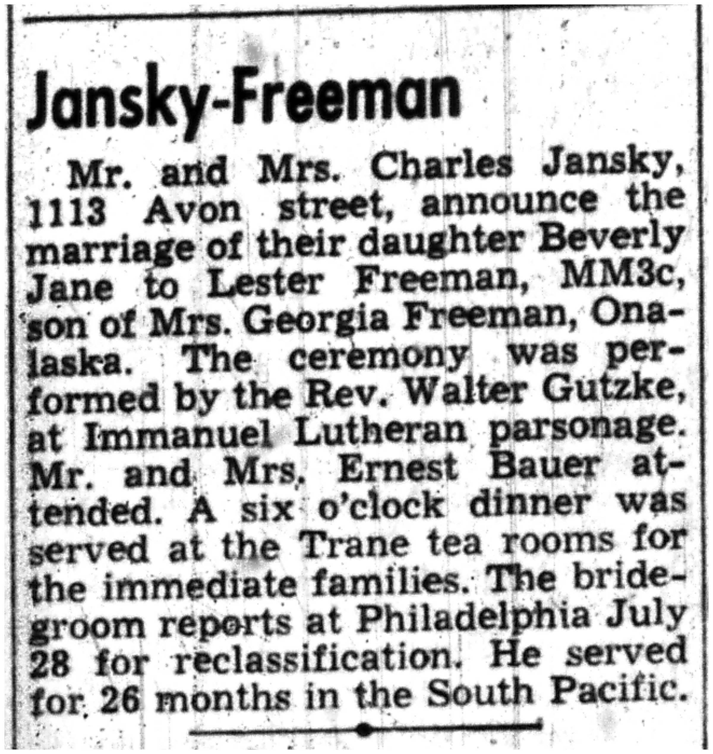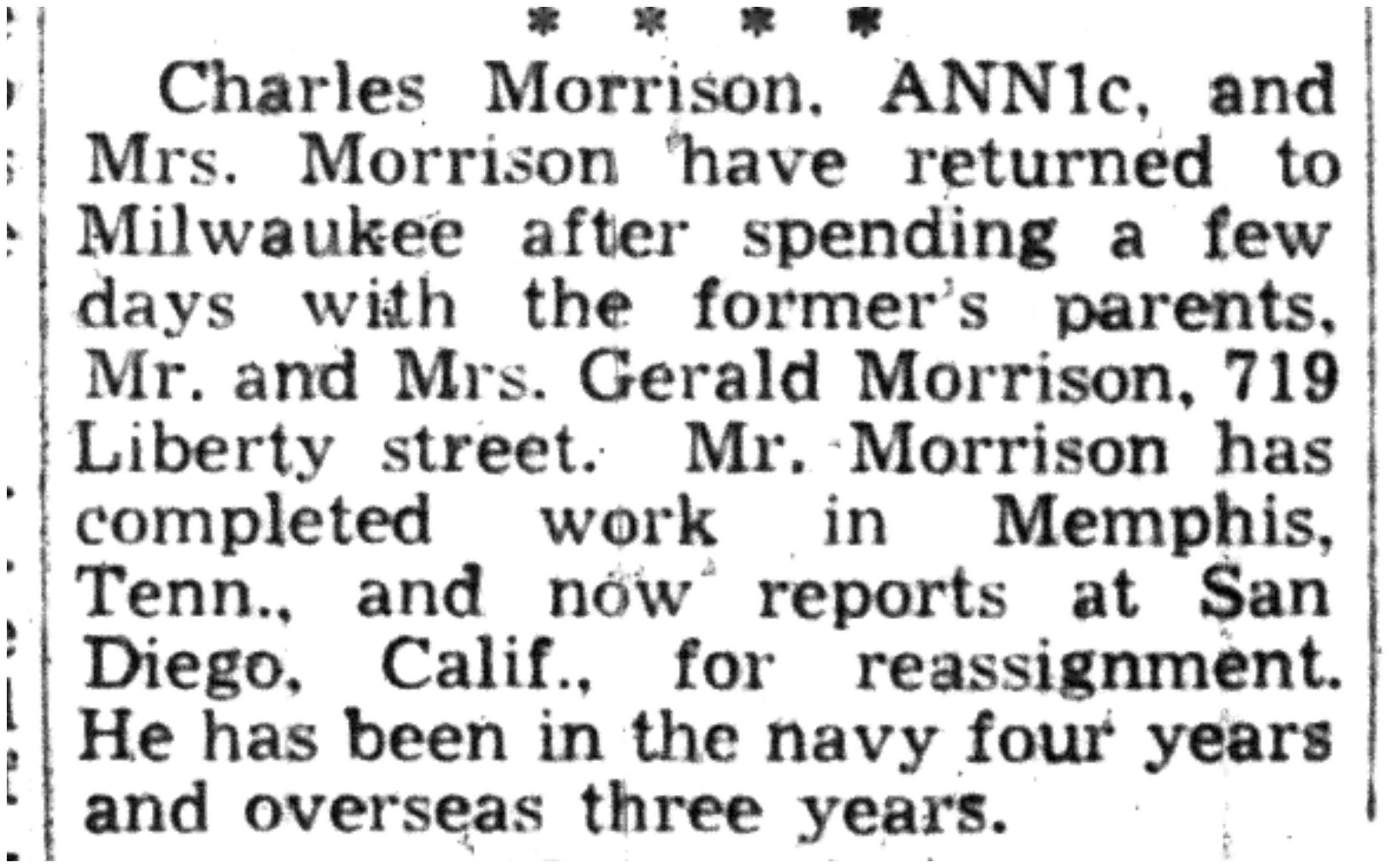 | 1945-7-26 | La Crosse Tribune p15 | |