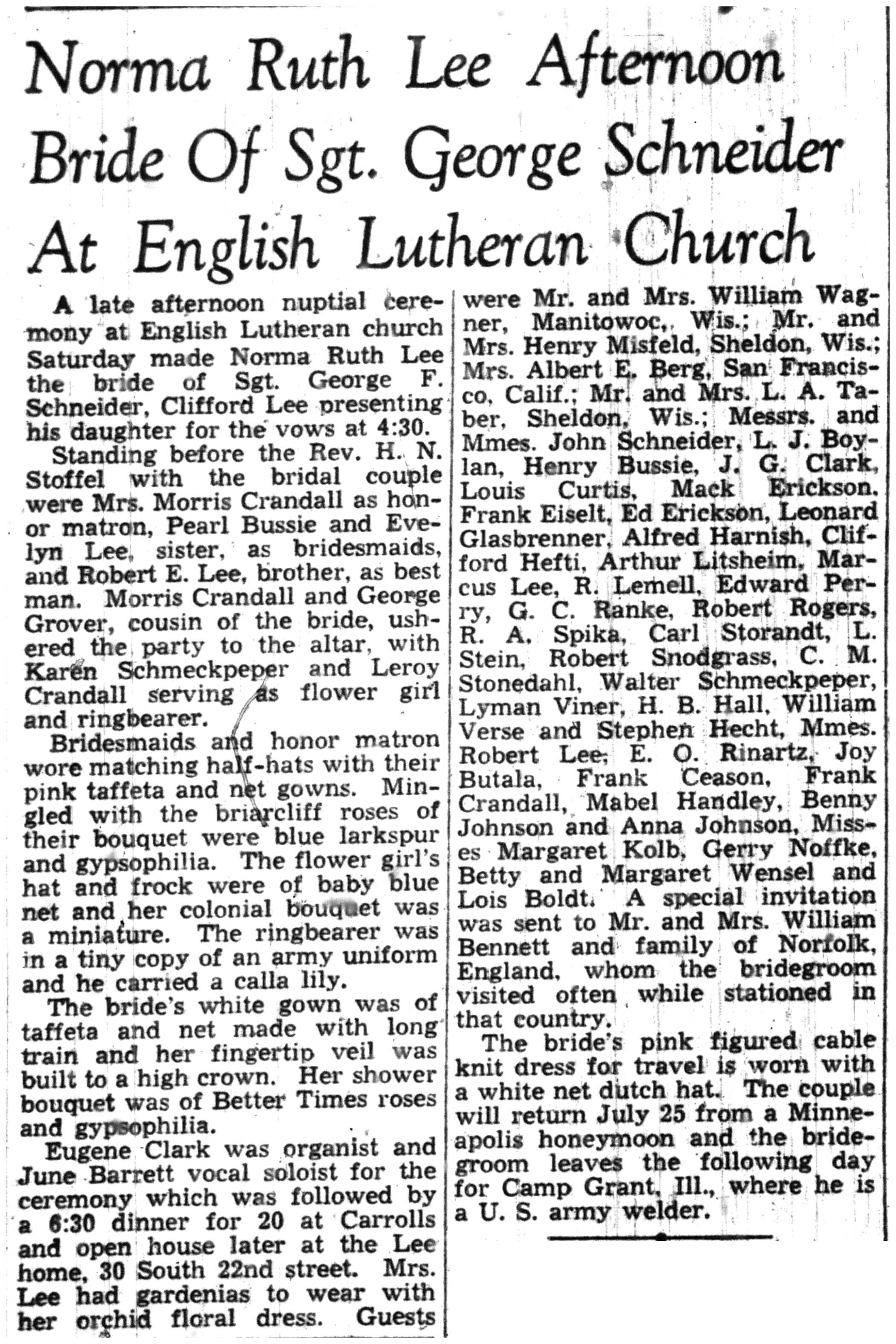 | 1945-7-19 | La Crosse Tribune p12 | |