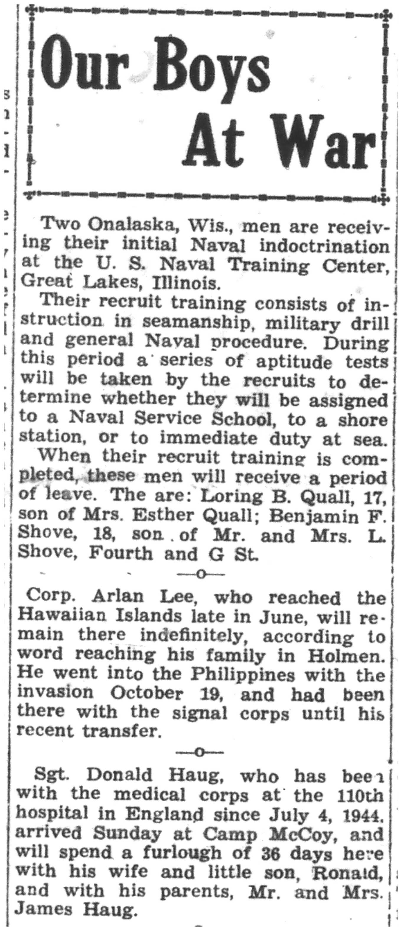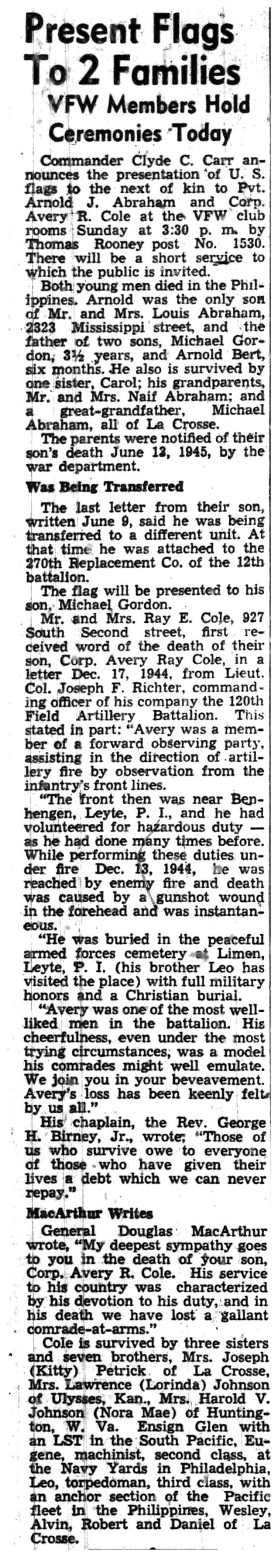 | 1945-7-28 | La Crosse Tribune p7 |