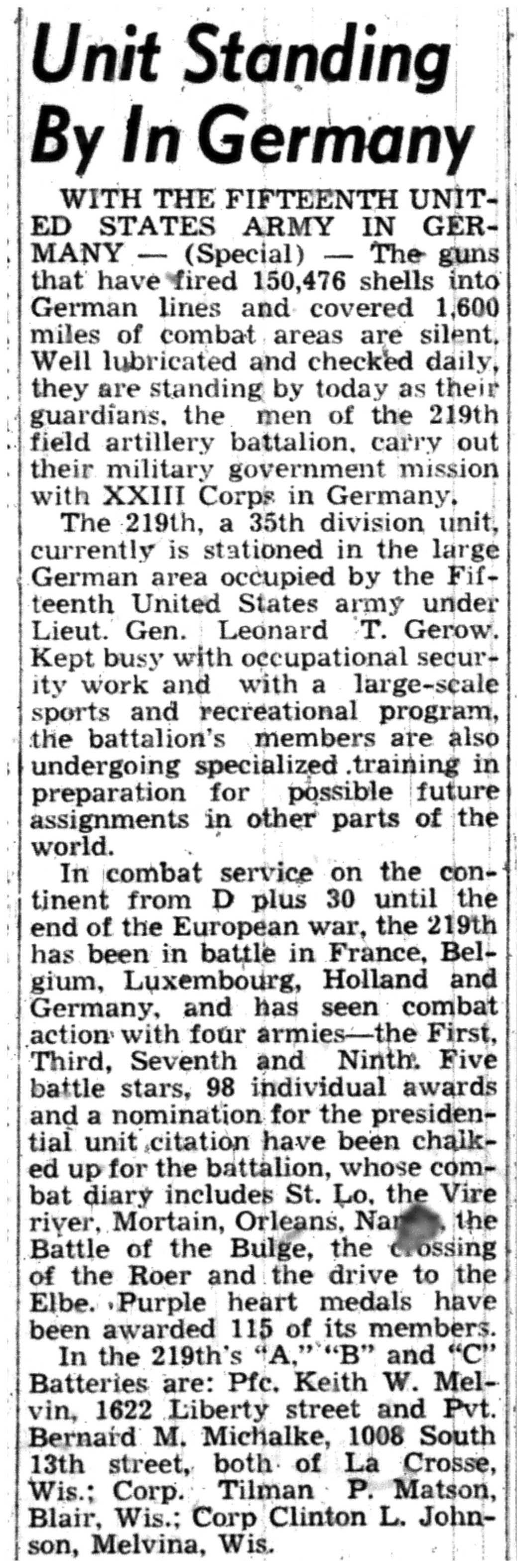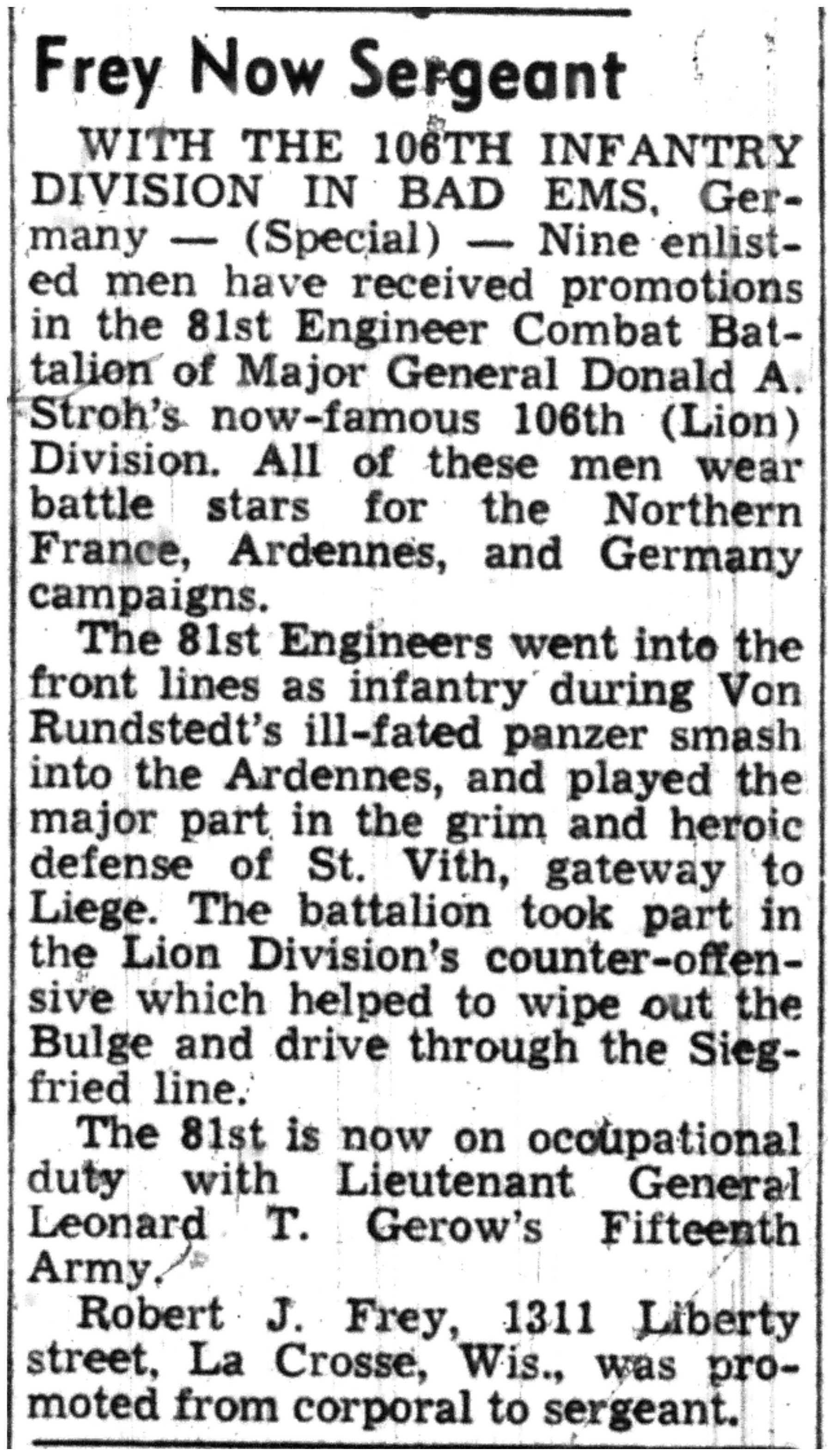 | 1945-7-12 | La Crosse Tribune p13 | |