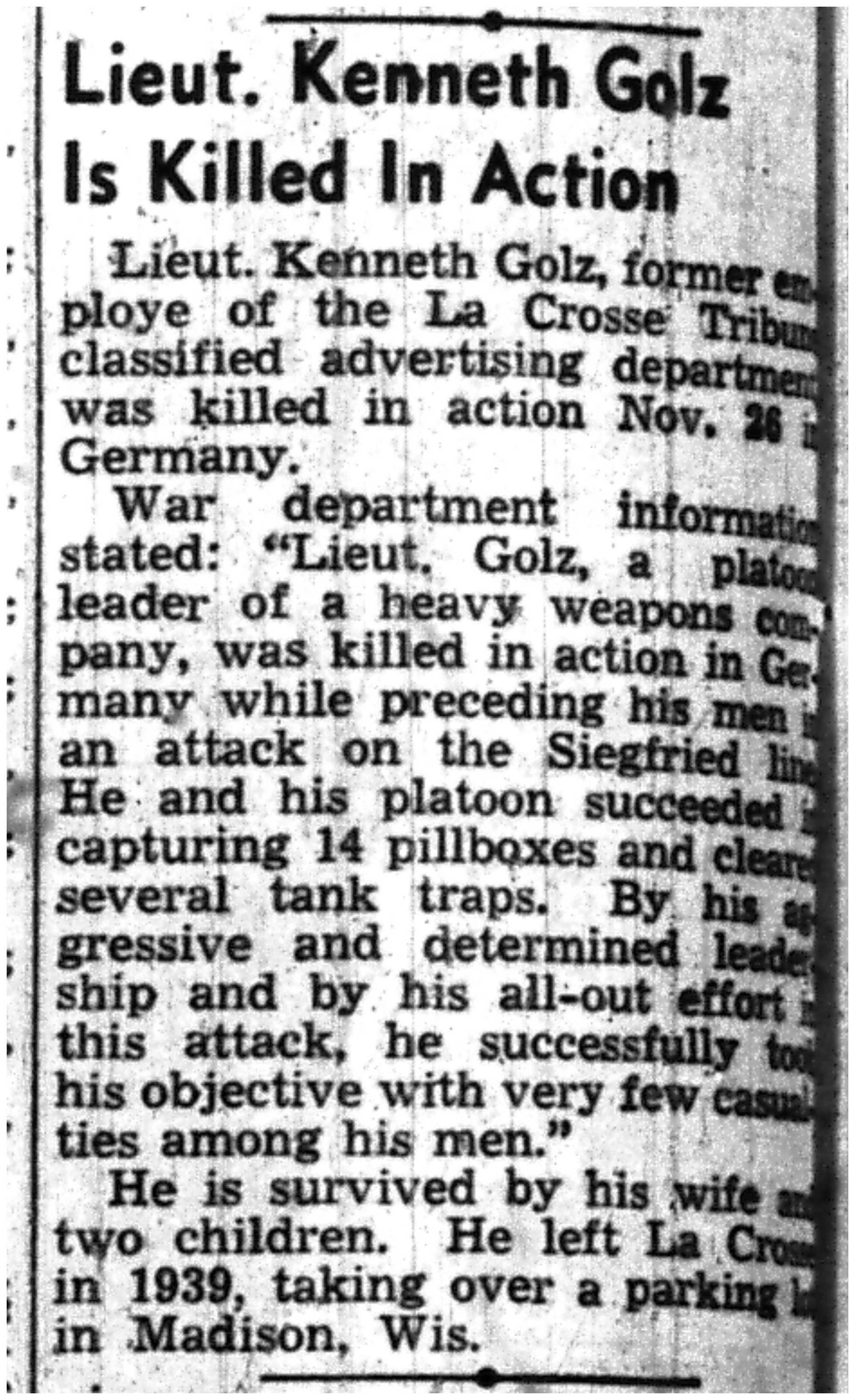 | 1945-7-12 | La Crosse Tribune p11 | |