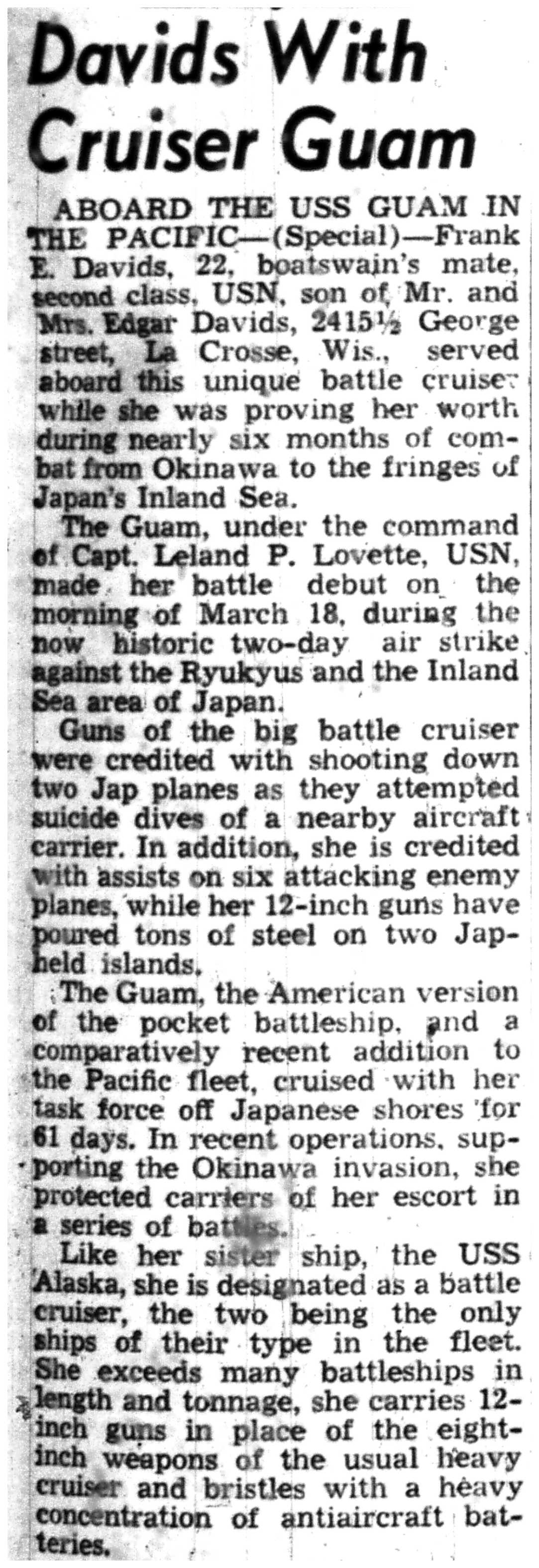 | 1945-7-30 | La Crosse Tribune p1 | |