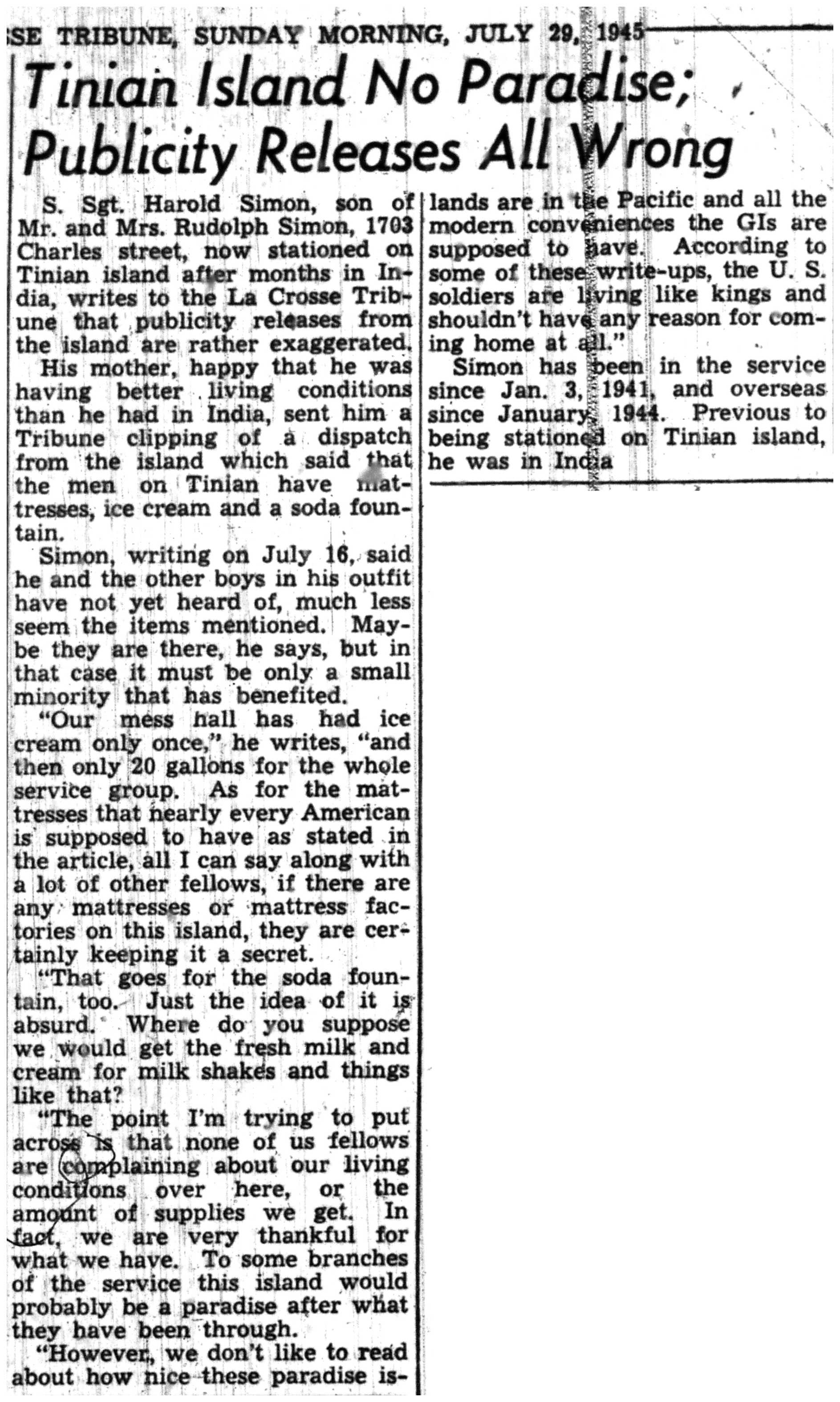 | 1945-7-29 | La Crosse Tribune p3 | |