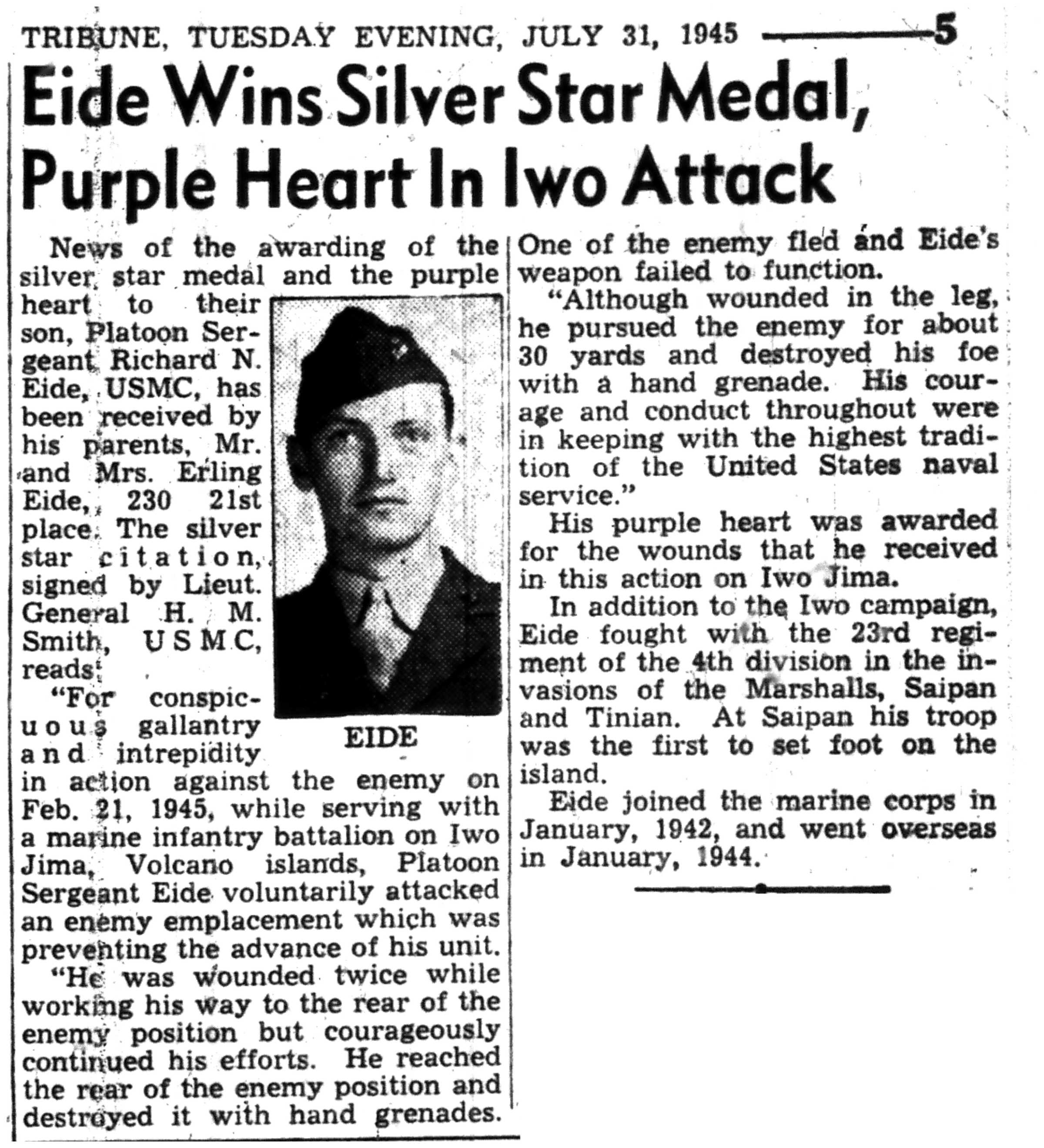 | 1945-7-31 | La Crosse Tribune p5 | |