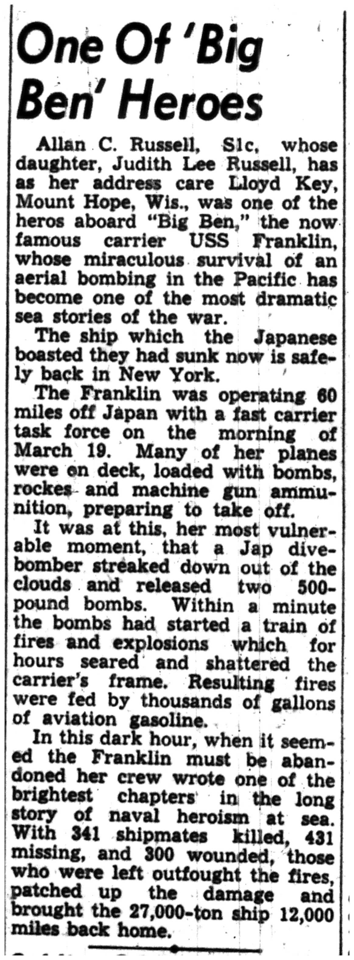| 1945-6-4 | La Crosse Tribune p7 | |