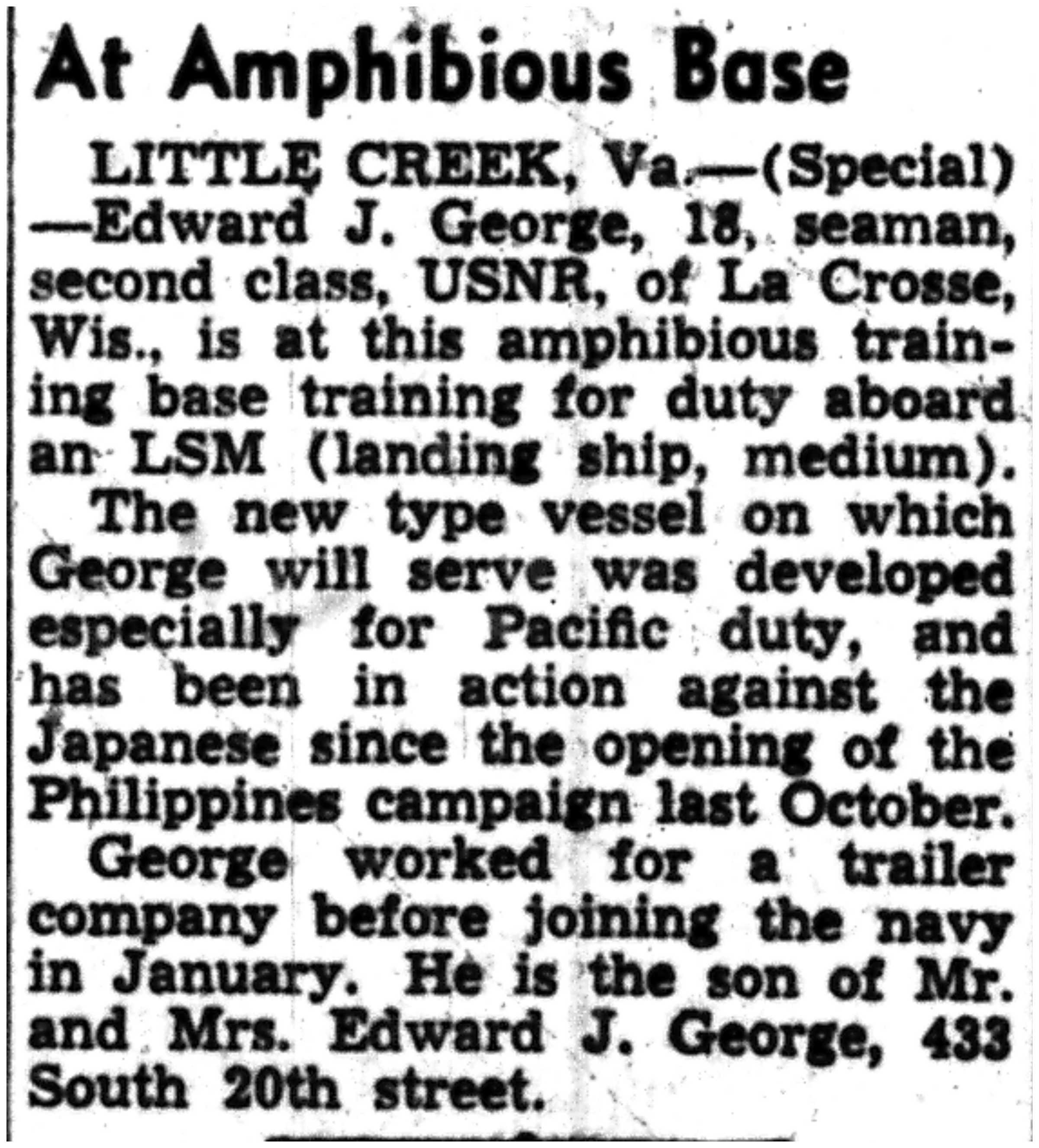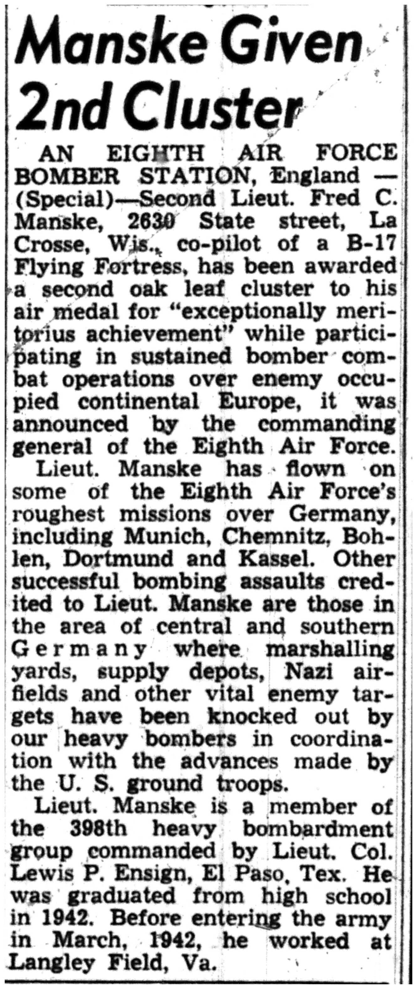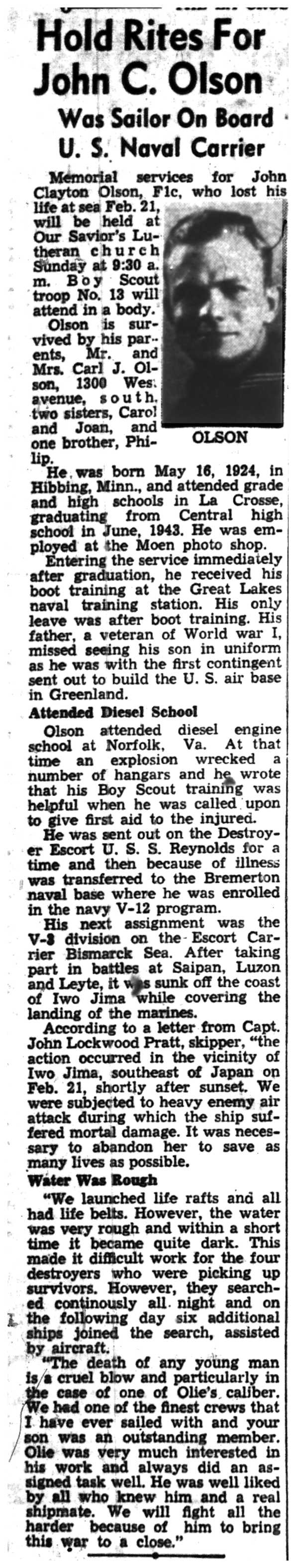 | 1945-6-4 | La Crosse Tribune p7 | |