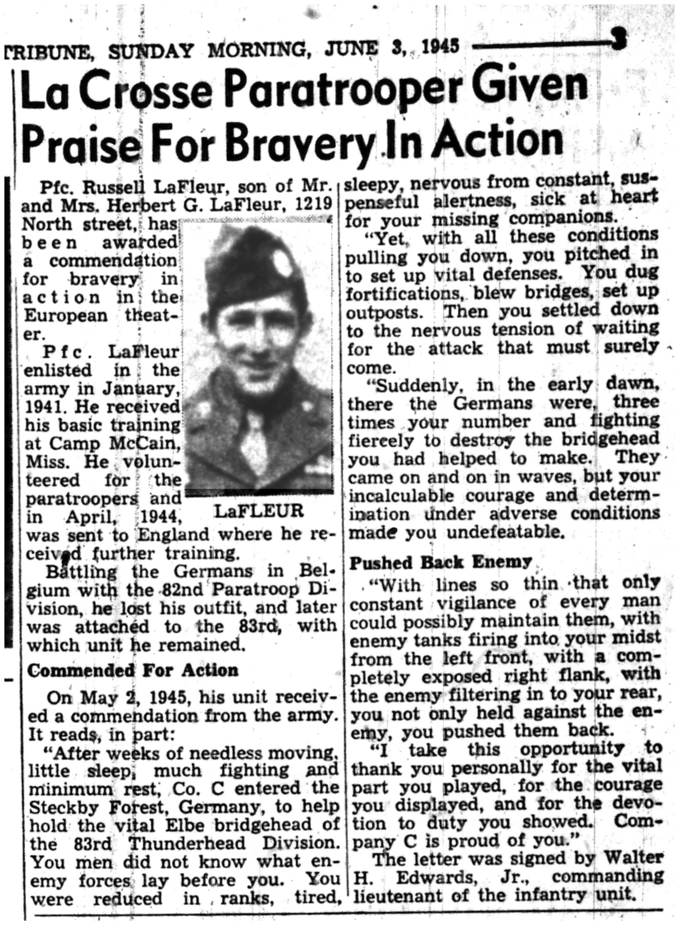 | 1945-6-3 | La Crosse Tribune p3 | |