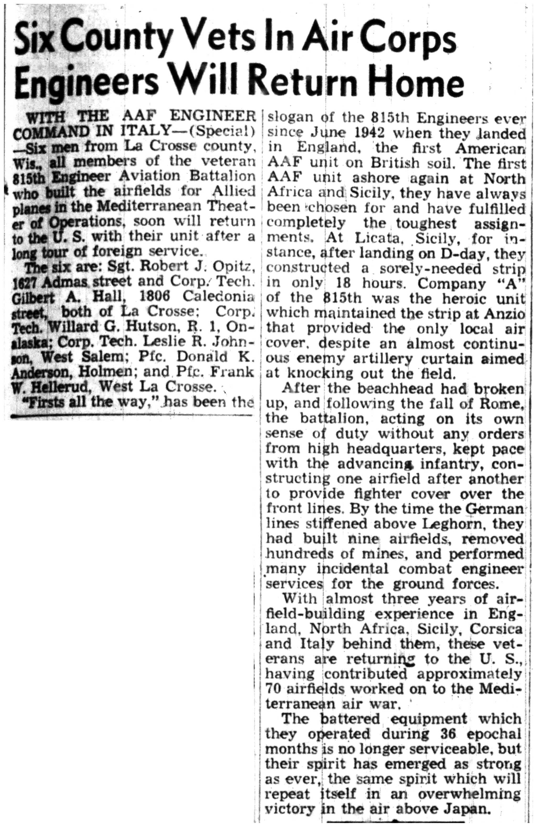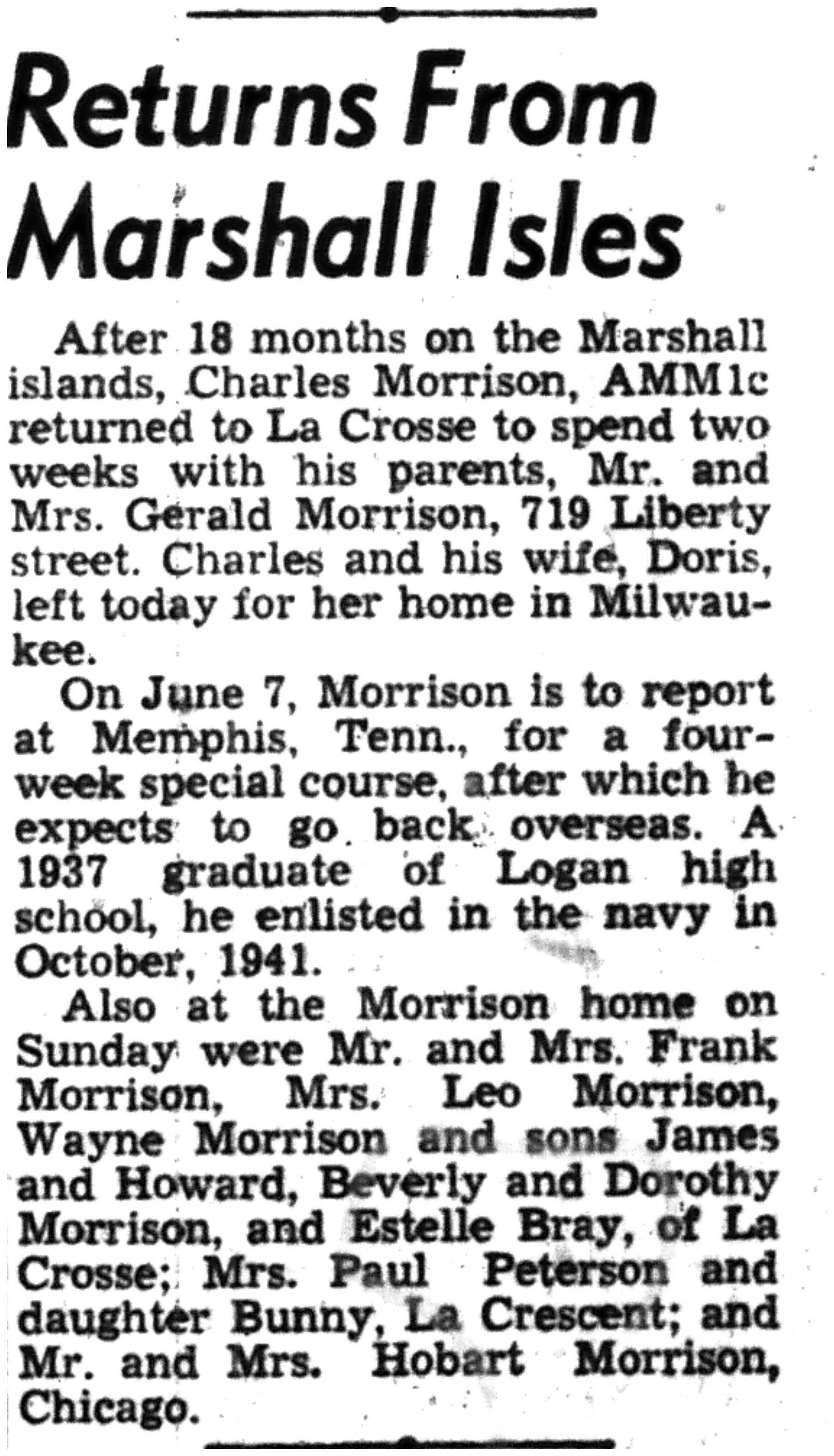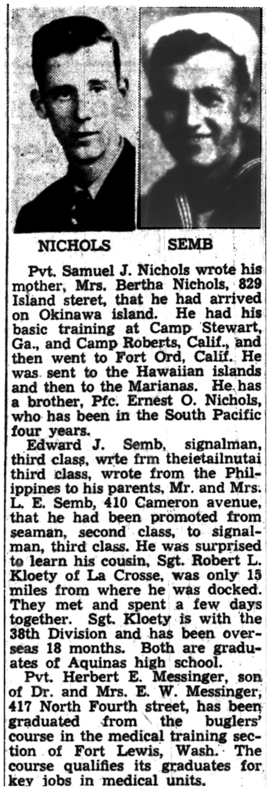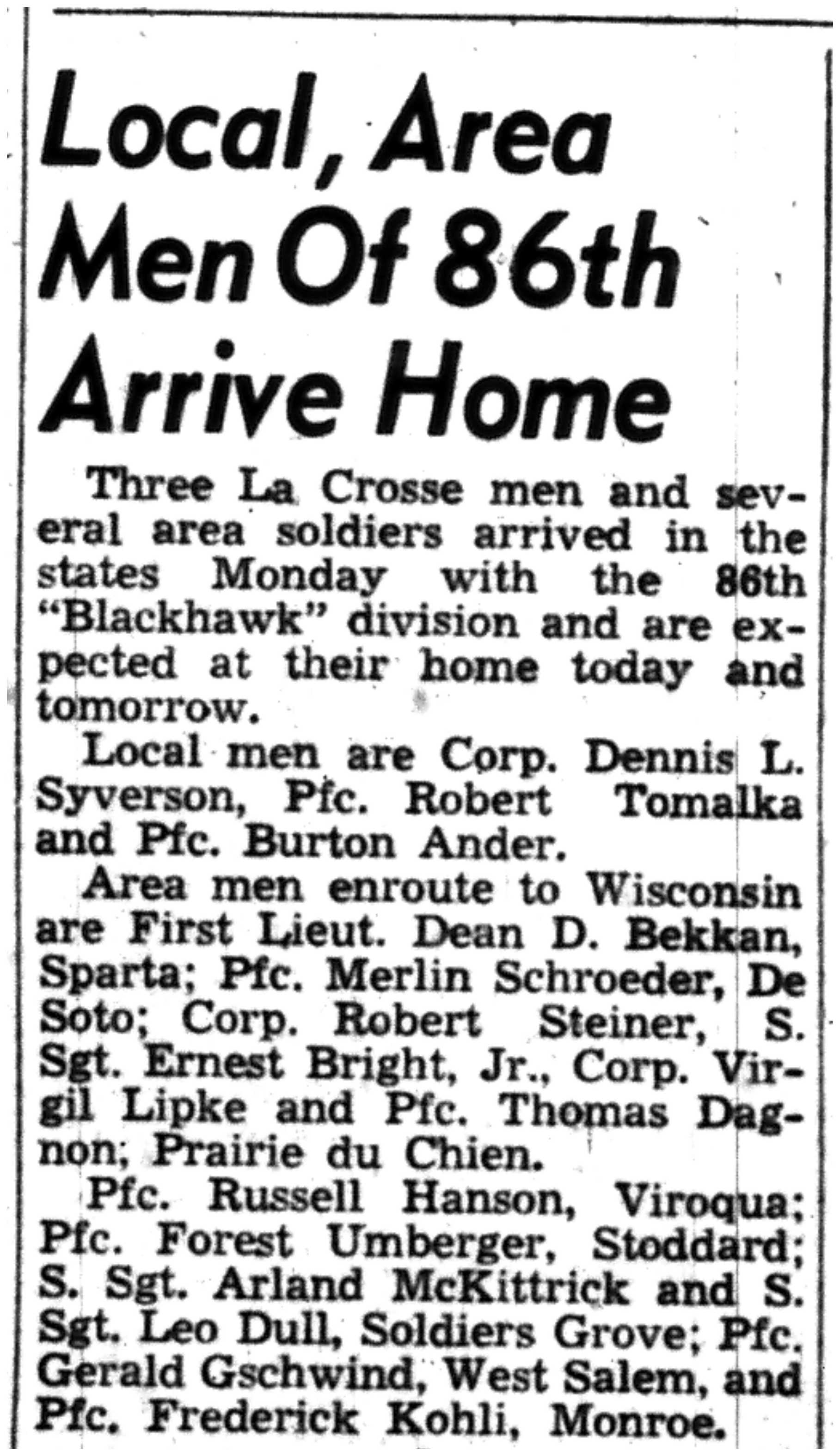 | 1945-6-8 | La Crosse Tribune p7 | |