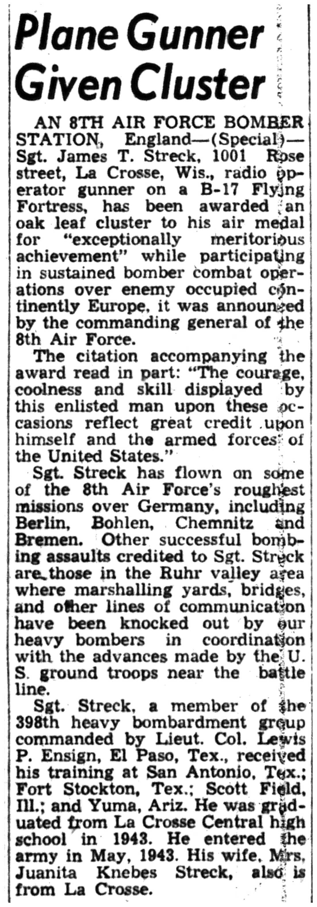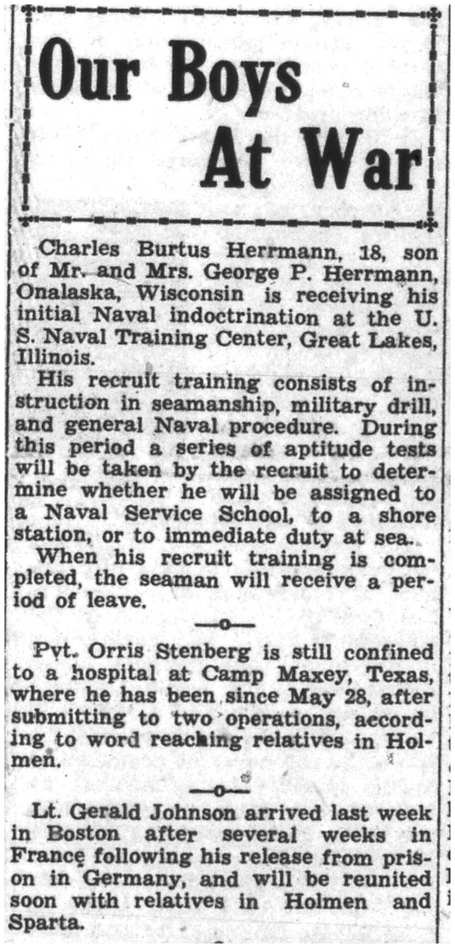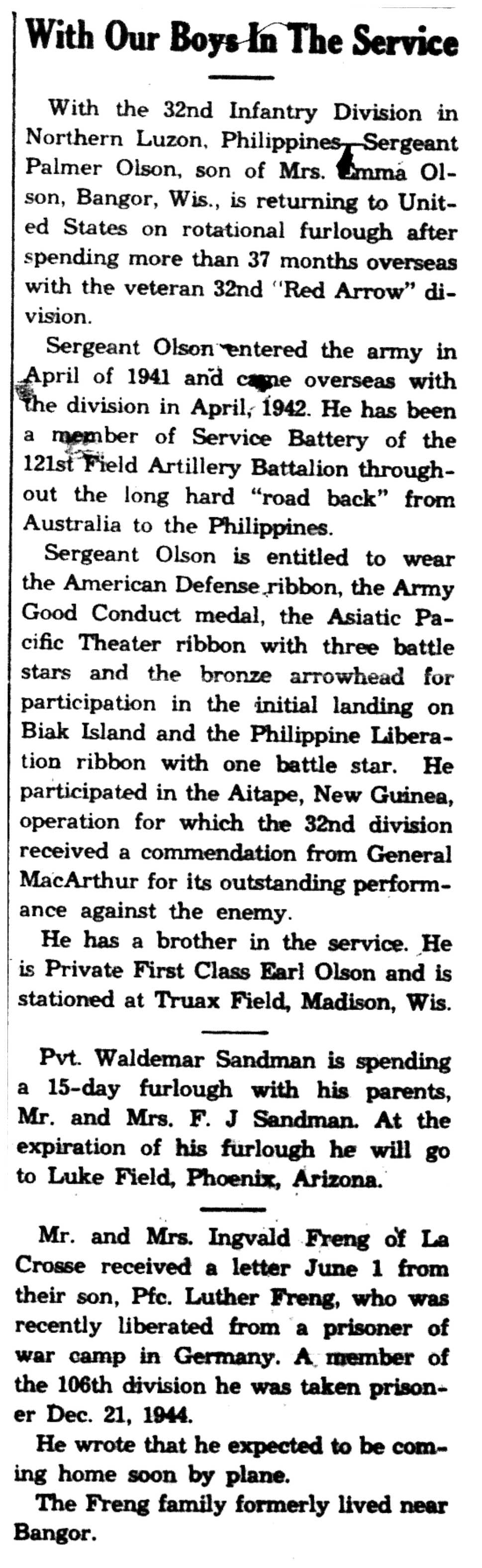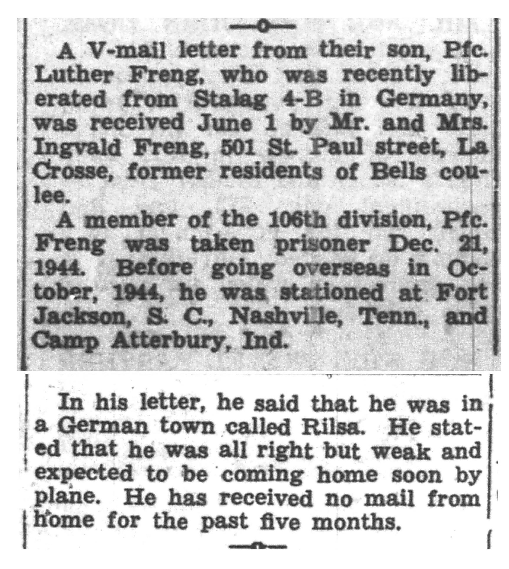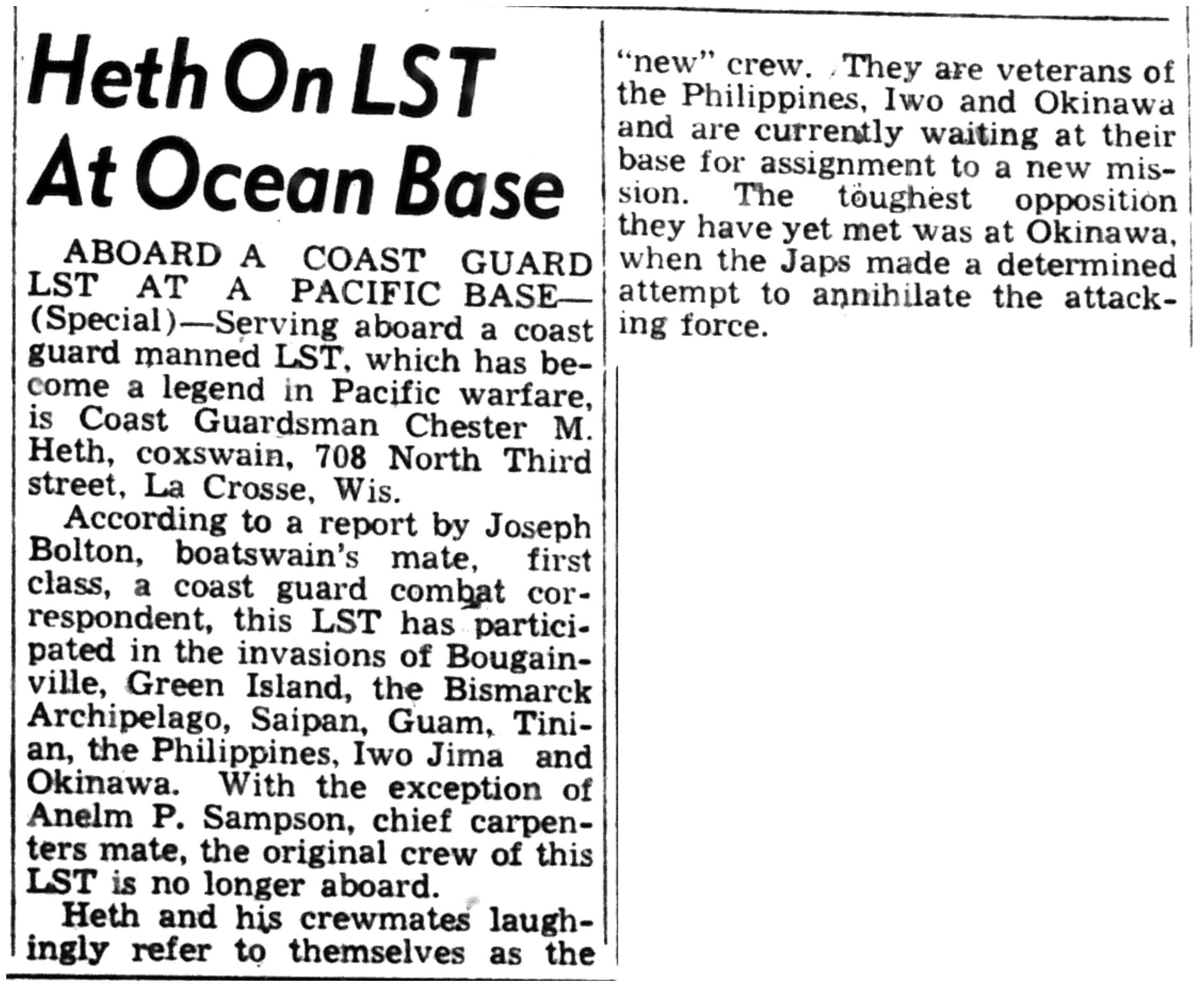 | 1945-6-8 | La Crosse Tribune p7 | |