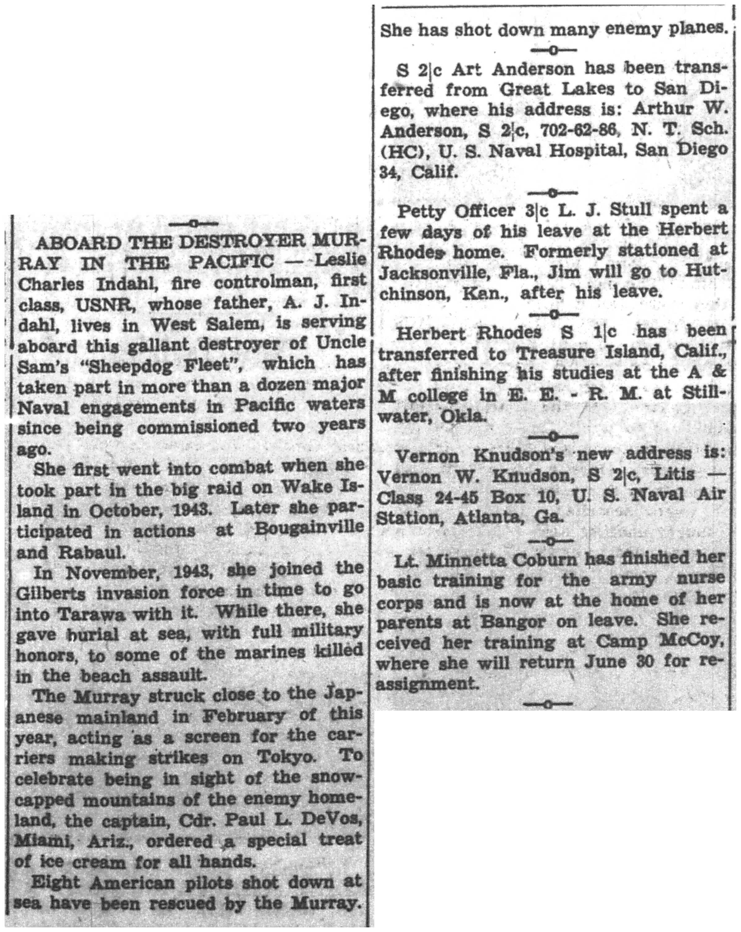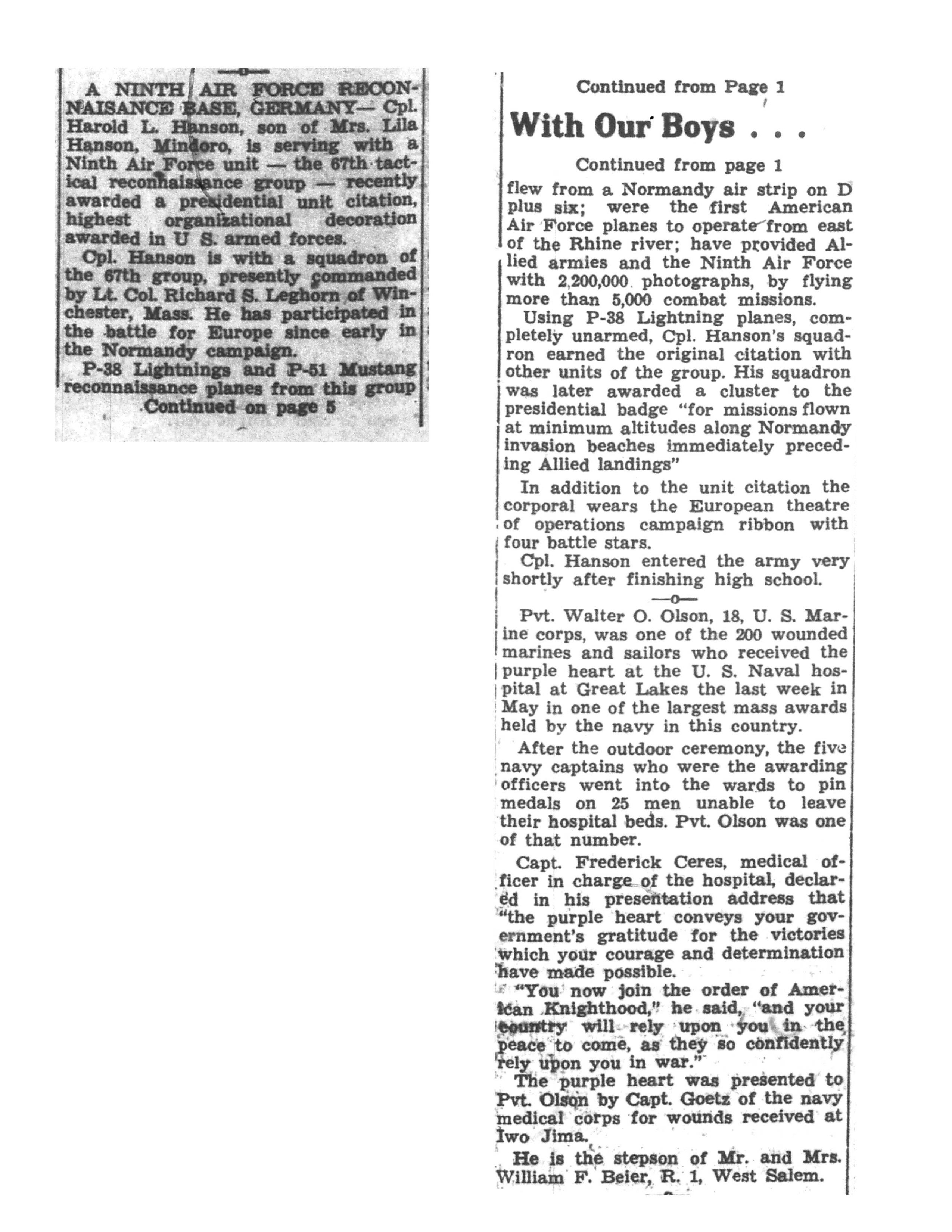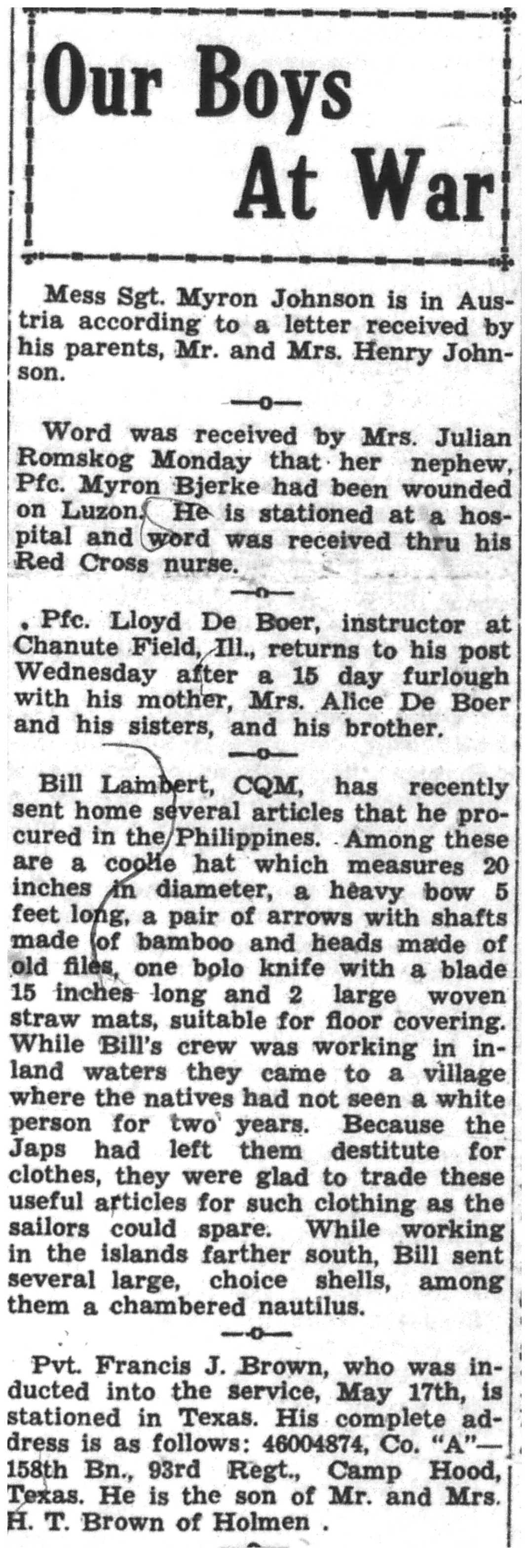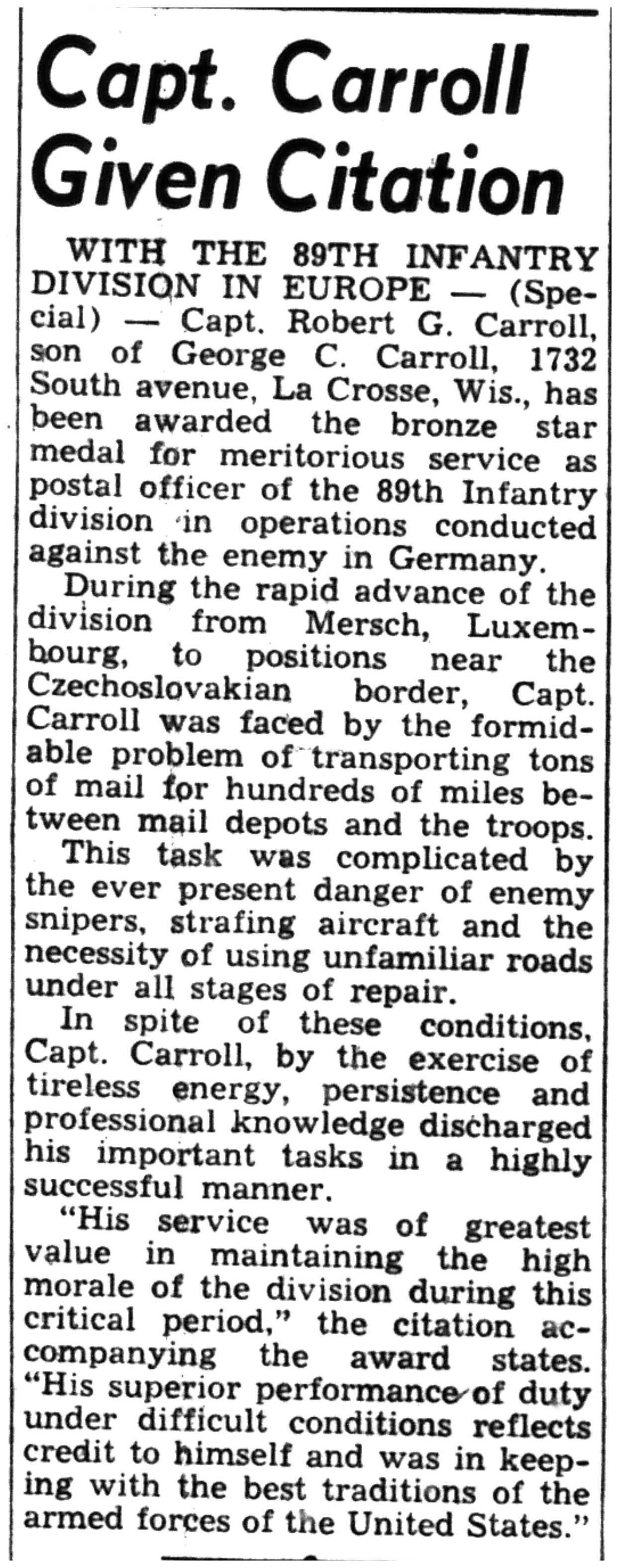 | 1945-6-8 | La Crosse Tribune p7 | |