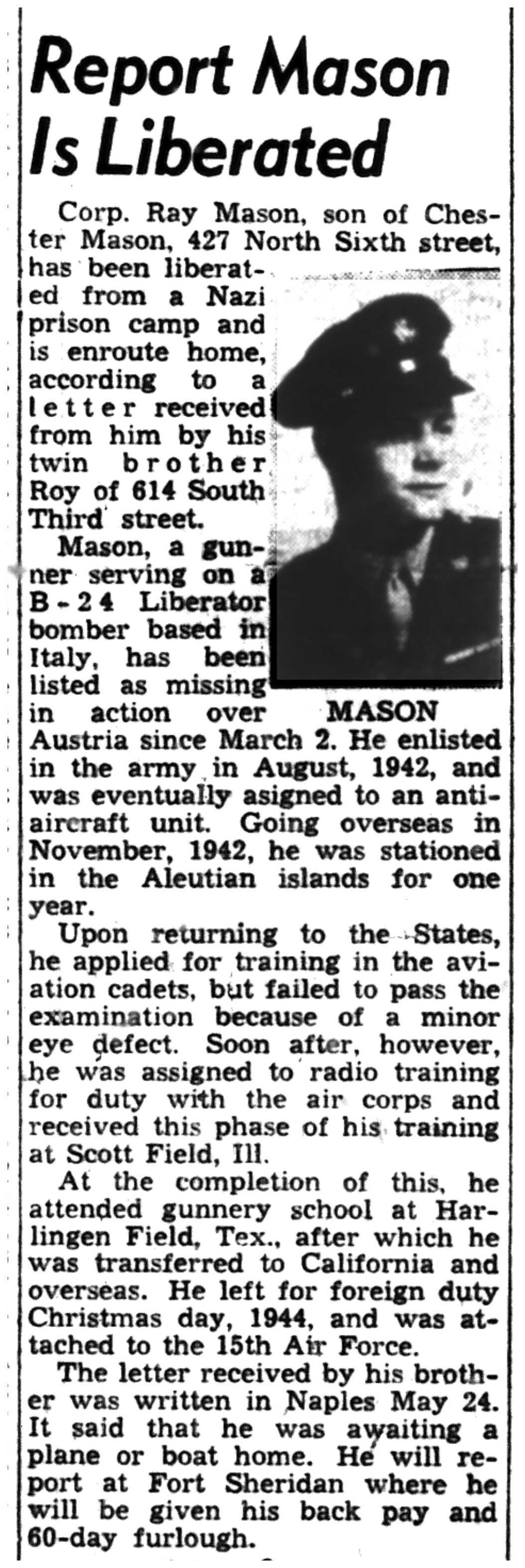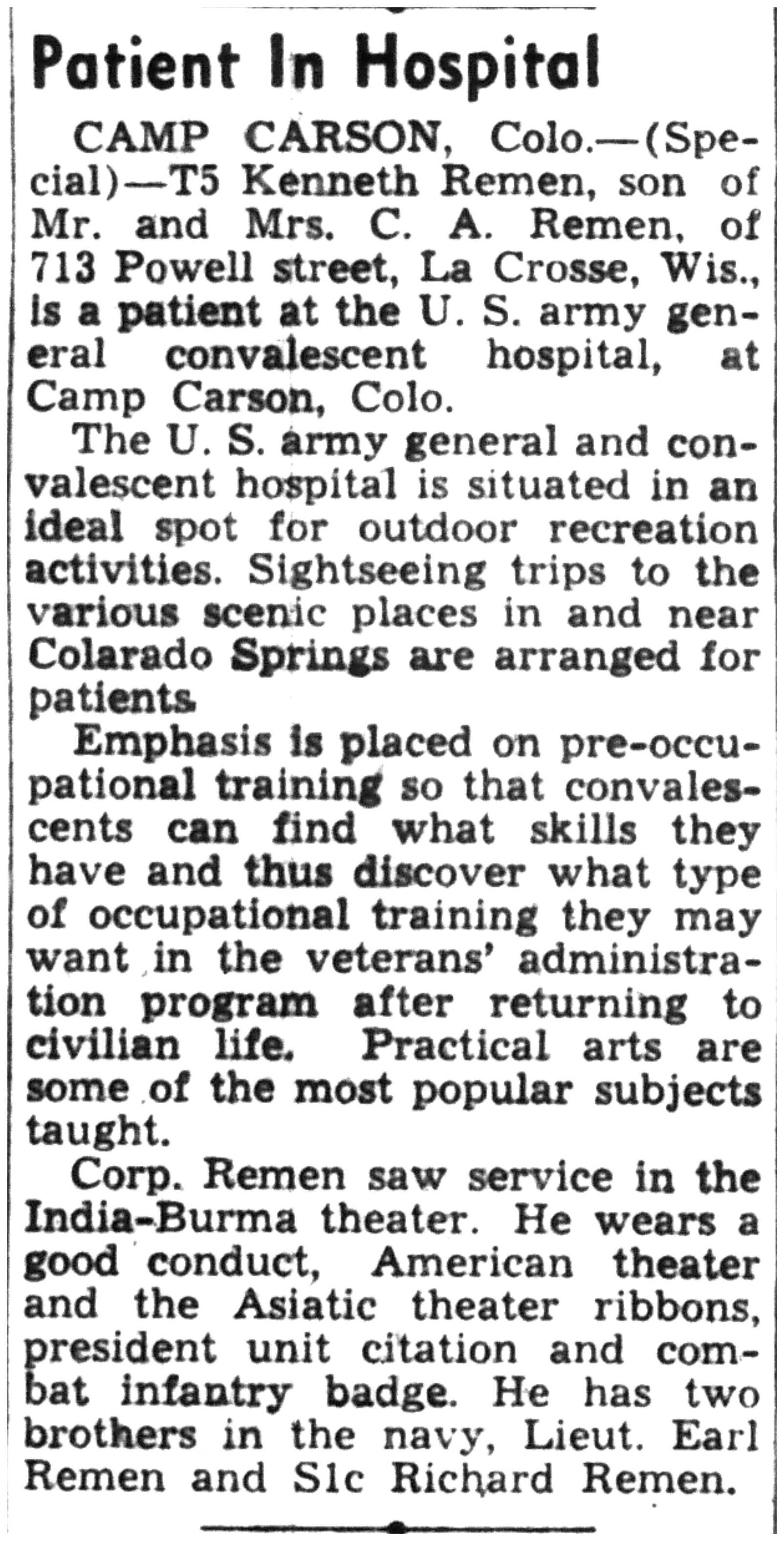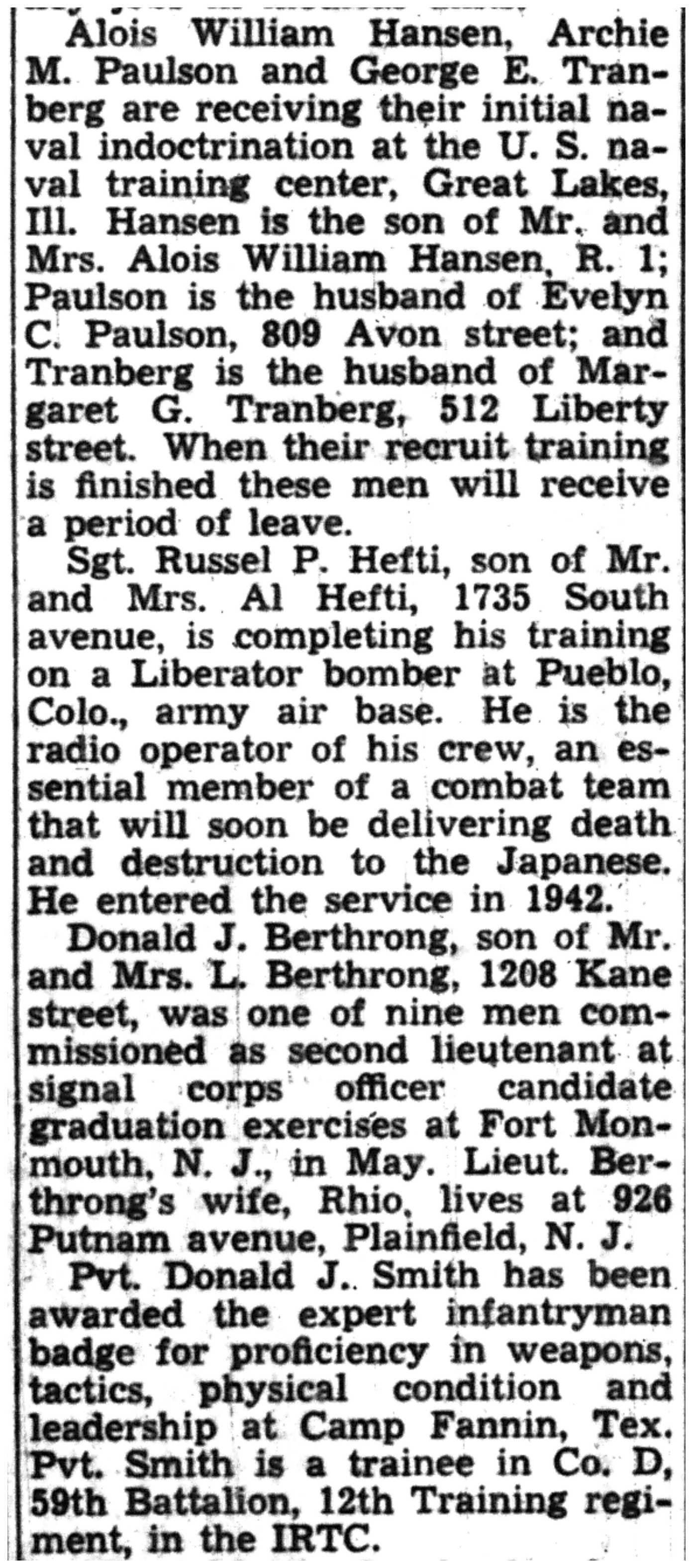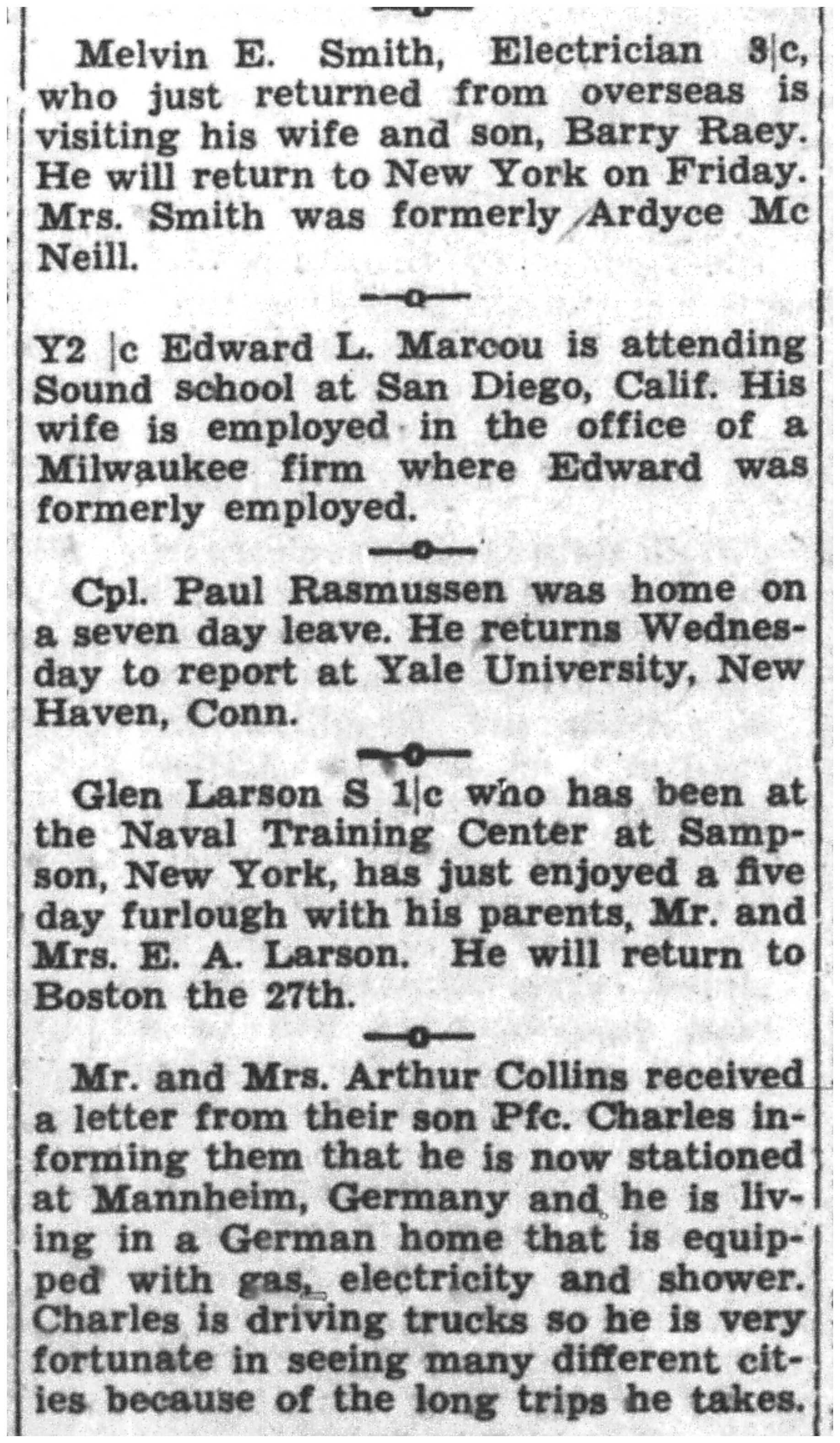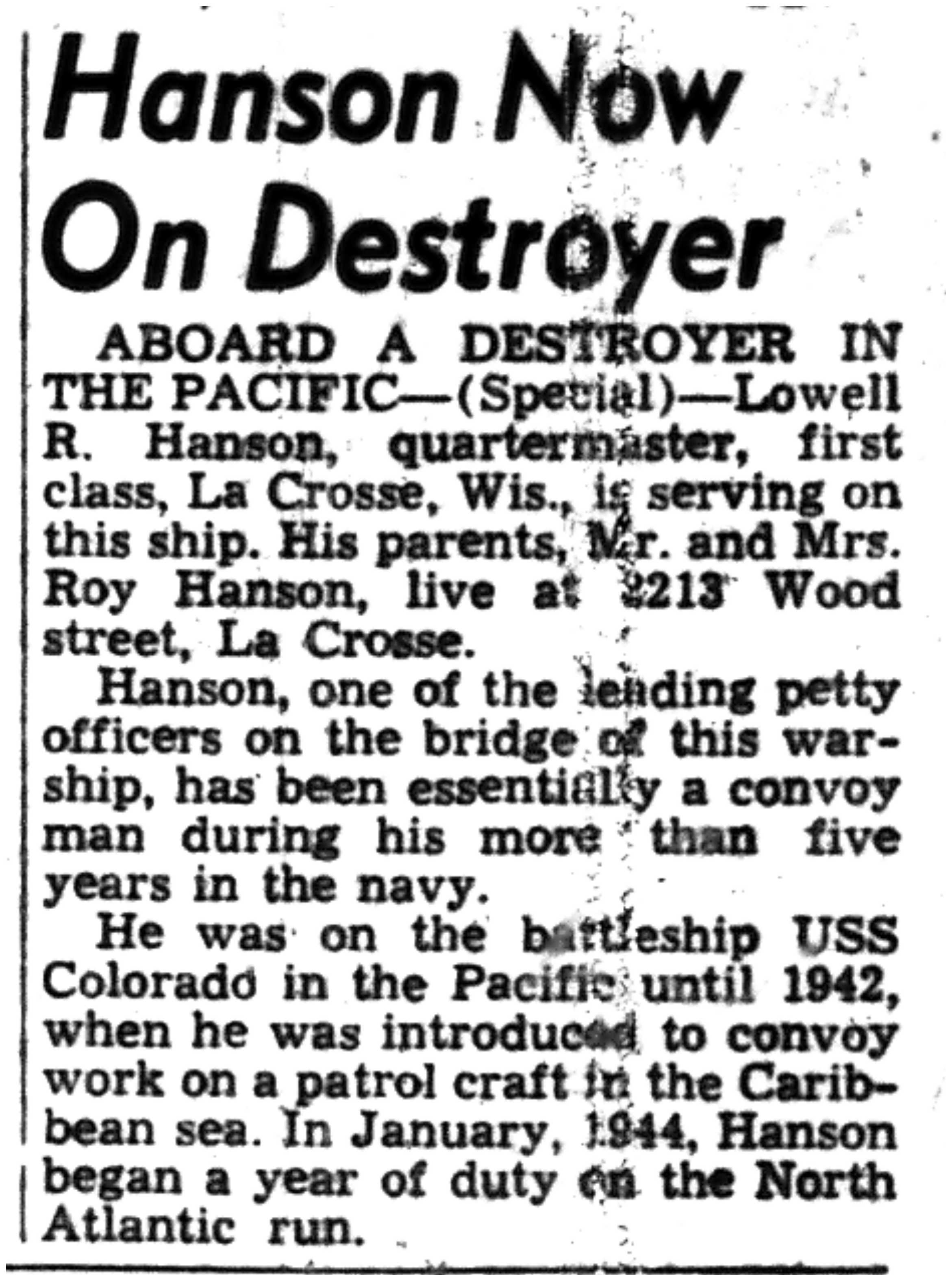 | 1945-6-8 | La Crosse Tribune p7 | |
